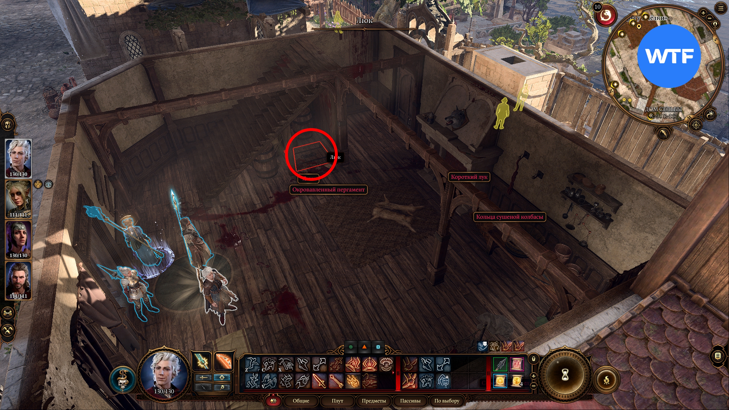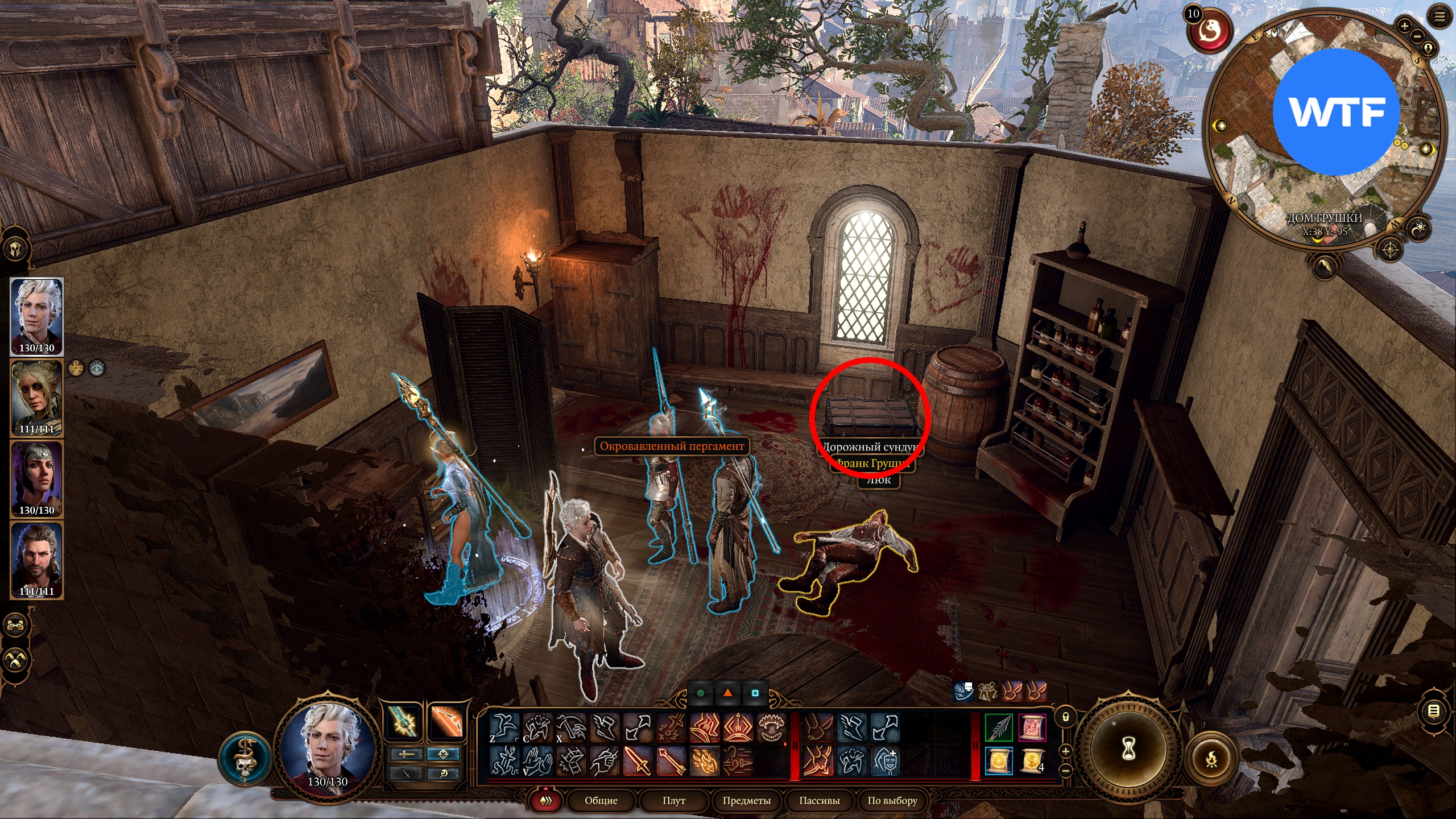 Внутри разломайте или передвиньте дорожный сундук, под которым спрятан люк, ведущий в подвал. Вам потребуется пройти проверку на ловкость рук со сложностью 15, чтобы его открыть. Отрезанную руку клоуна вы найдете на одном из тел внизу.