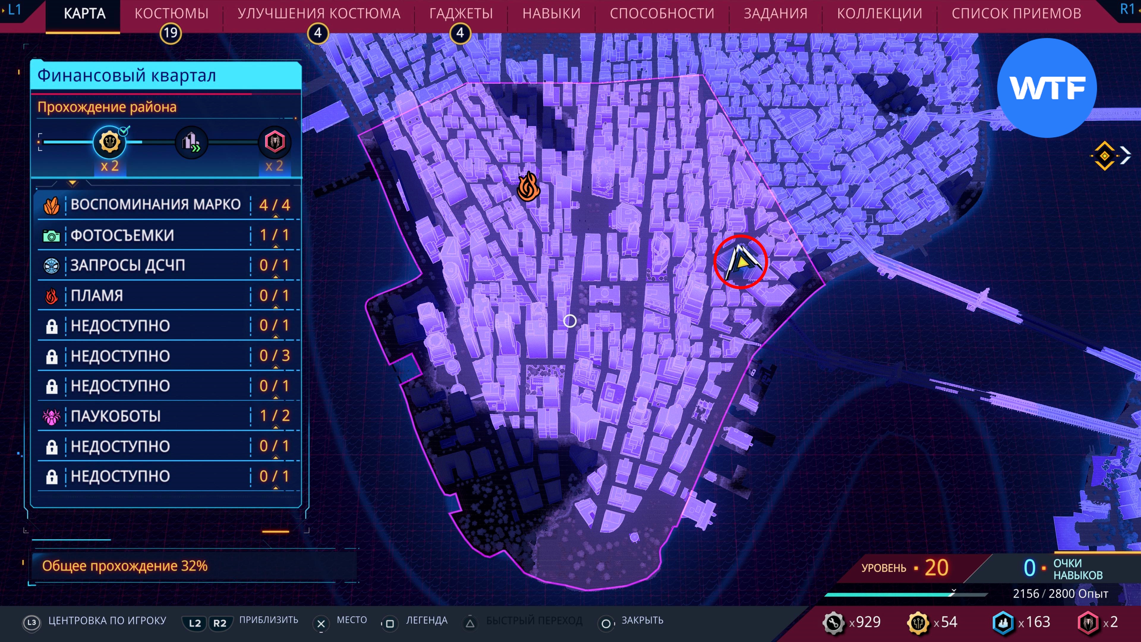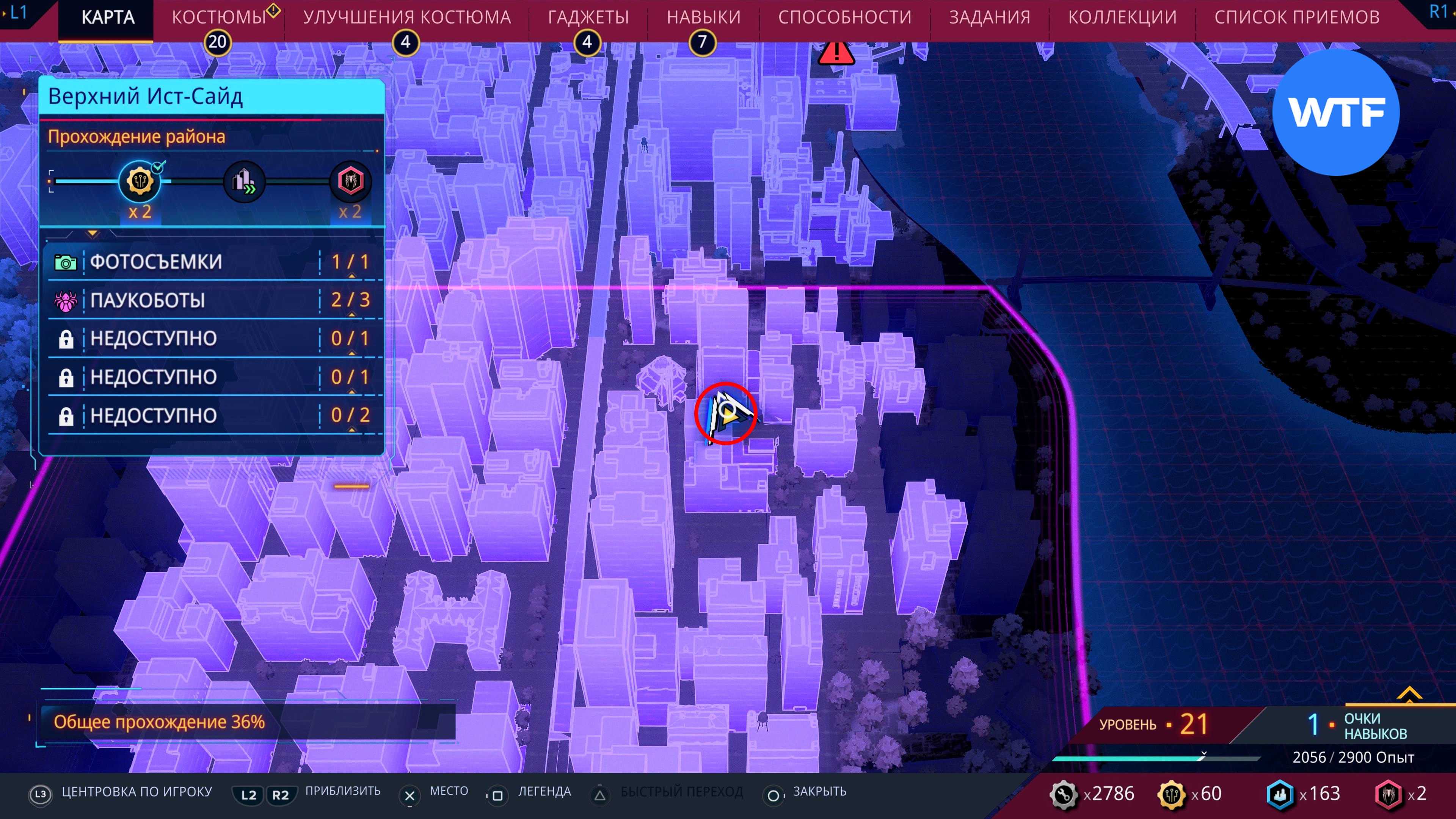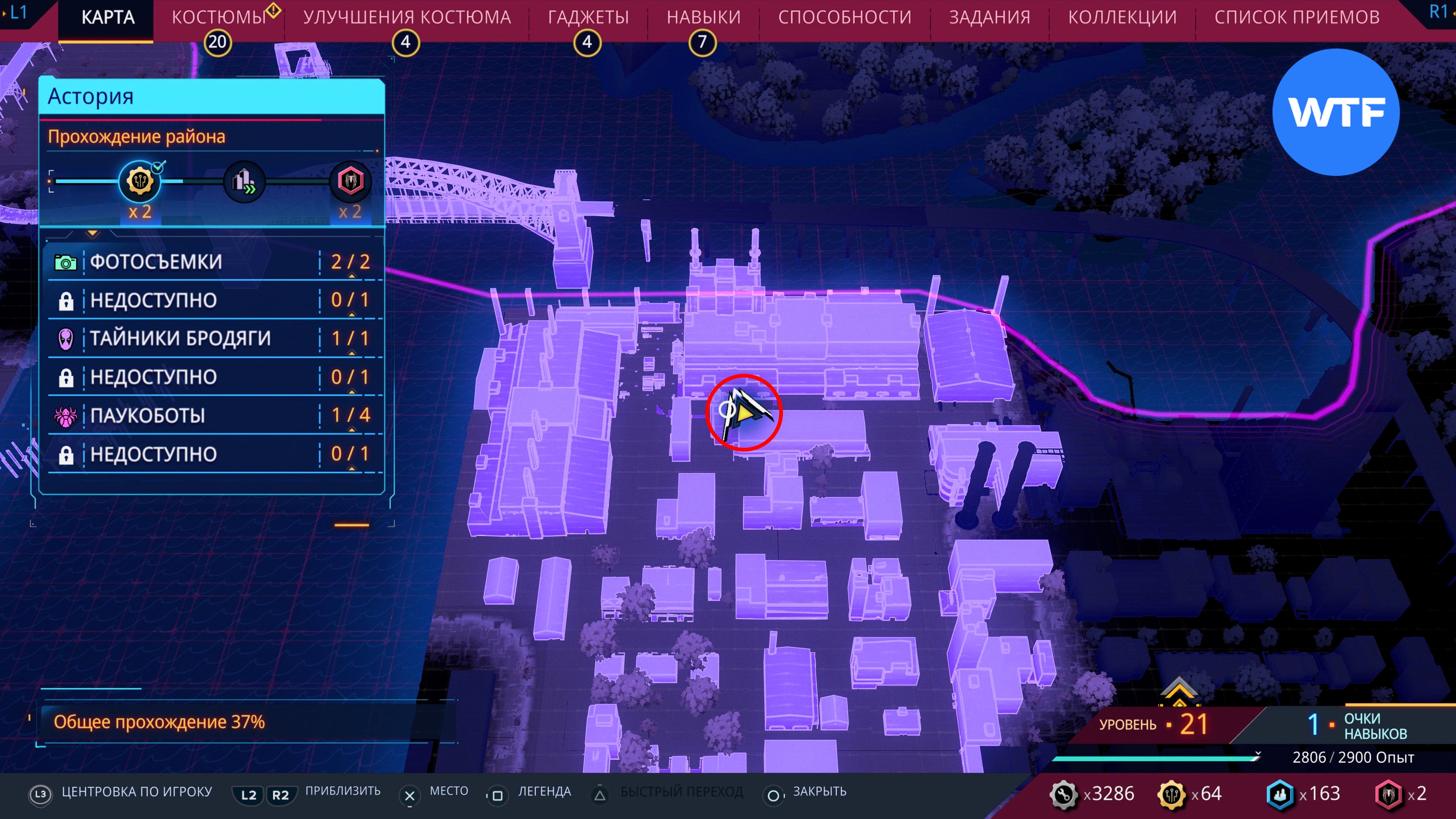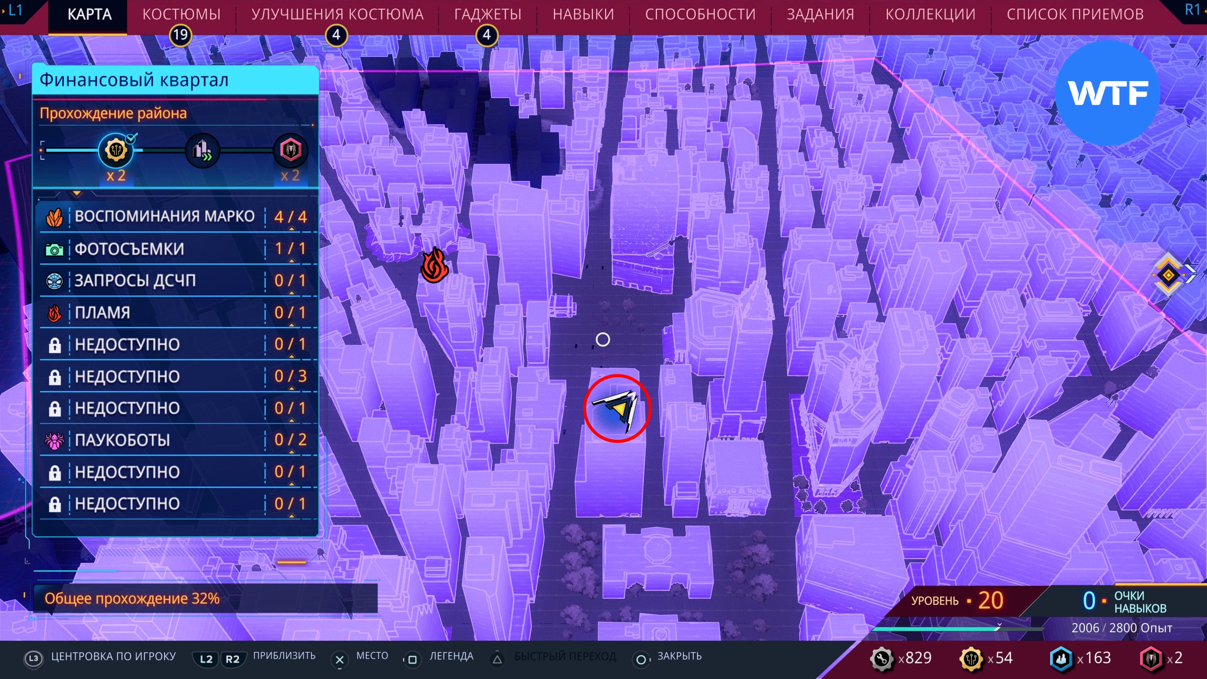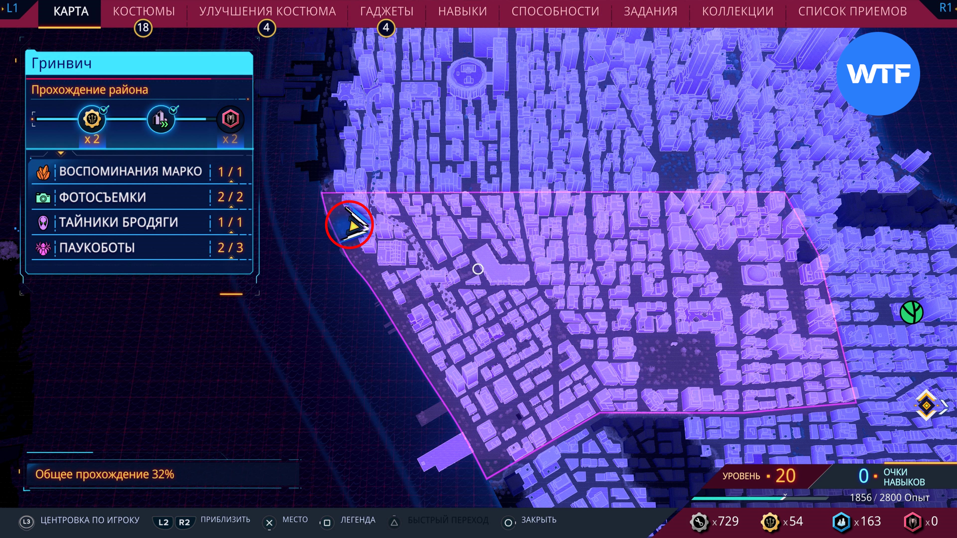Теперь отправляйтесь в Чайна-таун и заберитесь на высокое здание, показанное на карте. Оттуда посмотрите в направлении моста, с этой точки вы должны заметить паукобота высоко над землей. Используйте крылья, чтобы до него добраться.