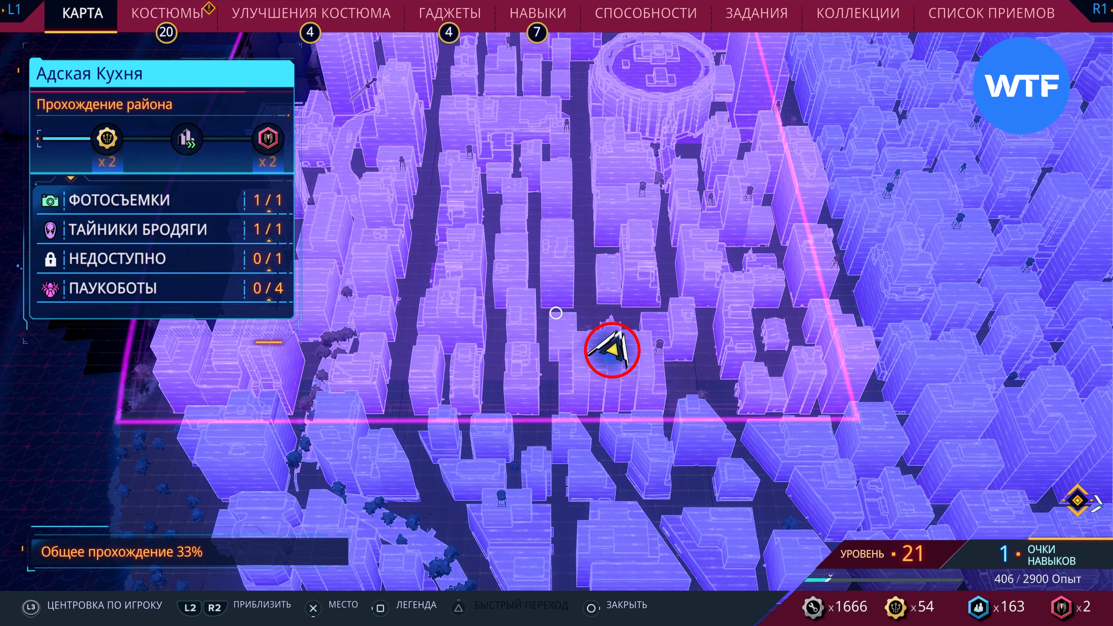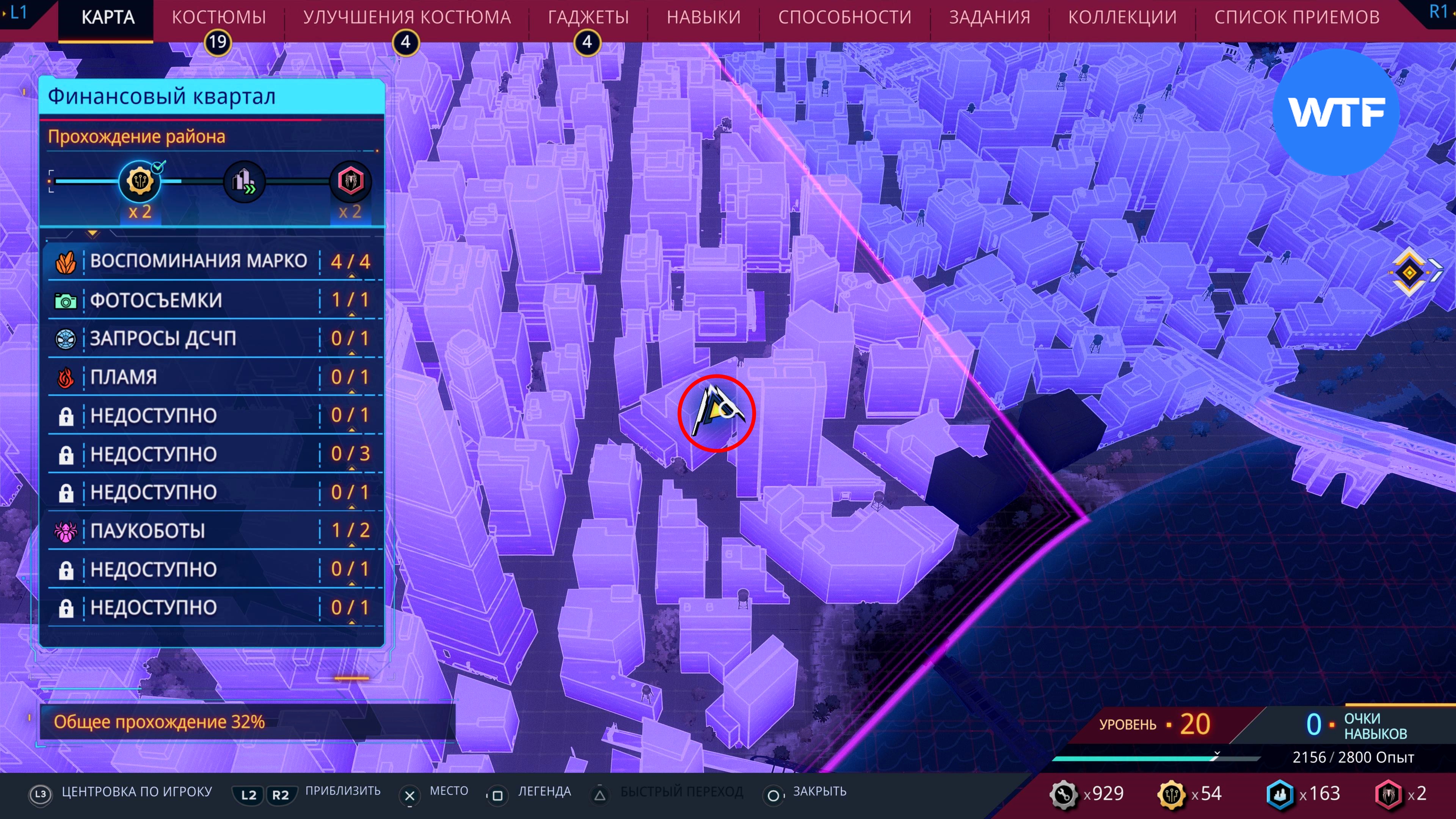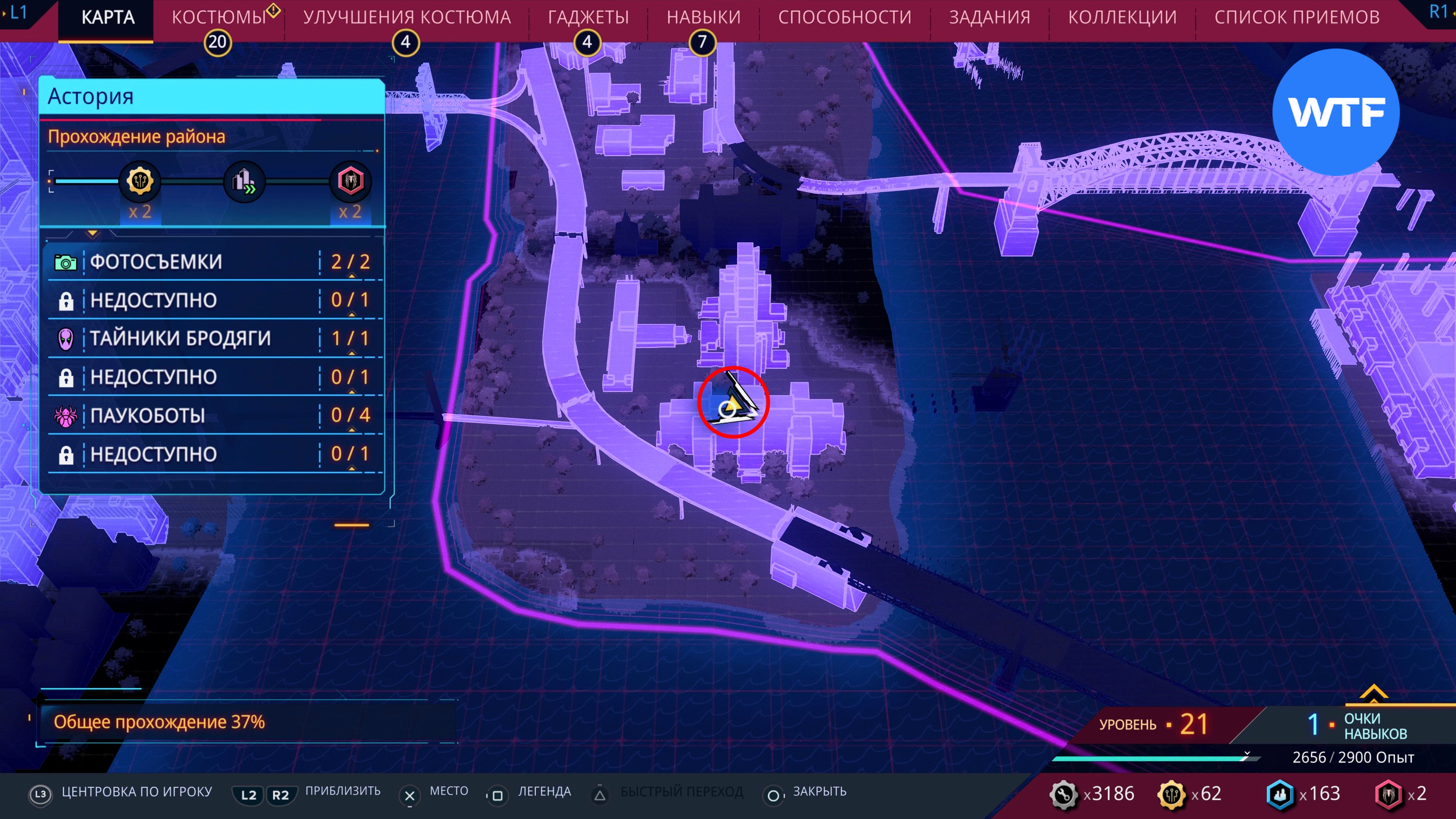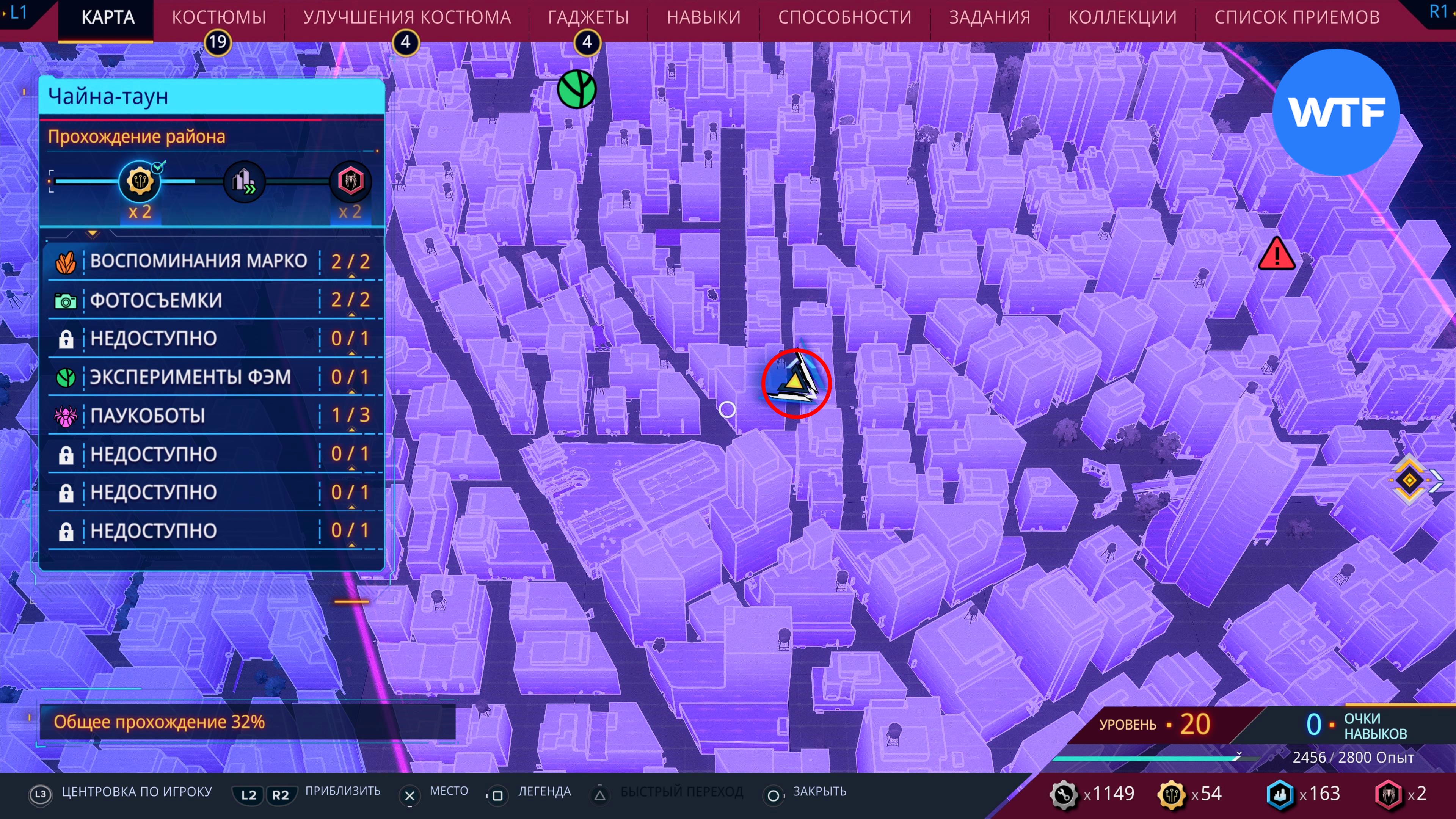 Теперь отправляйтесь в Чайна-таун и заберитесь на высокое здание, показанное на карте. Оттуда посмотрите в направлении моста, с этой точки вы должны заметить паукобота высоко над землей. Используйте крылья, чтобы до него добраться.