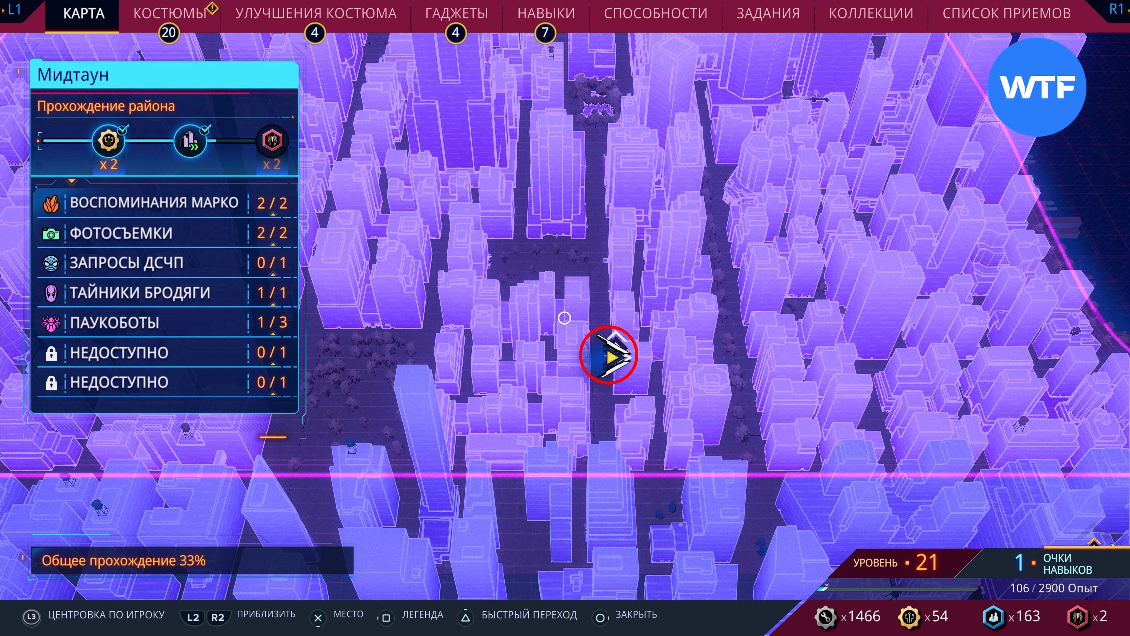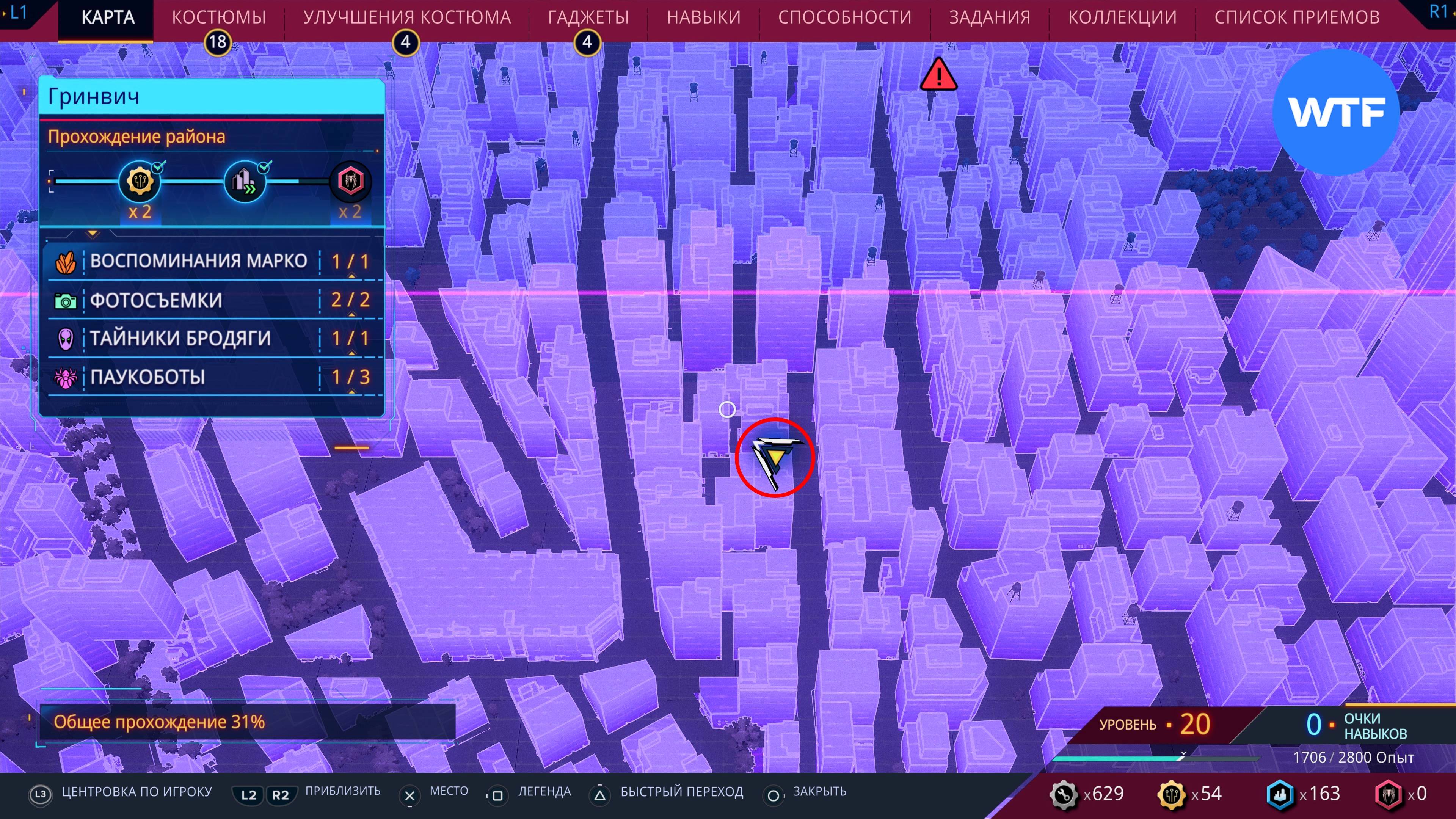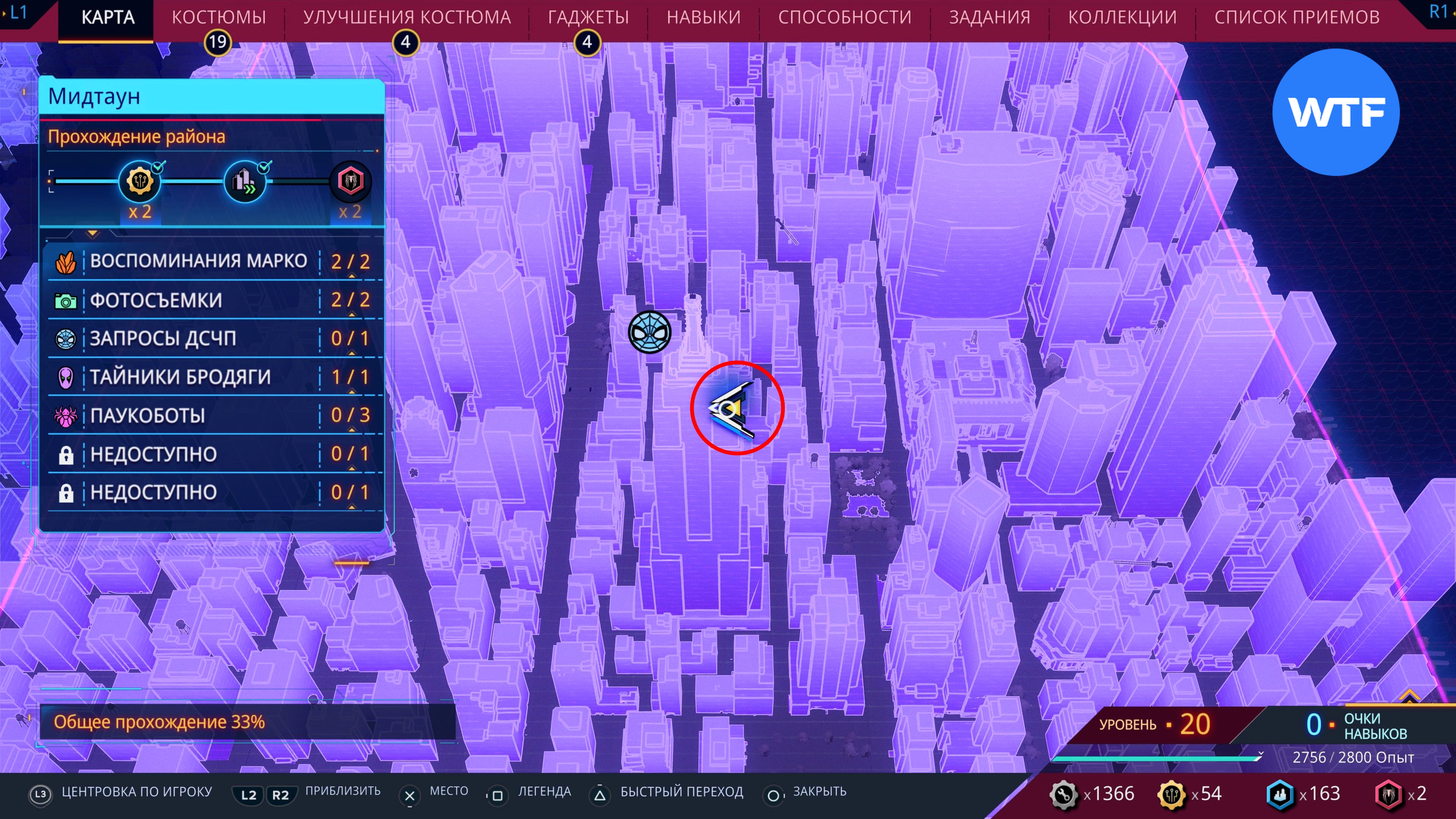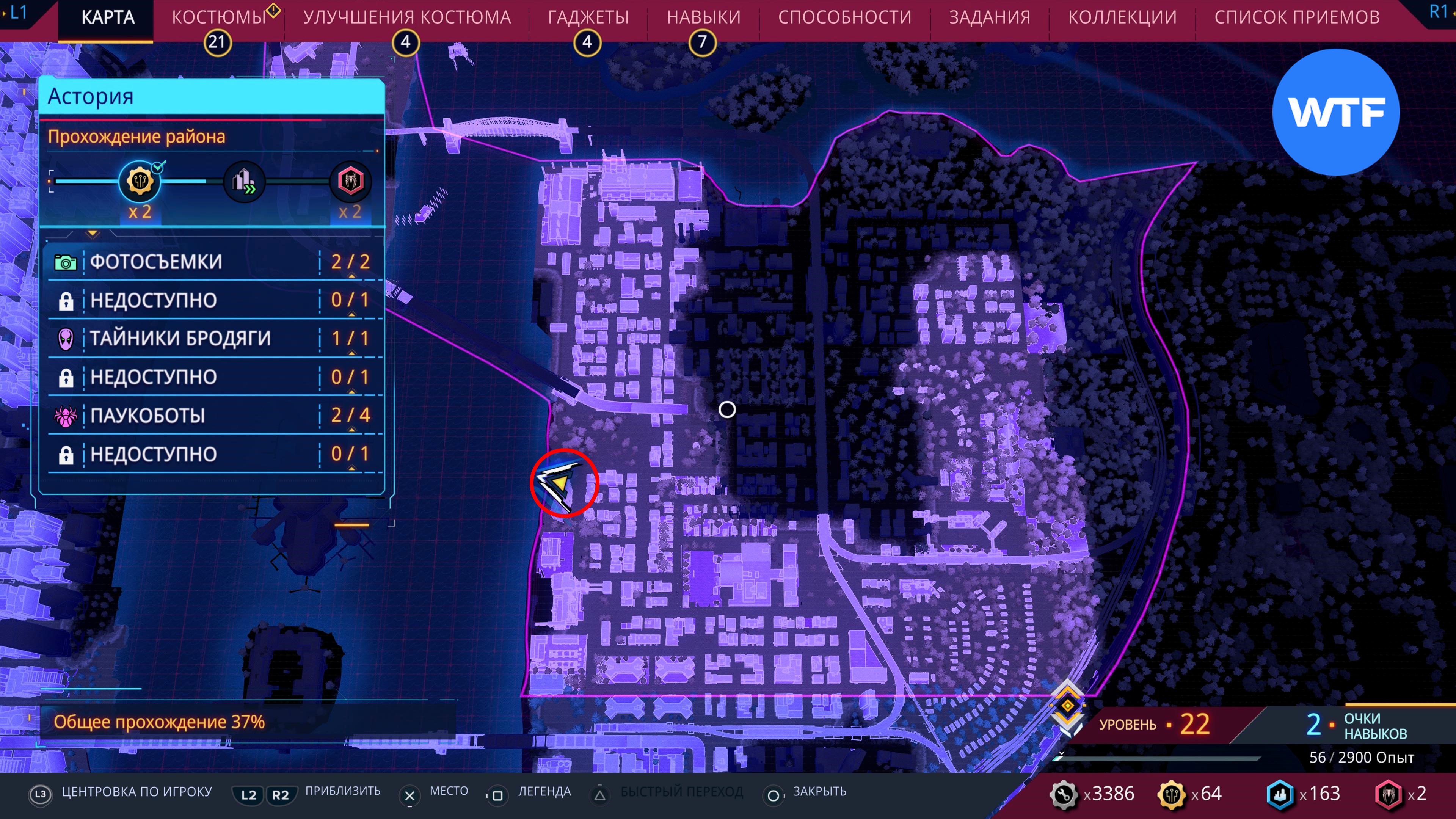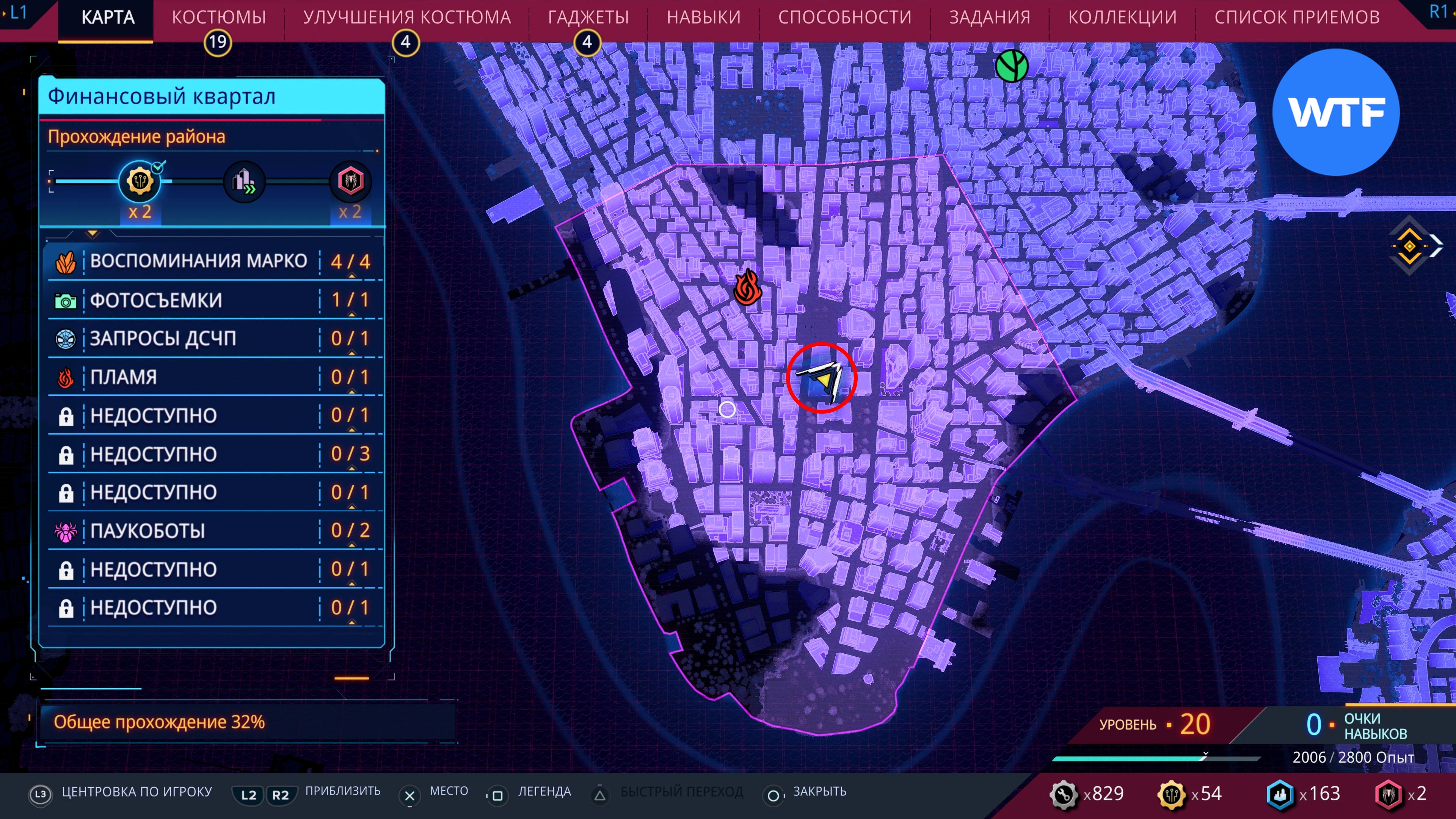 Теперь отправляйтесь в Чайна-таун и заберитесь на высокое здание, показанное на карте. Оттуда посмотрите в направлении моста, с этой точки вы должны заметить паукобота высоко над землей. Используйте крылья, чтобы до него добраться.
