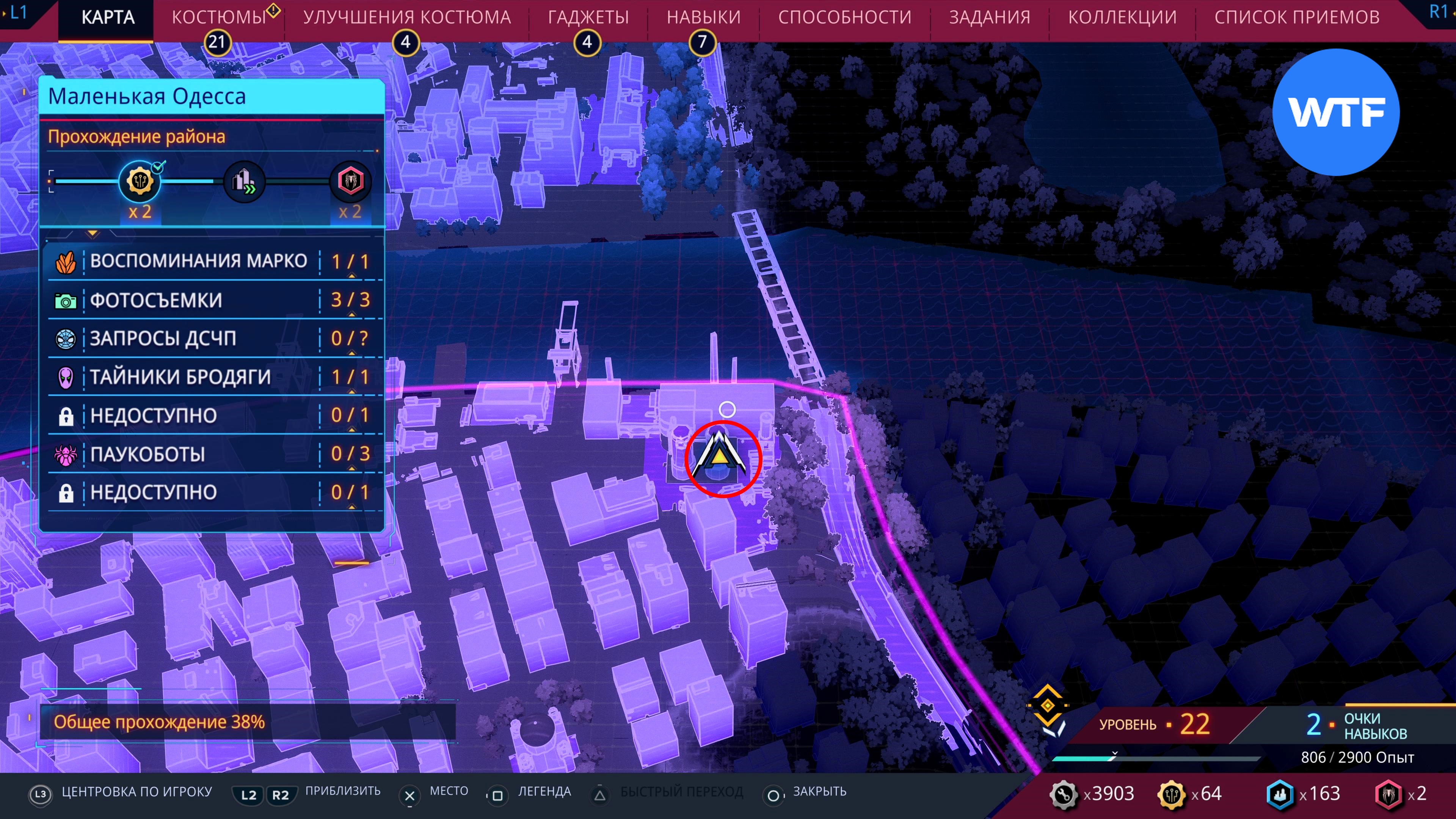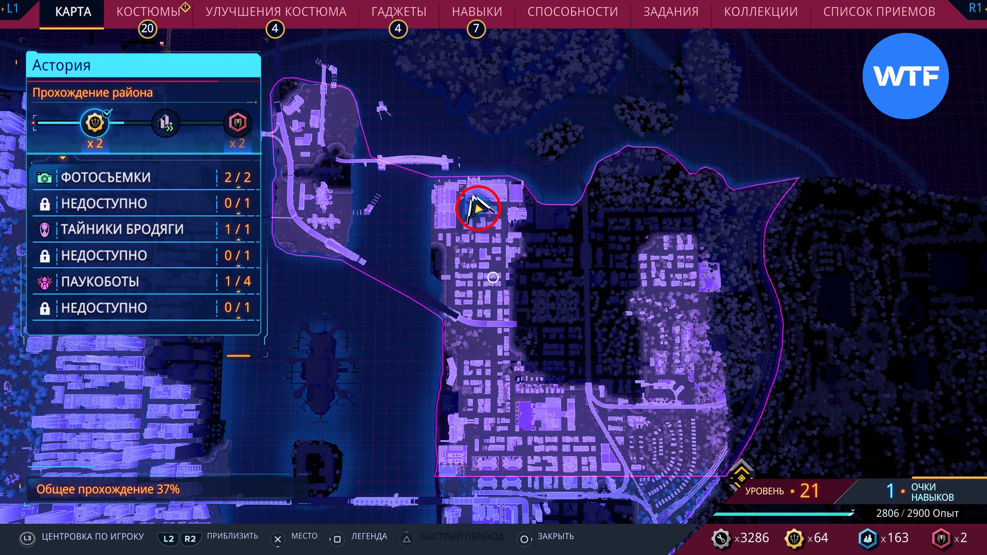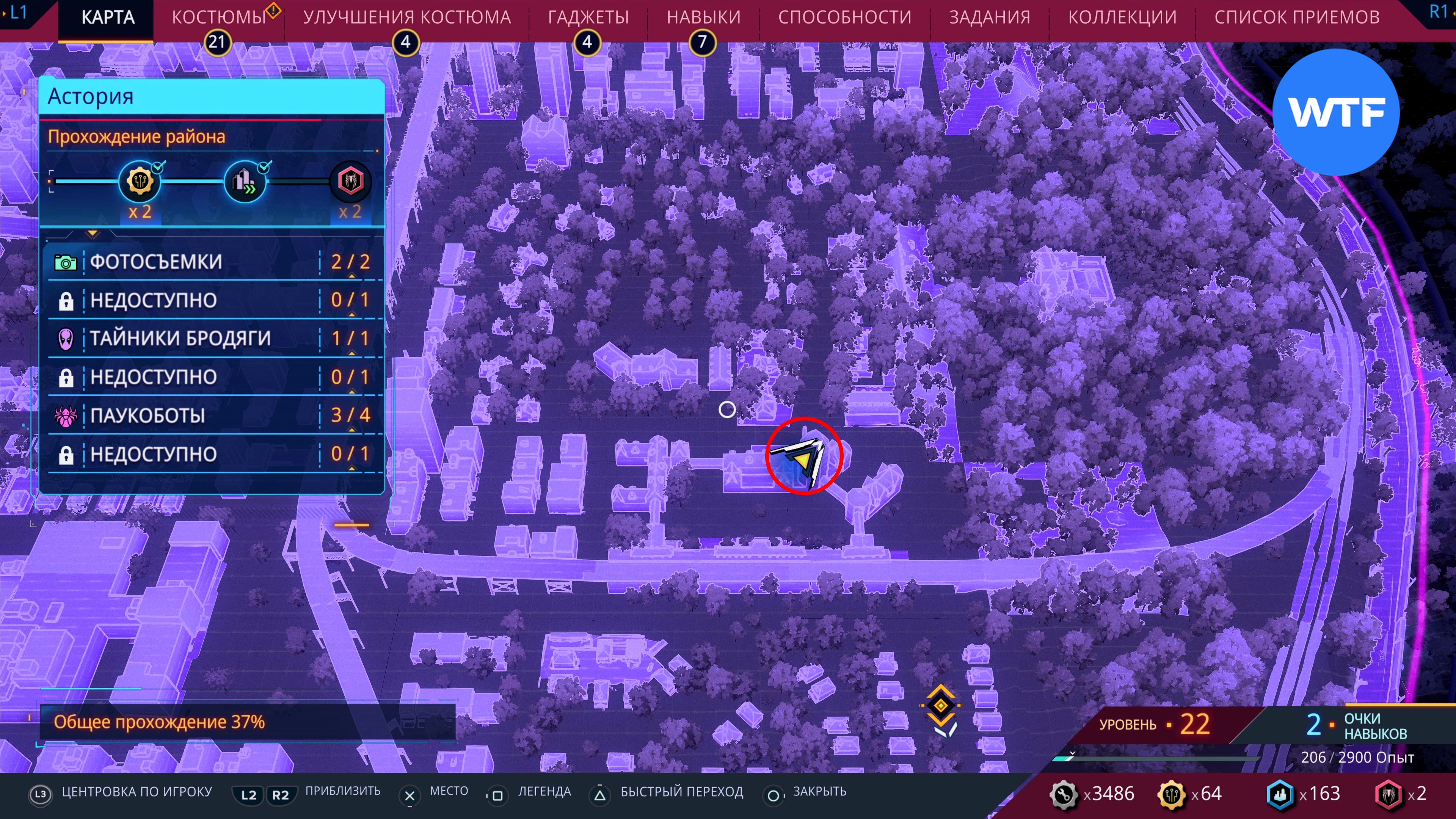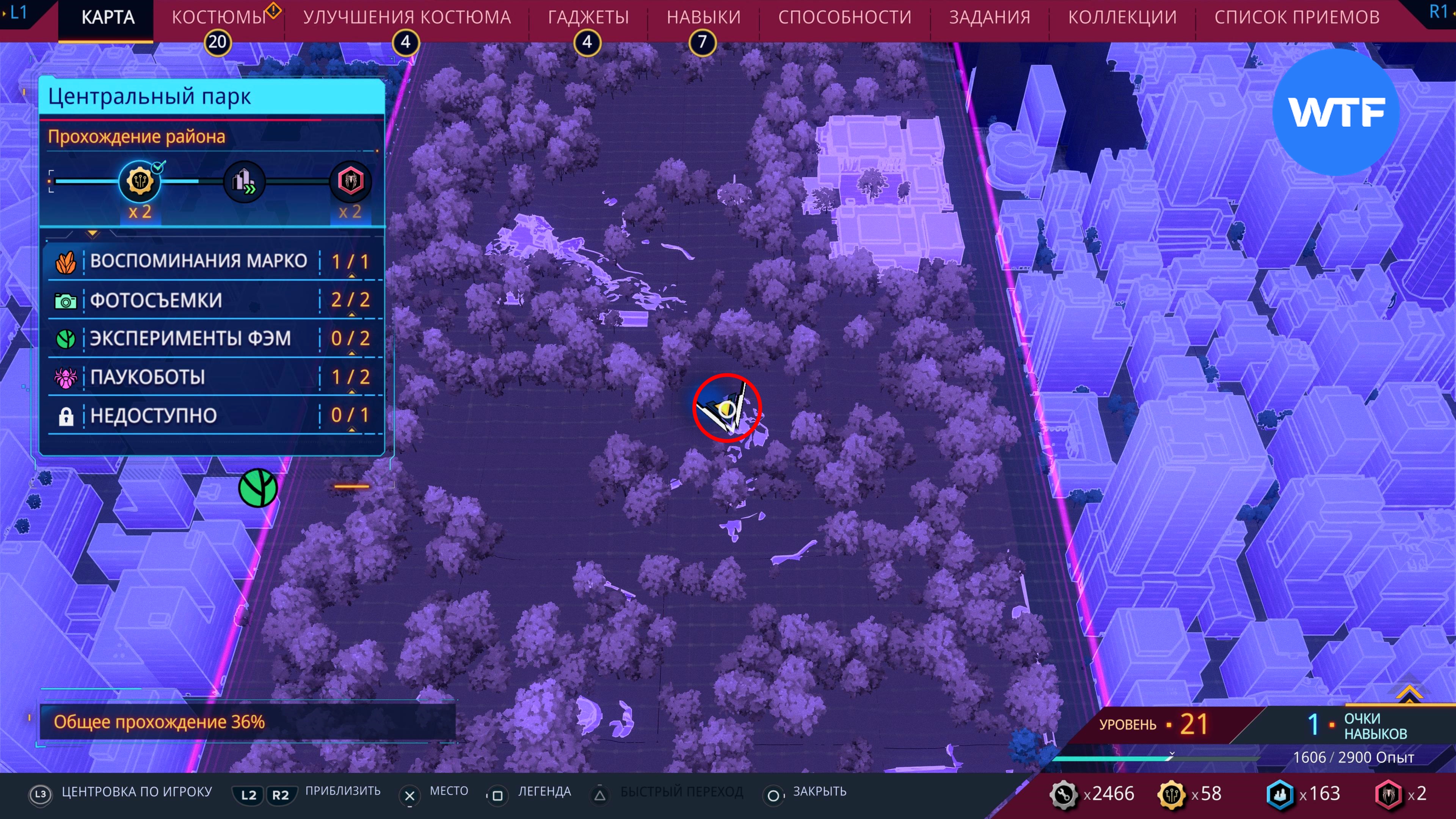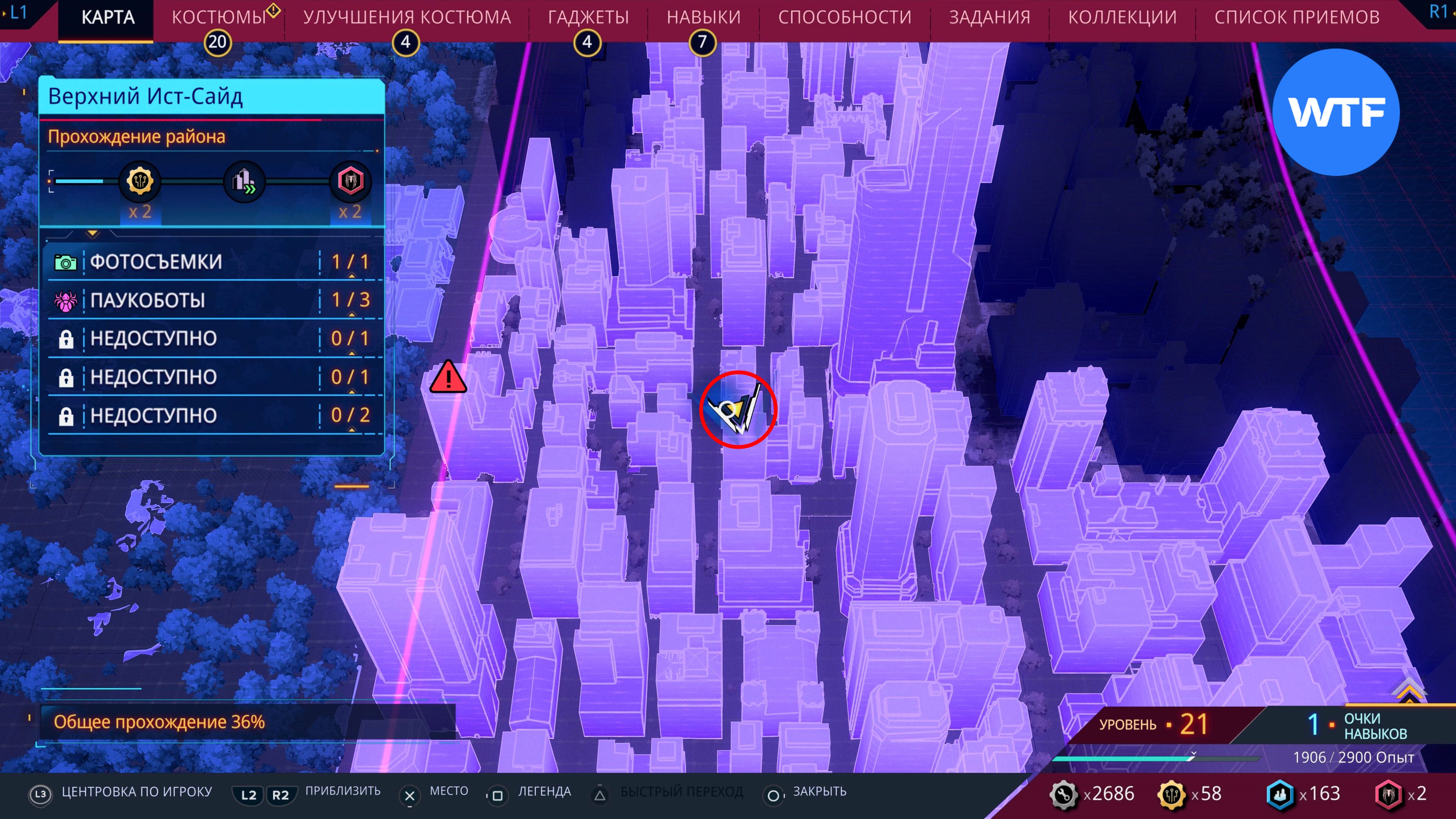 Теперь отправляйтесь в Чайна-таун и заберитесь на высокое здание, показанное на карте. Оттуда посмотрите в направлении моста, с этой точки вы должны заметить паукобота высоко над землей. Используйте крылья, чтобы до него добраться.