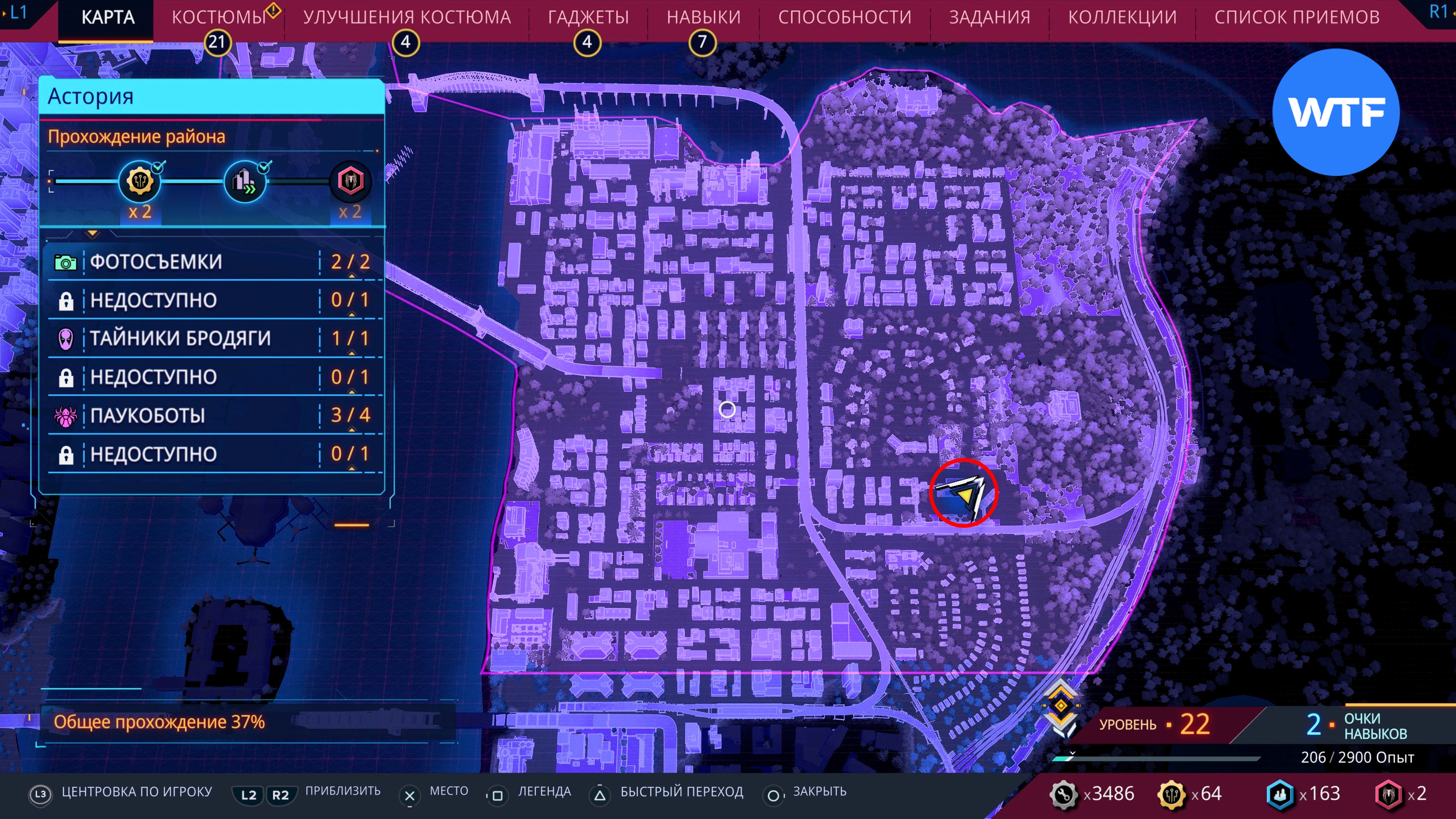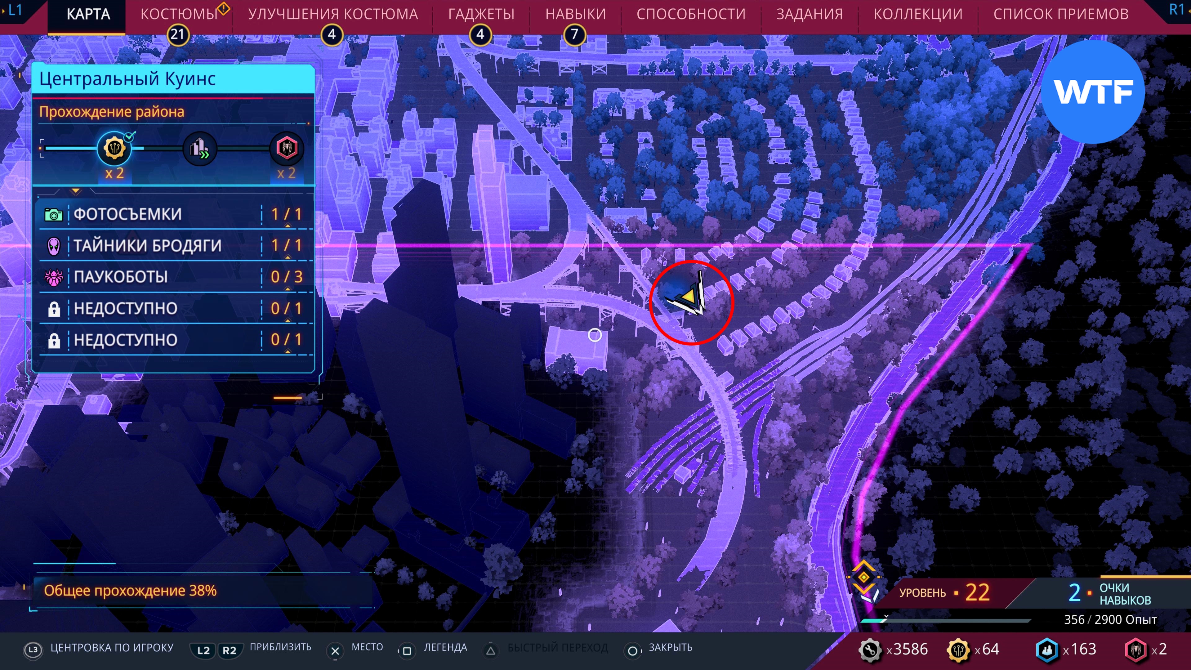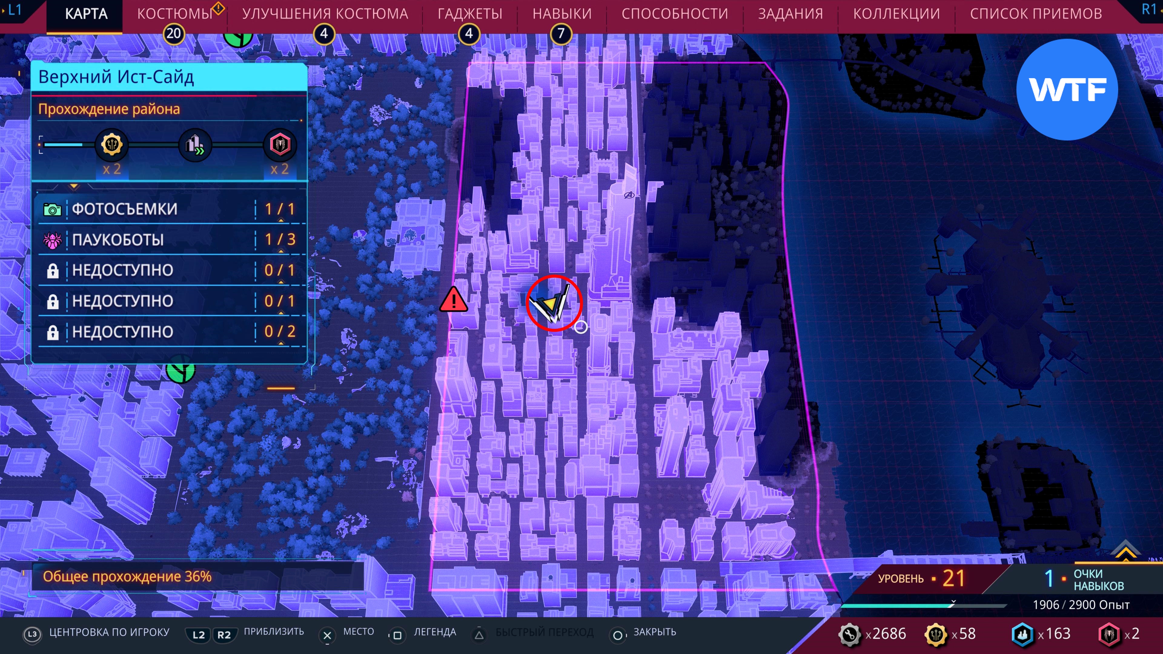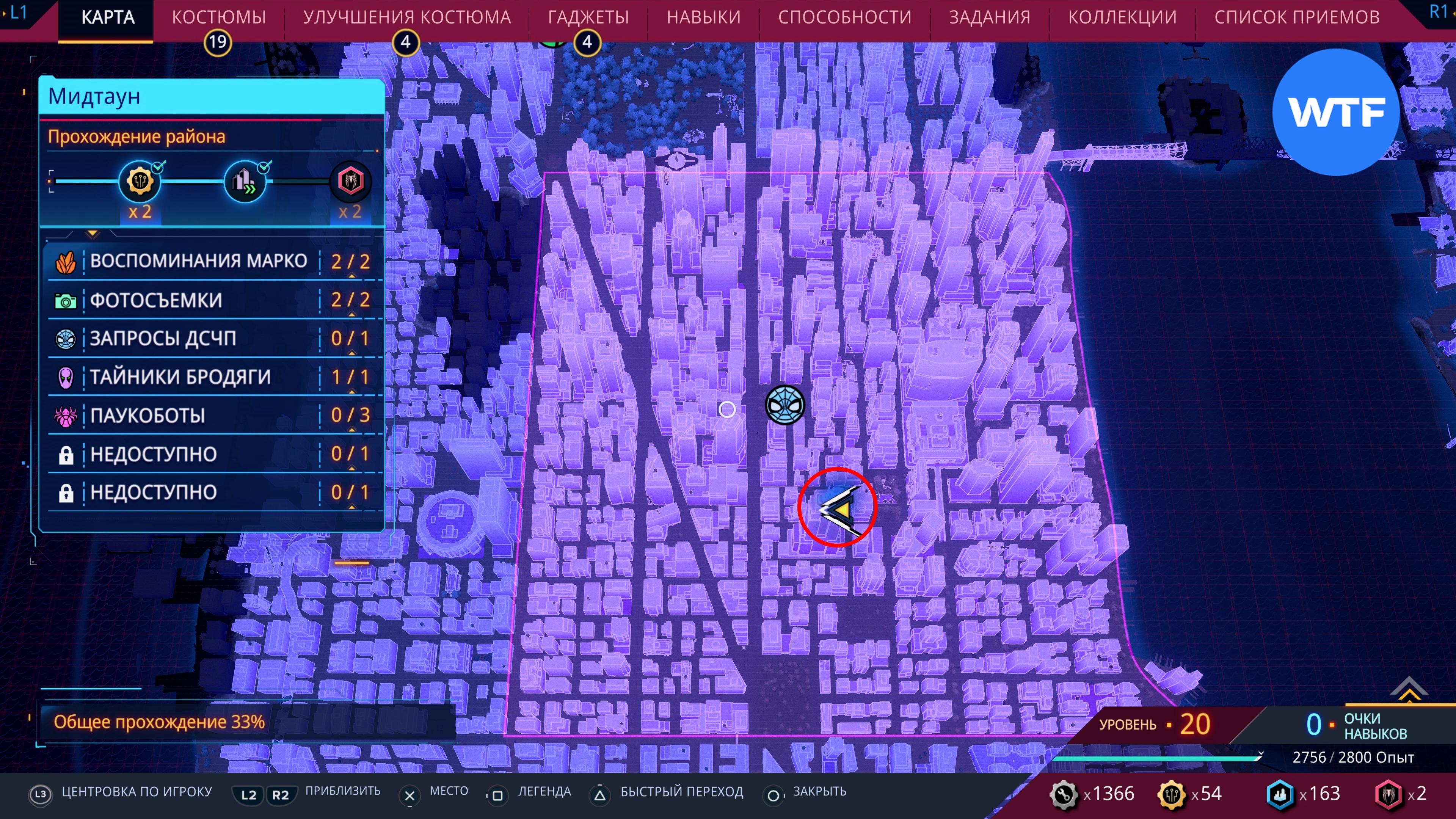 Теперь отправляйтесь в Чайна-таун и заберитесь на высокое здание, показанное на карте. Оттуда посмотрите в направлении моста, с этой точки вы должны заметить паукобота высоко над землей. Используйте крылья, чтобы до него добраться.