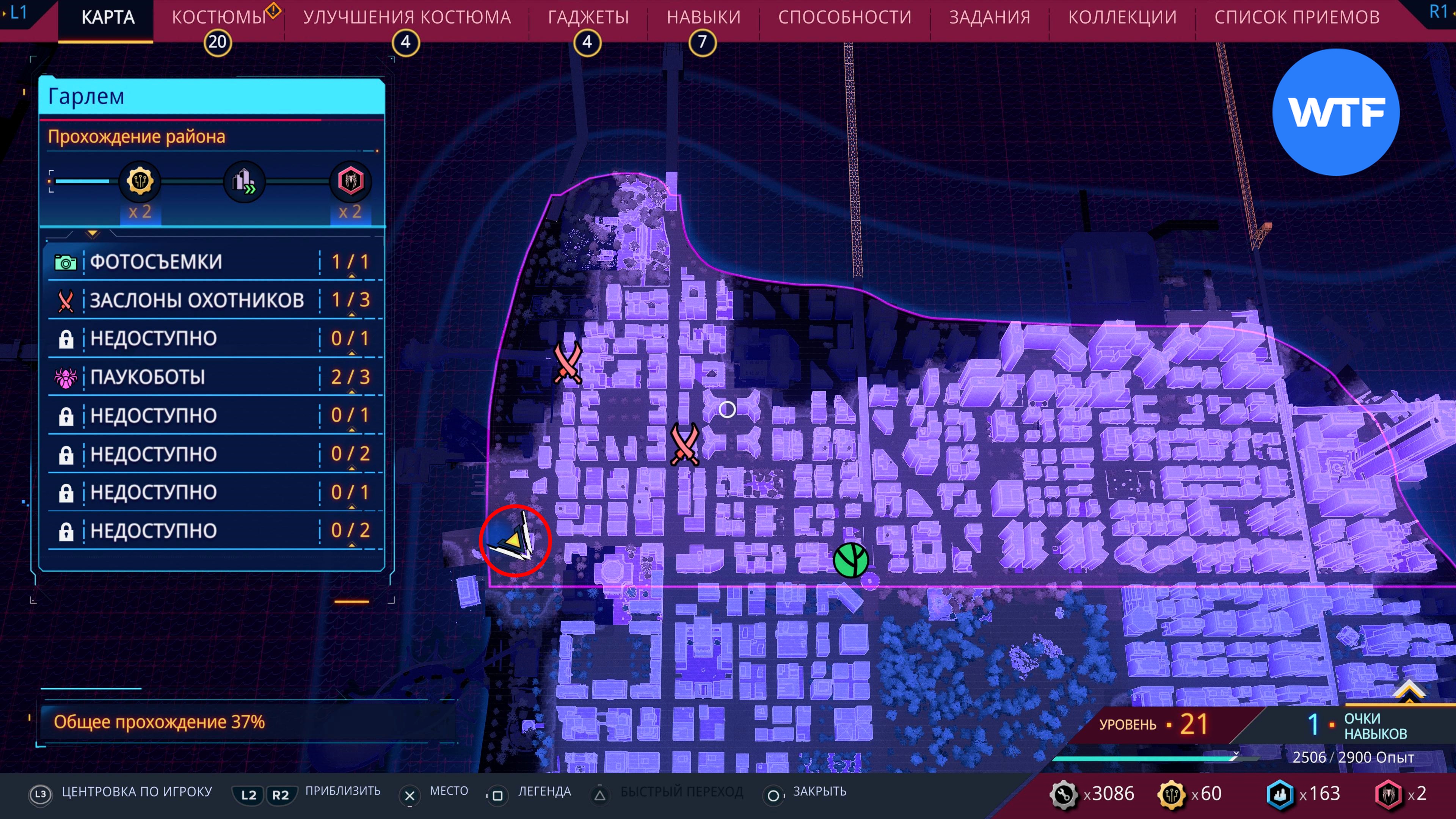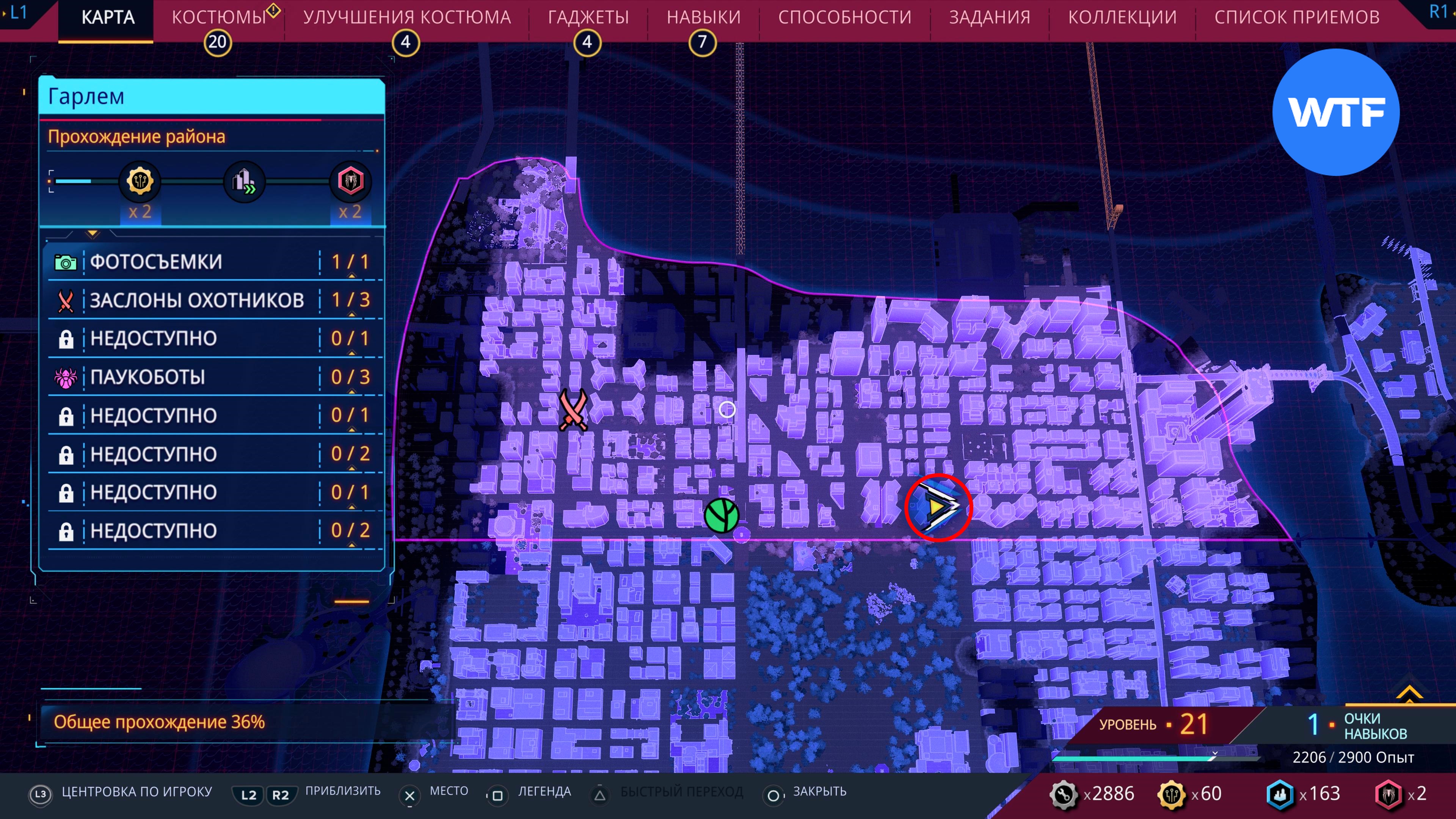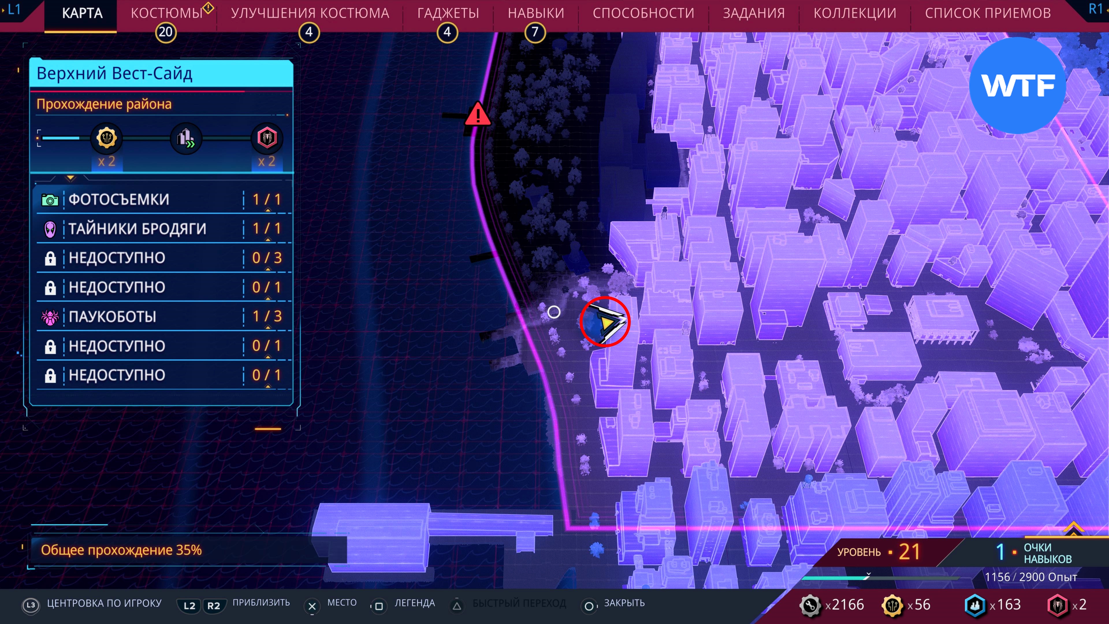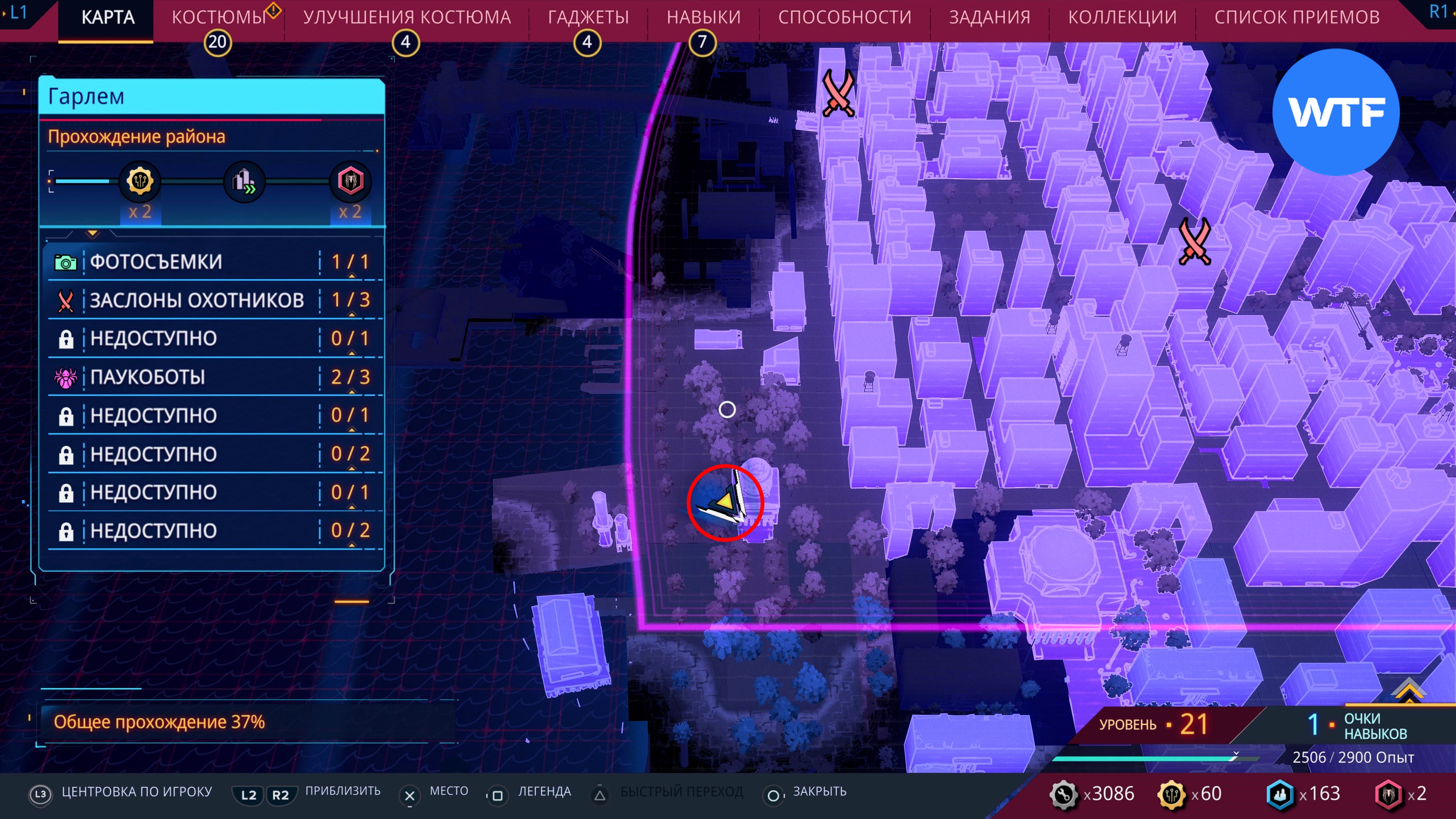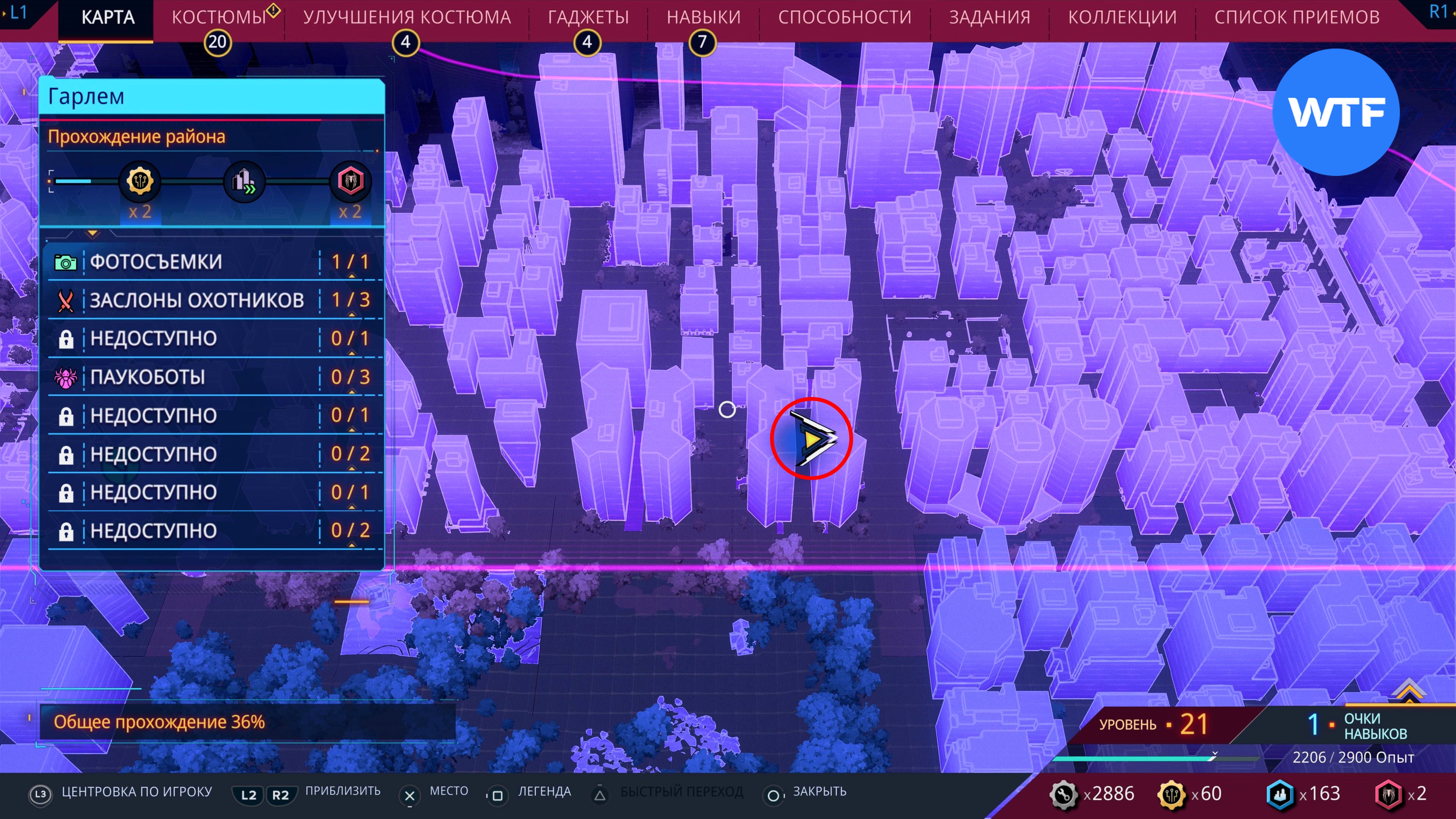 Теперь отправляйтесь в Чайна-таун и заберитесь на высокое здание, показанное на карте. Оттуда посмотрите в направлении моста, с этой точки вы должны заметить паукобота высоко над землей. Используйте крылья, чтобы до него добраться.
