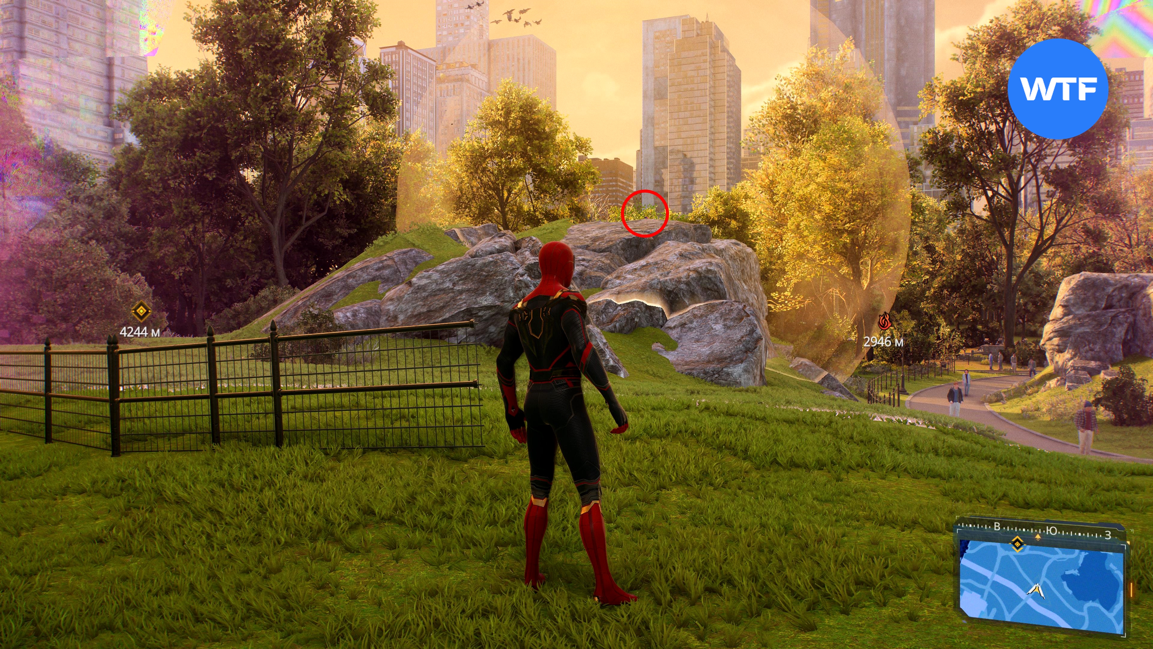 Вам нужно отыскать небольшую скалу в центральной части Центрального парка. Бот будет ждать вас на её вершине.
