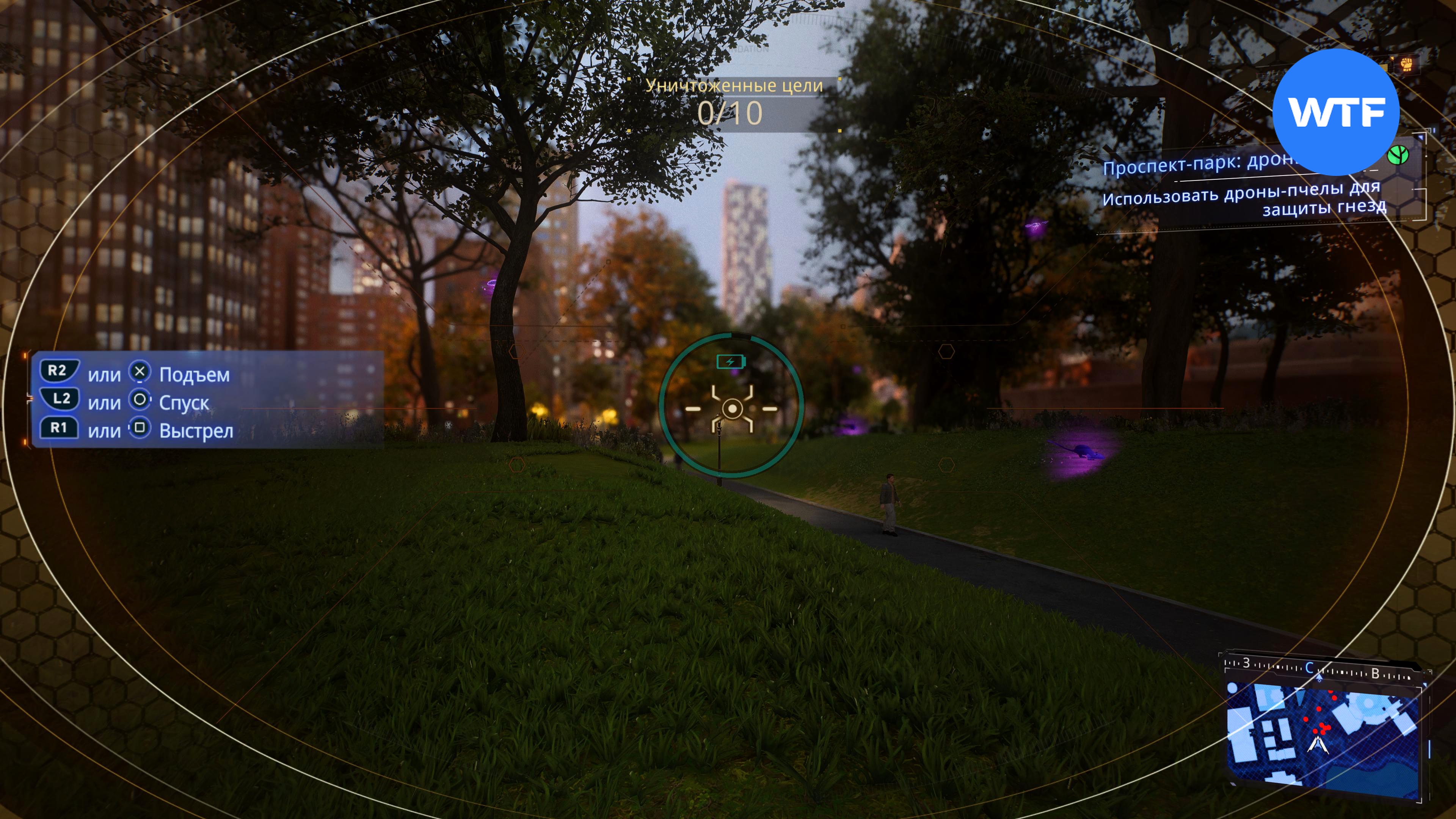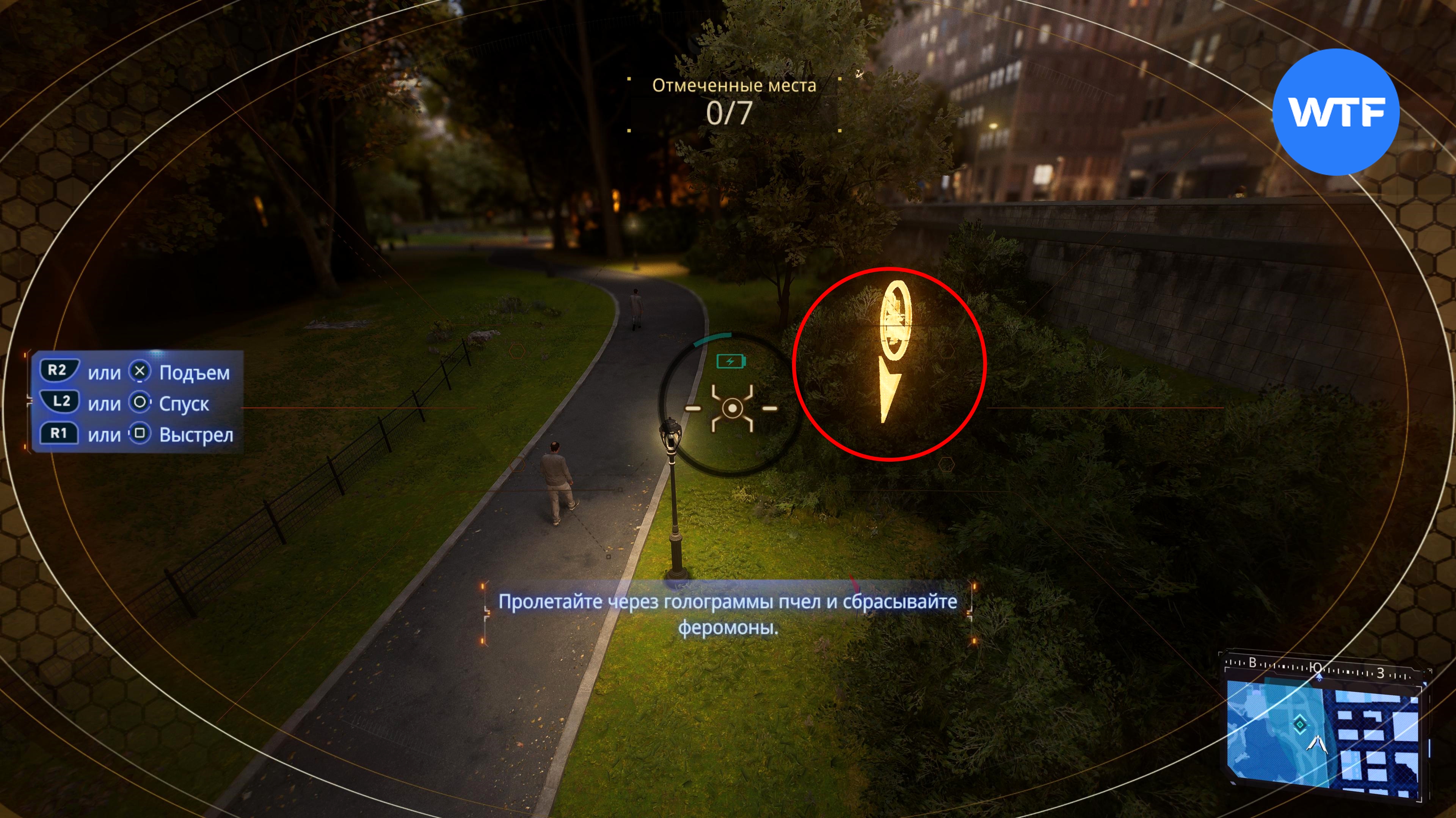 Второй эксперимент находится на западной границе Центрального парка. На этот раз вашему герою требуется помочь дронам-пчелам. Это задание можно условно разделить на два этапа.