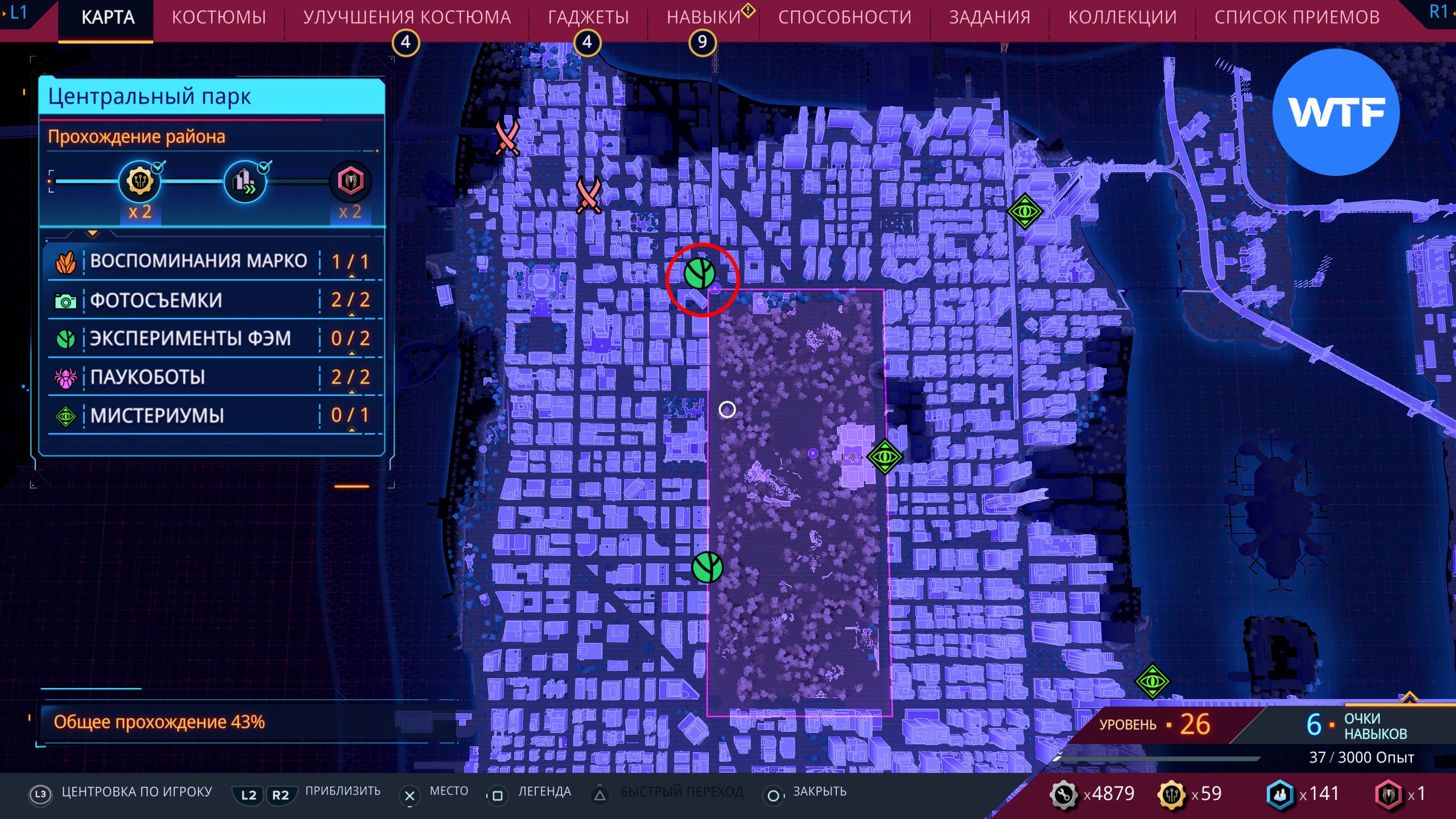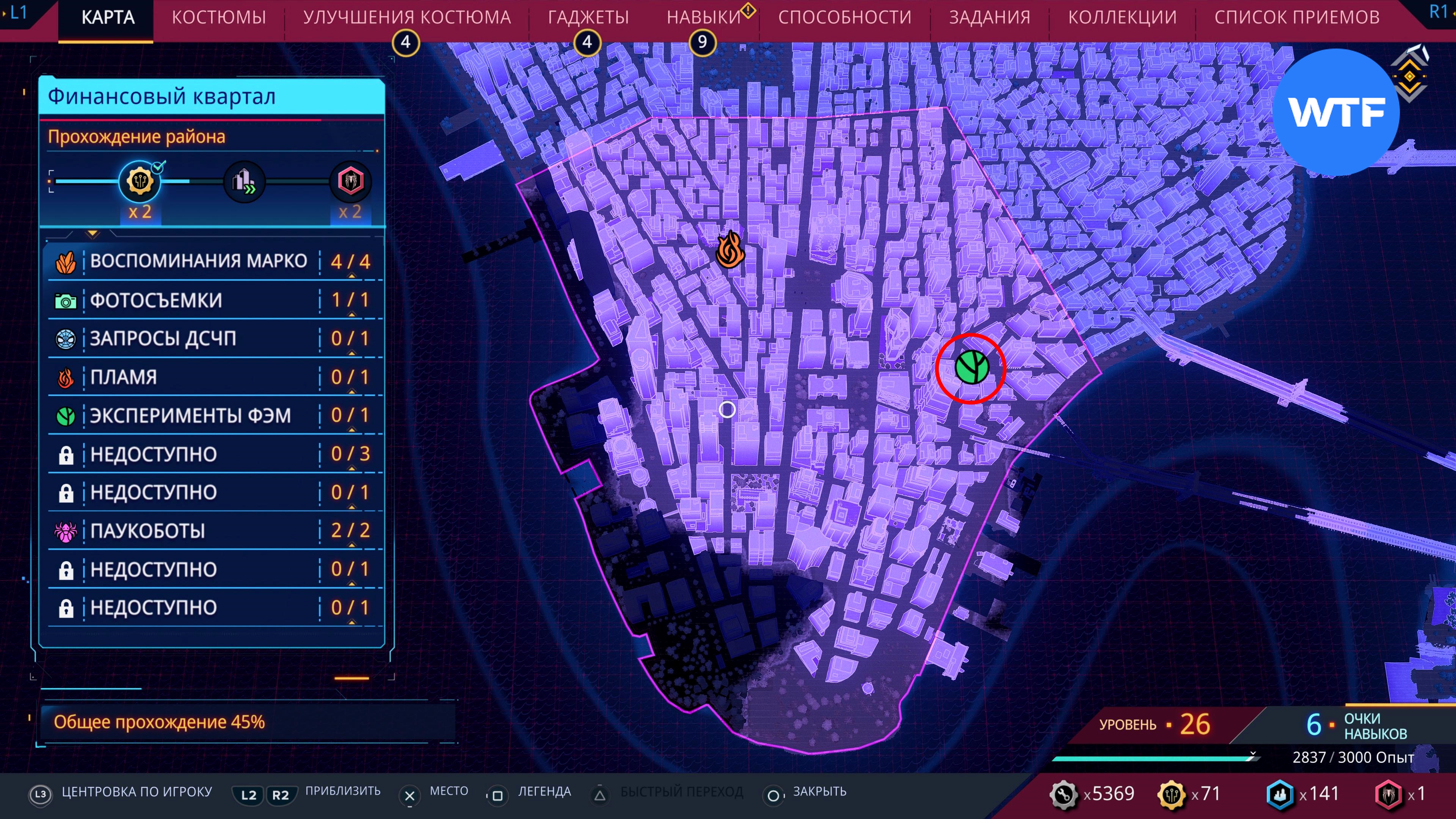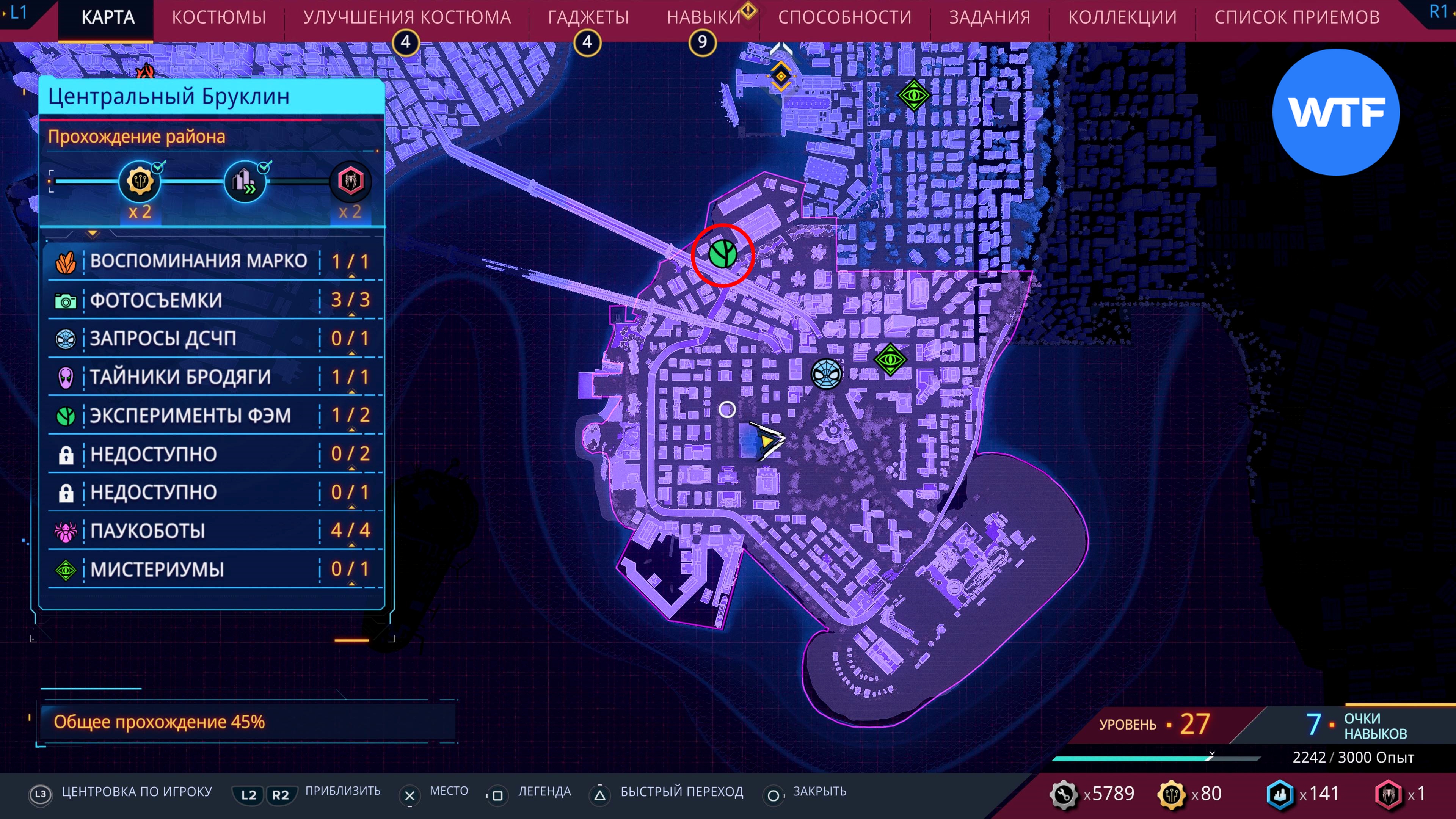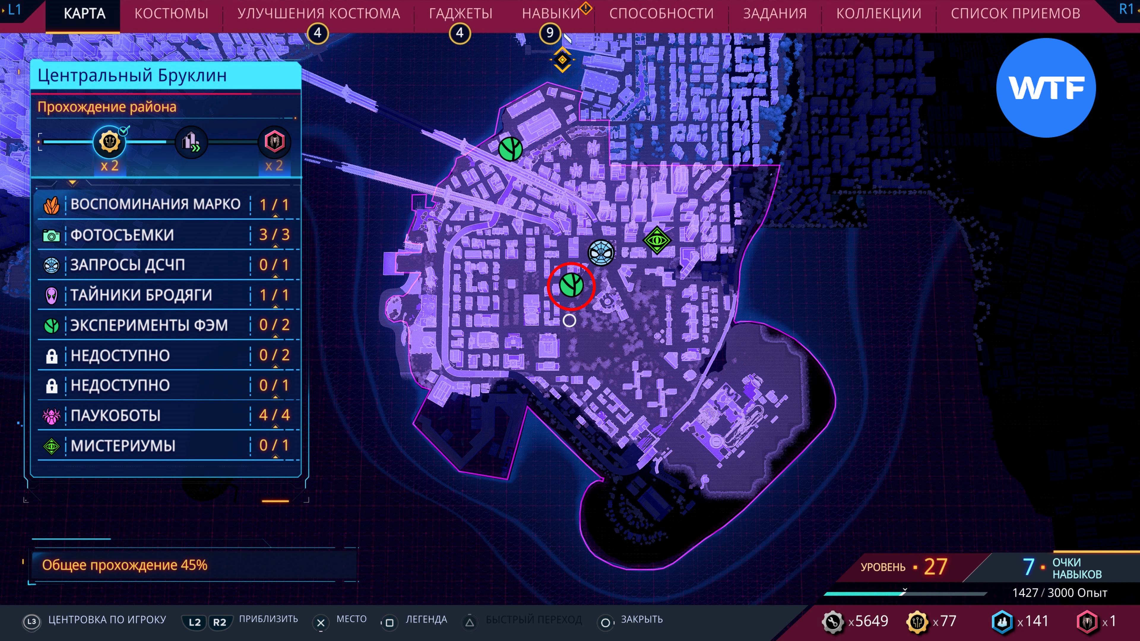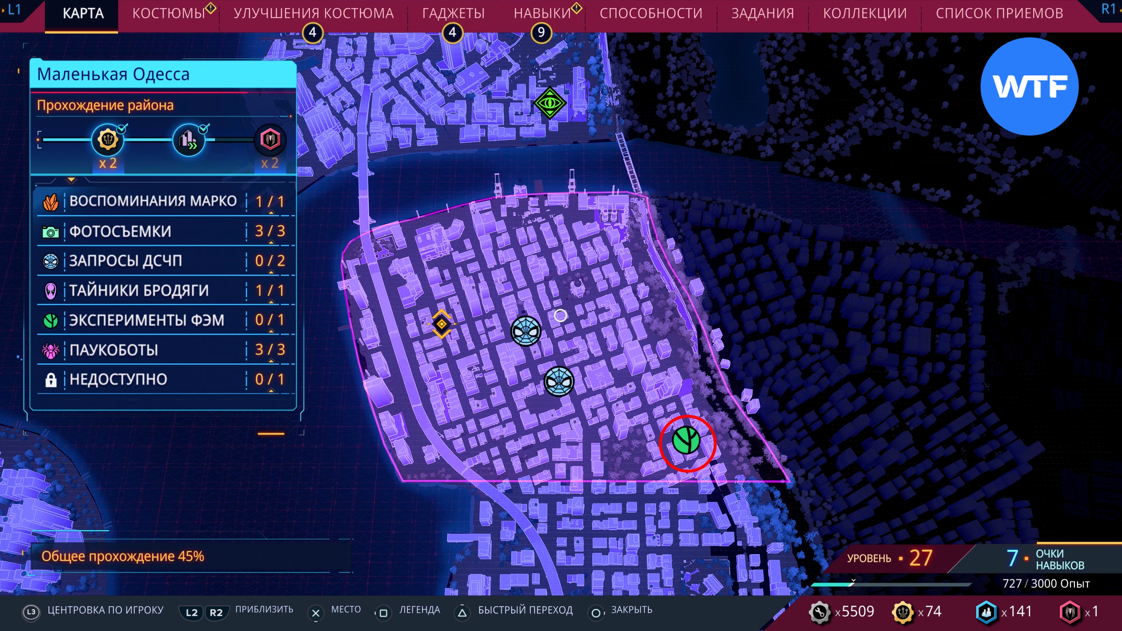 Соответствующие значки появятся при приближении, либо при прохождении района города до уровня 2. Обратите внимание: последний эксперимент ФЭМ станет доступен только после того, как вы полностью завершите основную сюжетную линию Spider-Man 2.