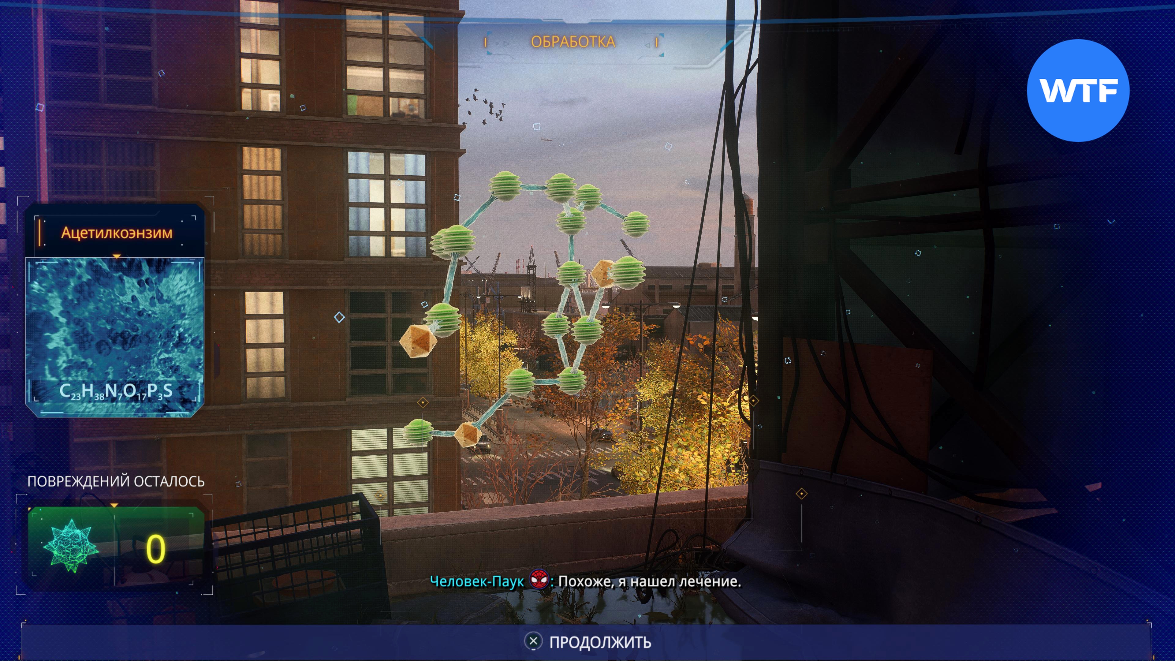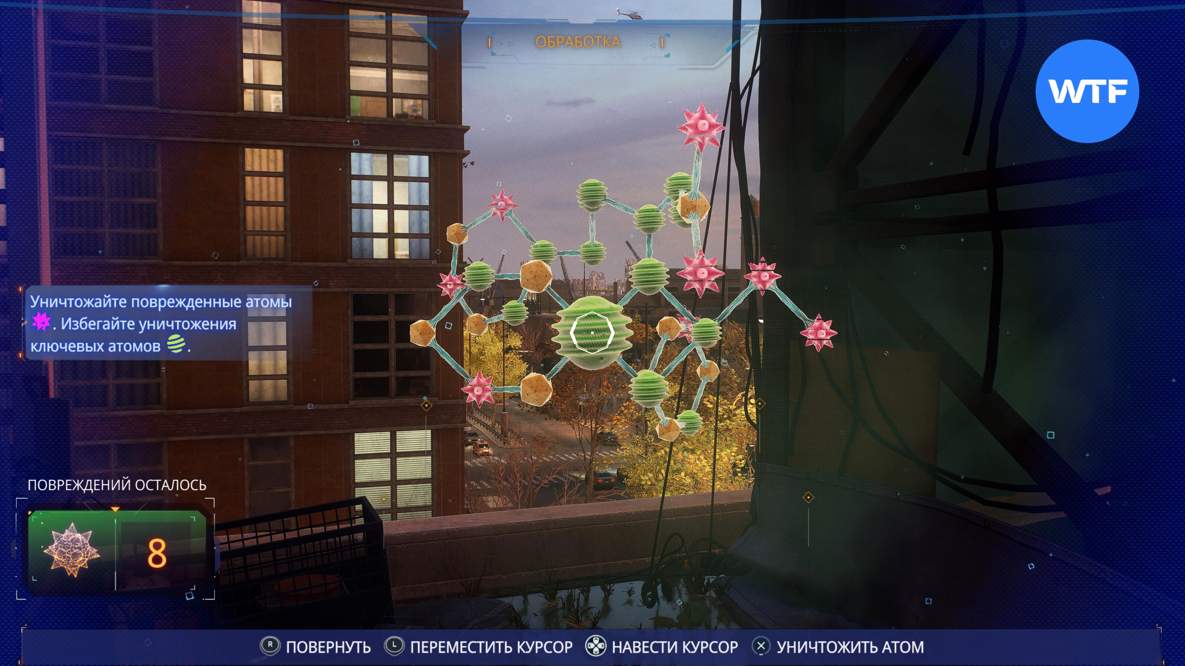 В первую очередь просканируйте лужу с водой на крыше: так вы запустите мини-игру по уничтожению поврежденных атомов и расшифровке вещества. Ваша задача заключается в том, чтобы полностью избавиться от поврежденных атомов.