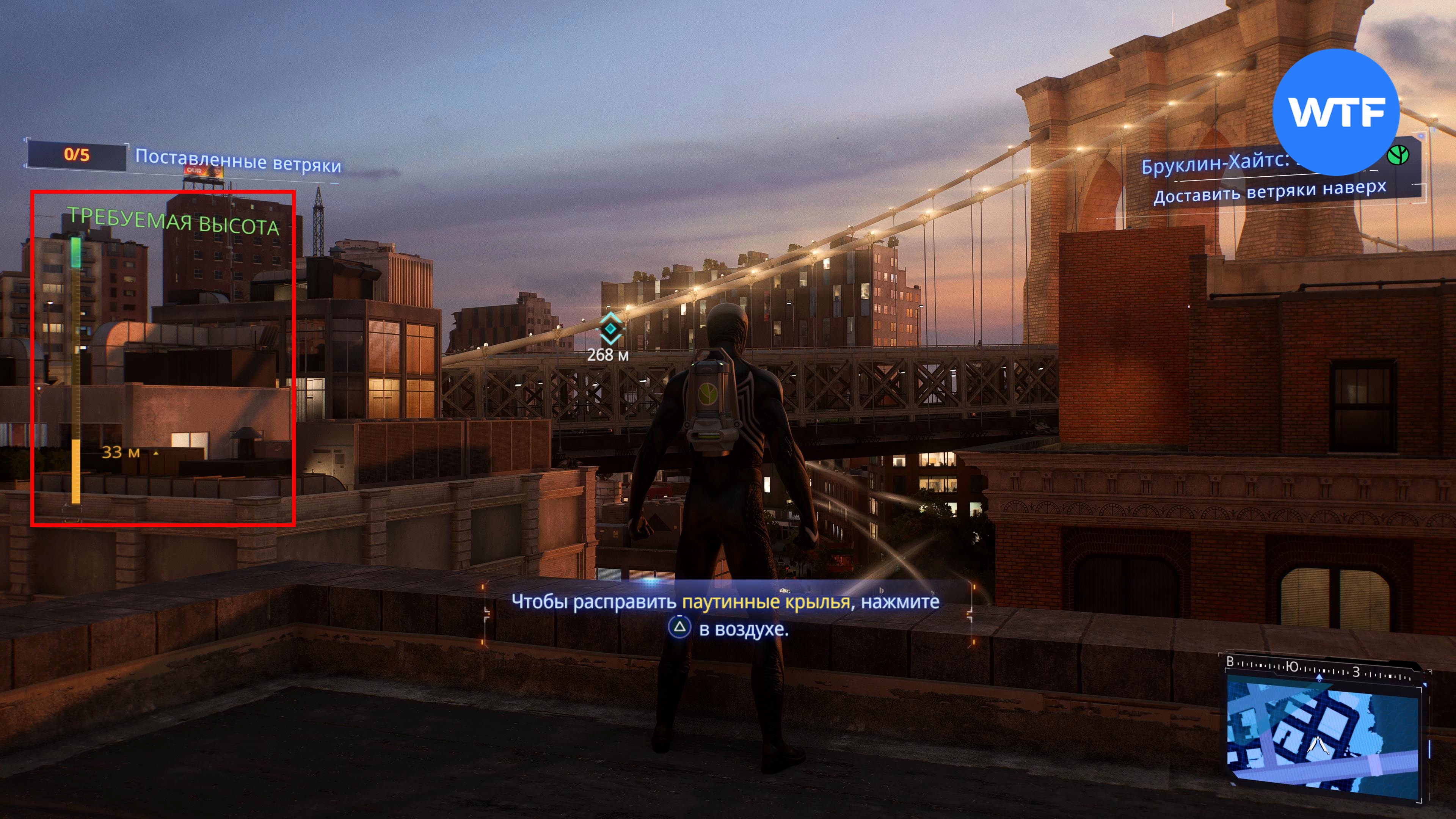 Ваша задача — набрать требуемую высоту, чтобы индикатор слева оказался в зеленой зоне. Для этого нужно использовать паутинные крылья и восходящие потоки воздуха.