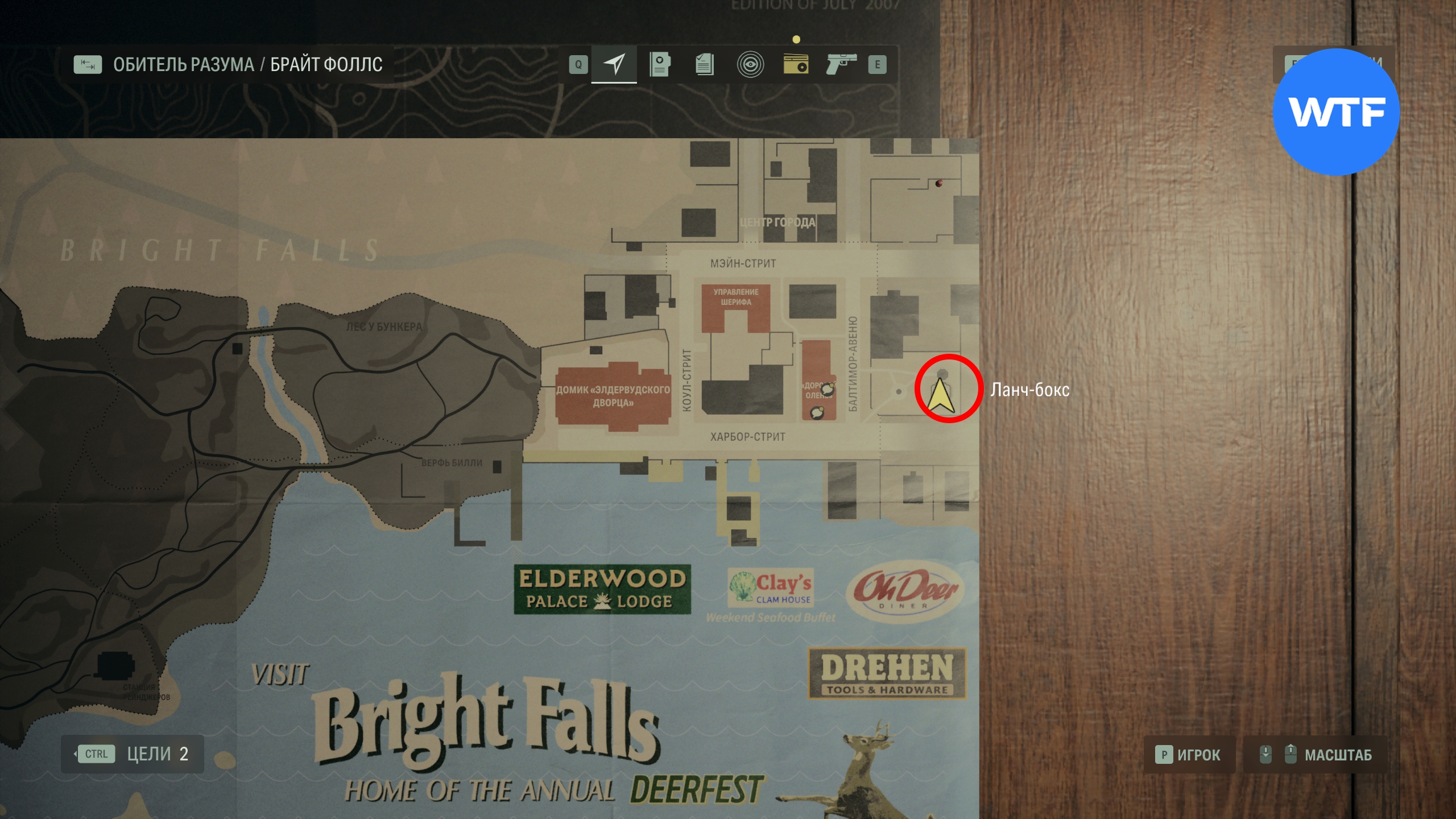 Запарковав машину в Брайт Фоллс, идите вверх по улице до закусочной «Дорогой олень», в которую вам нужно попасть по сюжету. Заберите с её стены карту, а затем идите в Парк основателей через дорогу.