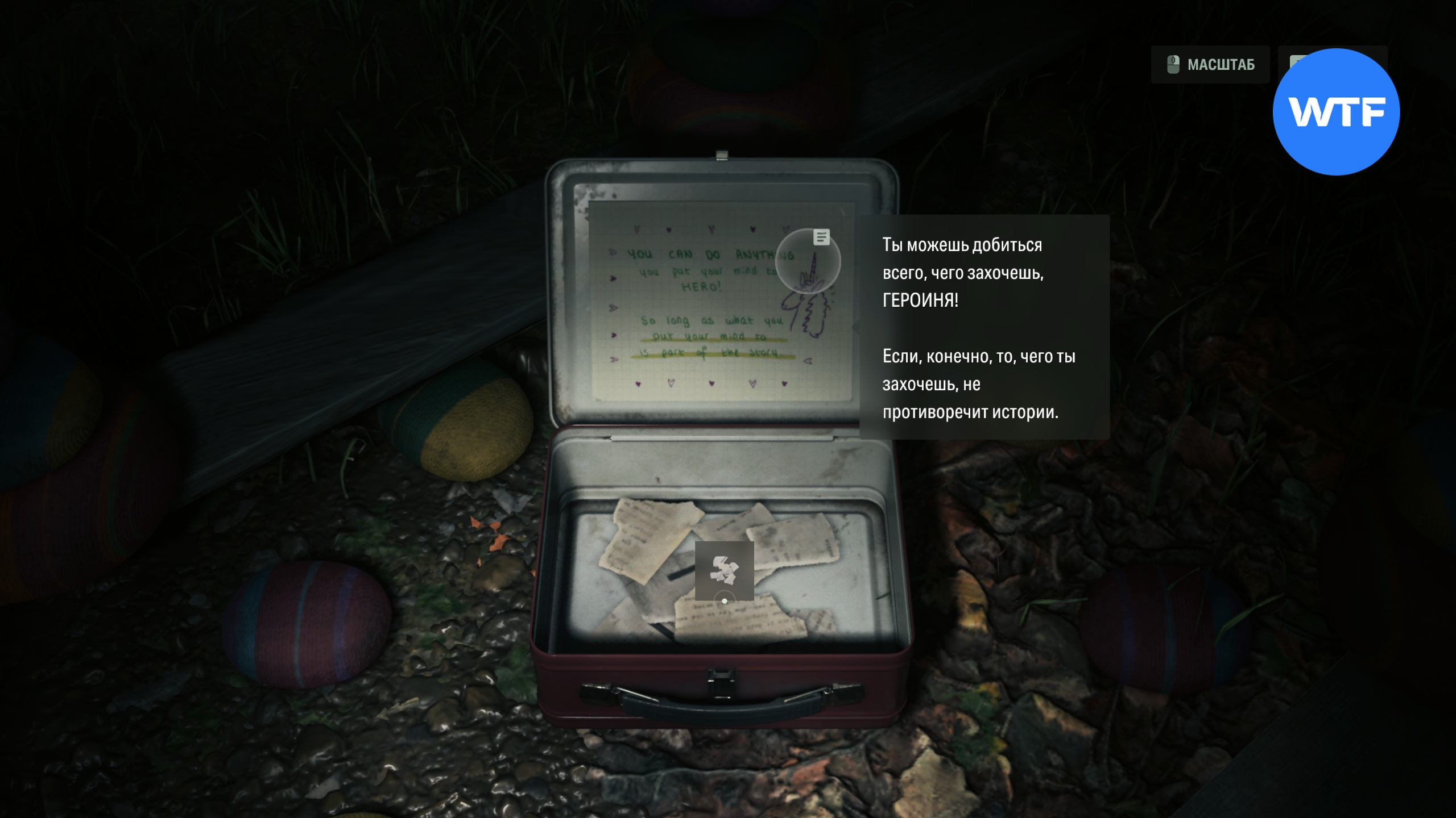 Собрав все ланчбоксы и завершив расследование, вы наконец-то узнаете откуда они взялись. Их везде оставляла Роуз, которая с их помощью отбивалась от Одержимых и надеялась, что Героине истории Уэйка они пригодятся.