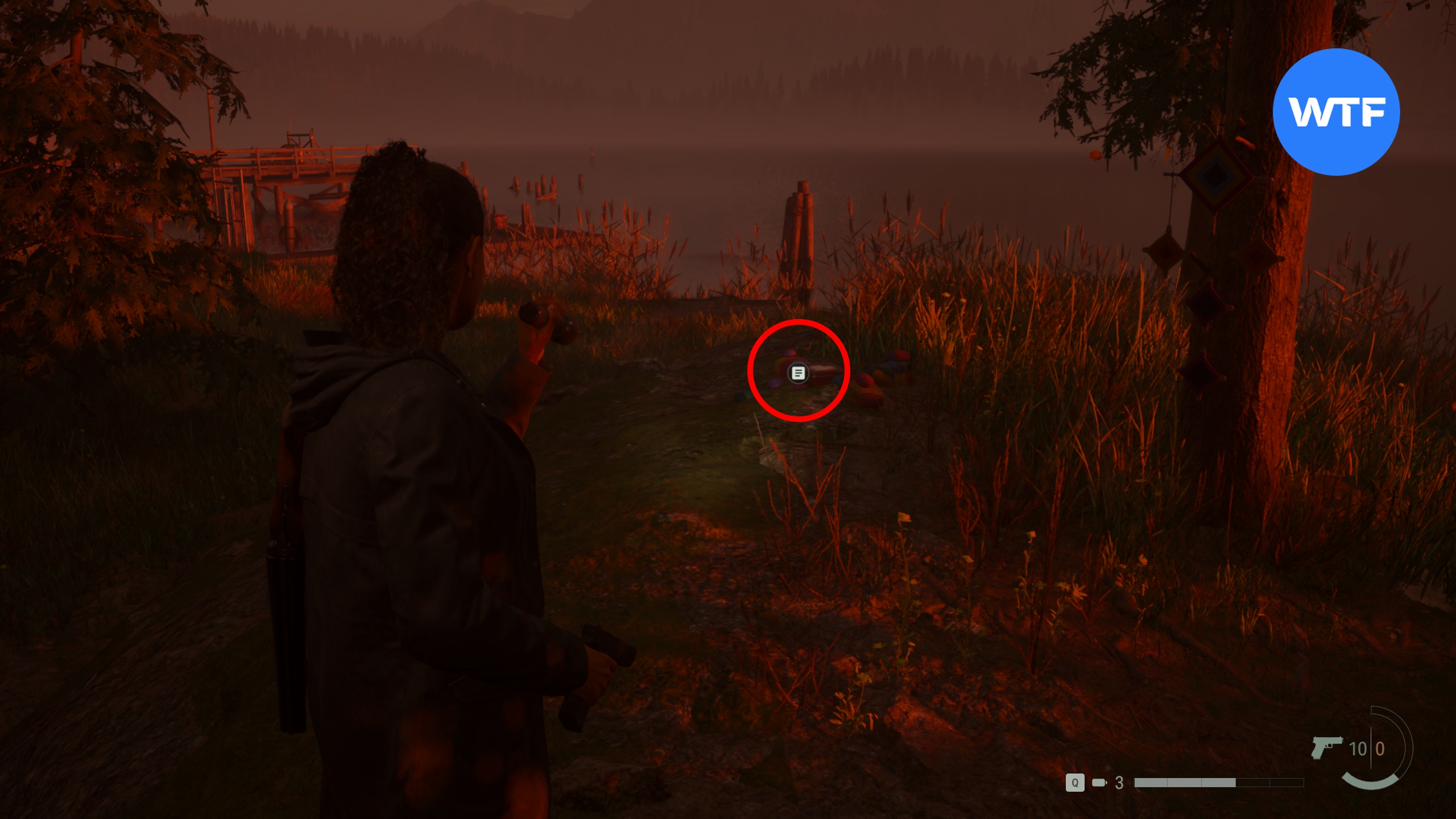 Вернитесь к месту убийства у магазина и от него идите по тропинке на юго-запад, мимо небольшого трейлера. Вам нужно добраться до еще одной смотровой площадки, где разбит лагерь с палаткой. Этот ланчбокс будет лежать в кустах возле заборчика.