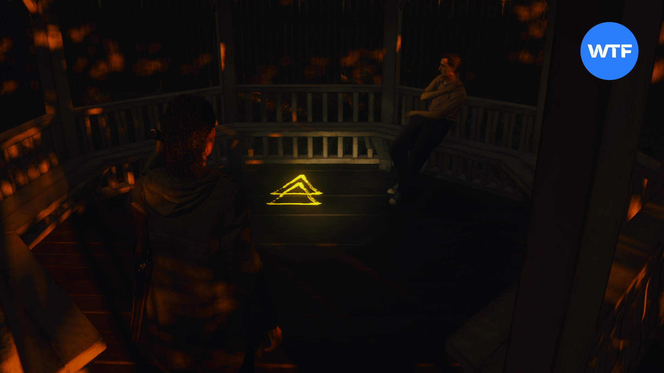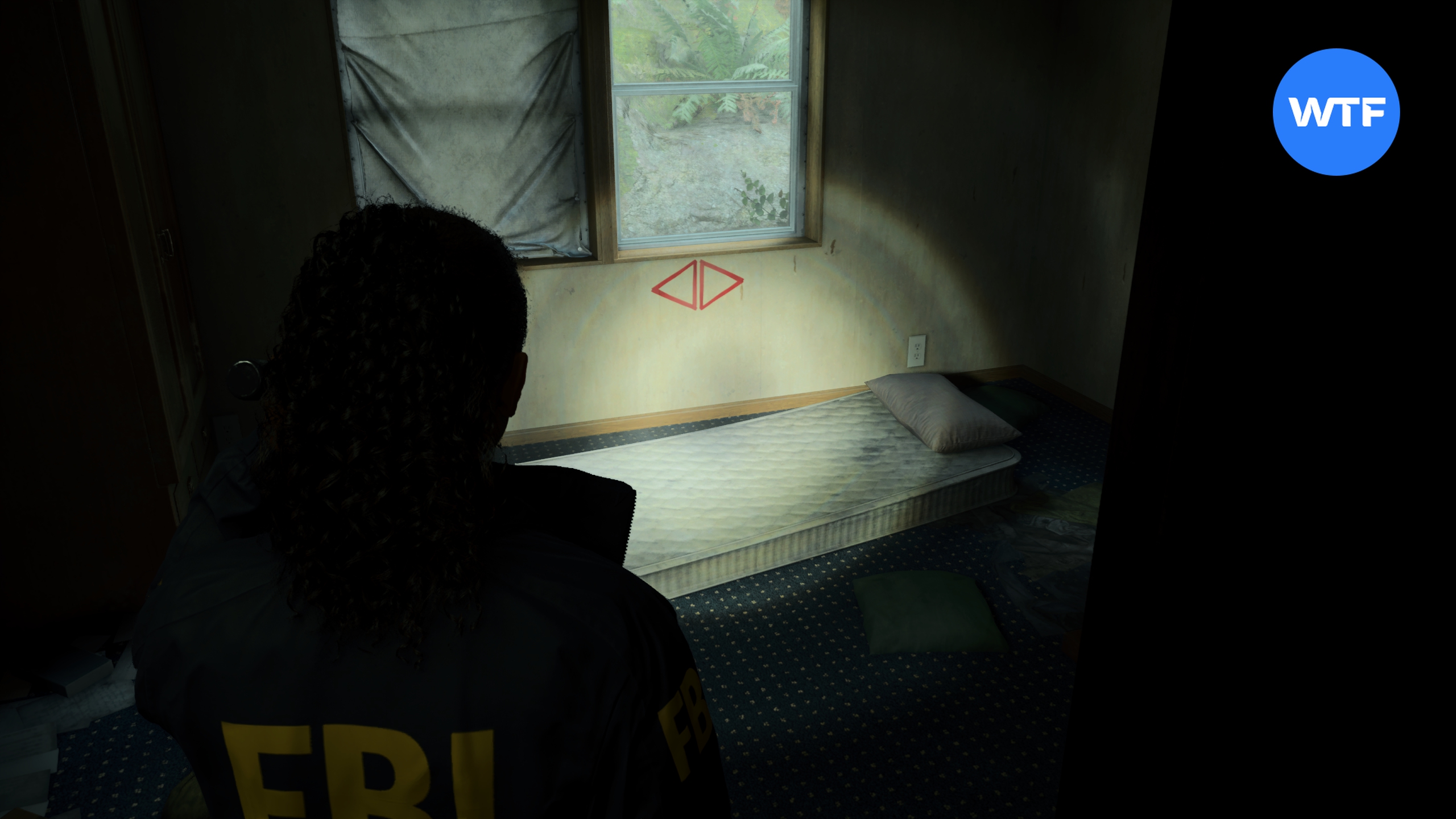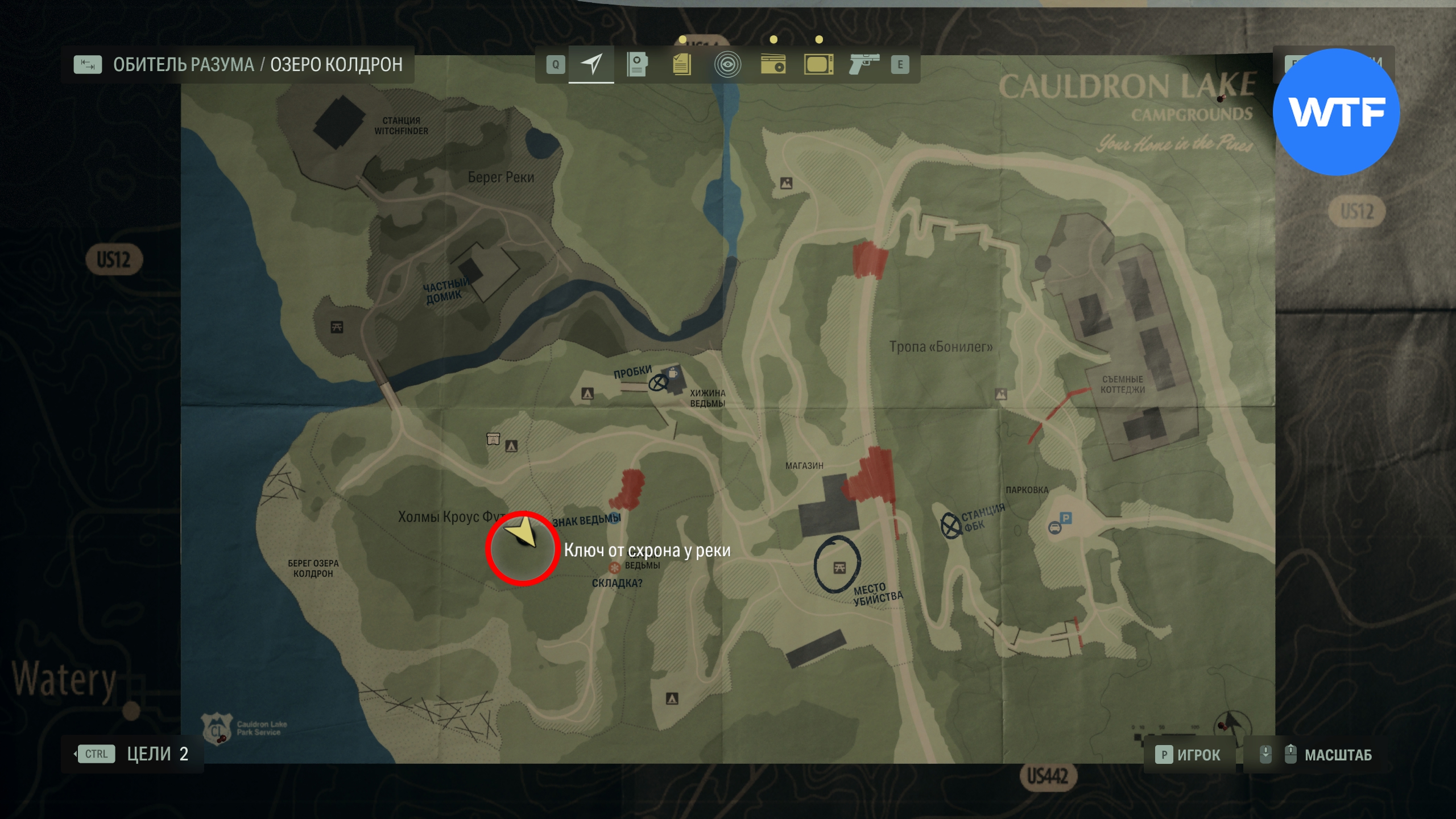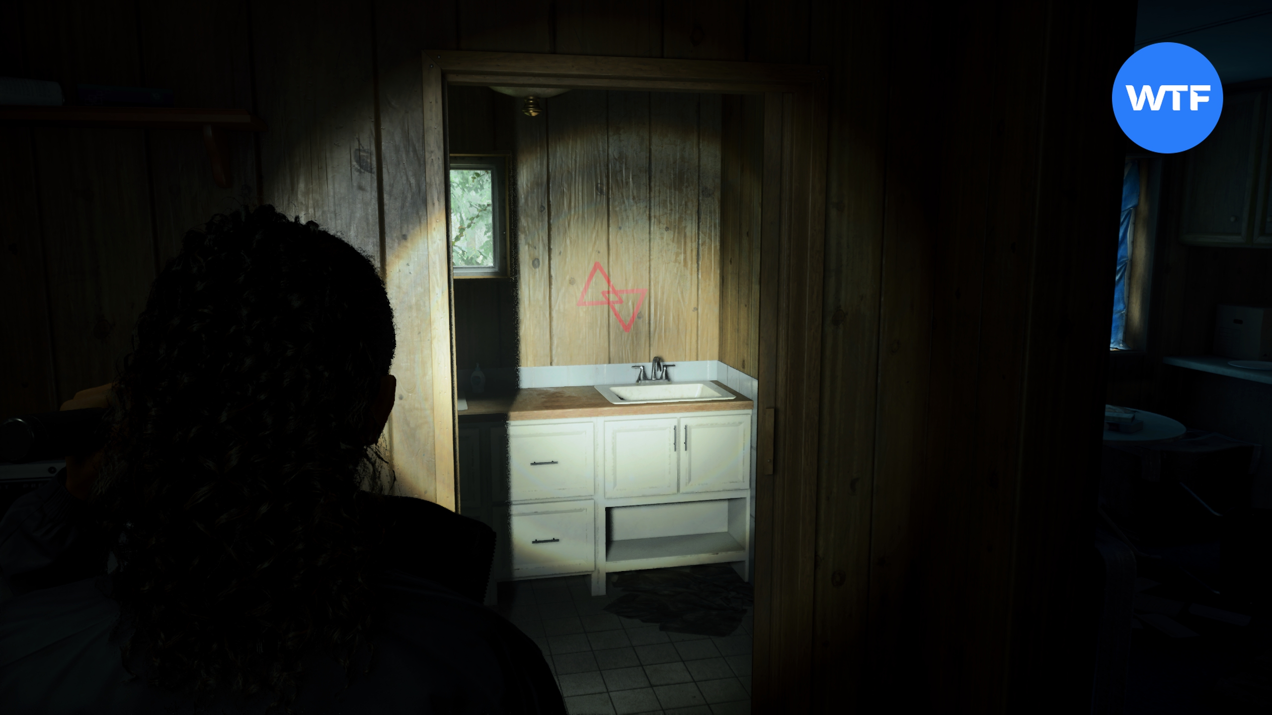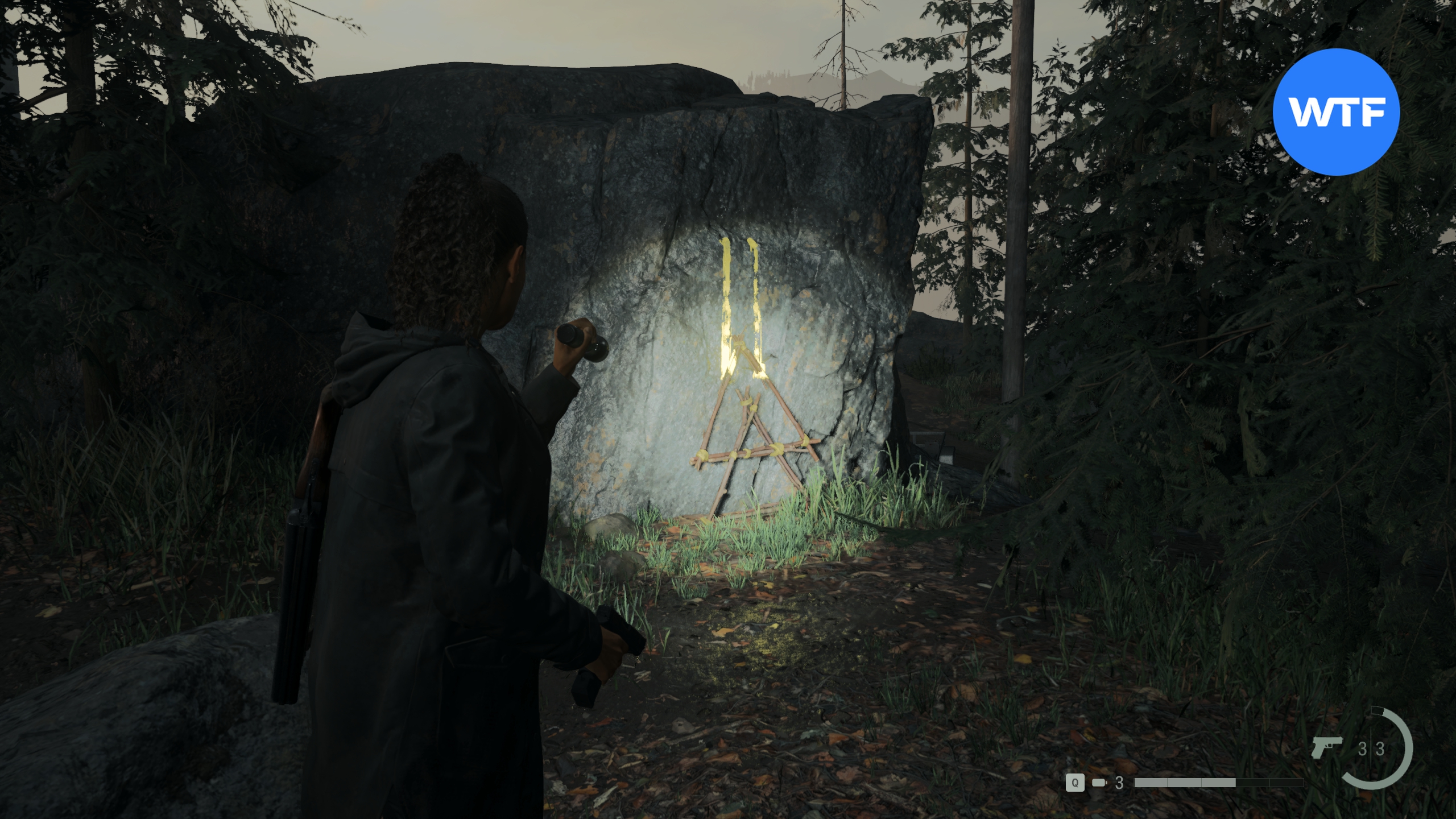 Следующий схрон культа вы найдете в лесу к северо-западу от станции рейнджеров, на холме. К крышке ящика прикреплено что-то вроде карты, на которую вам нужно ориентироваться при поисках ключа.