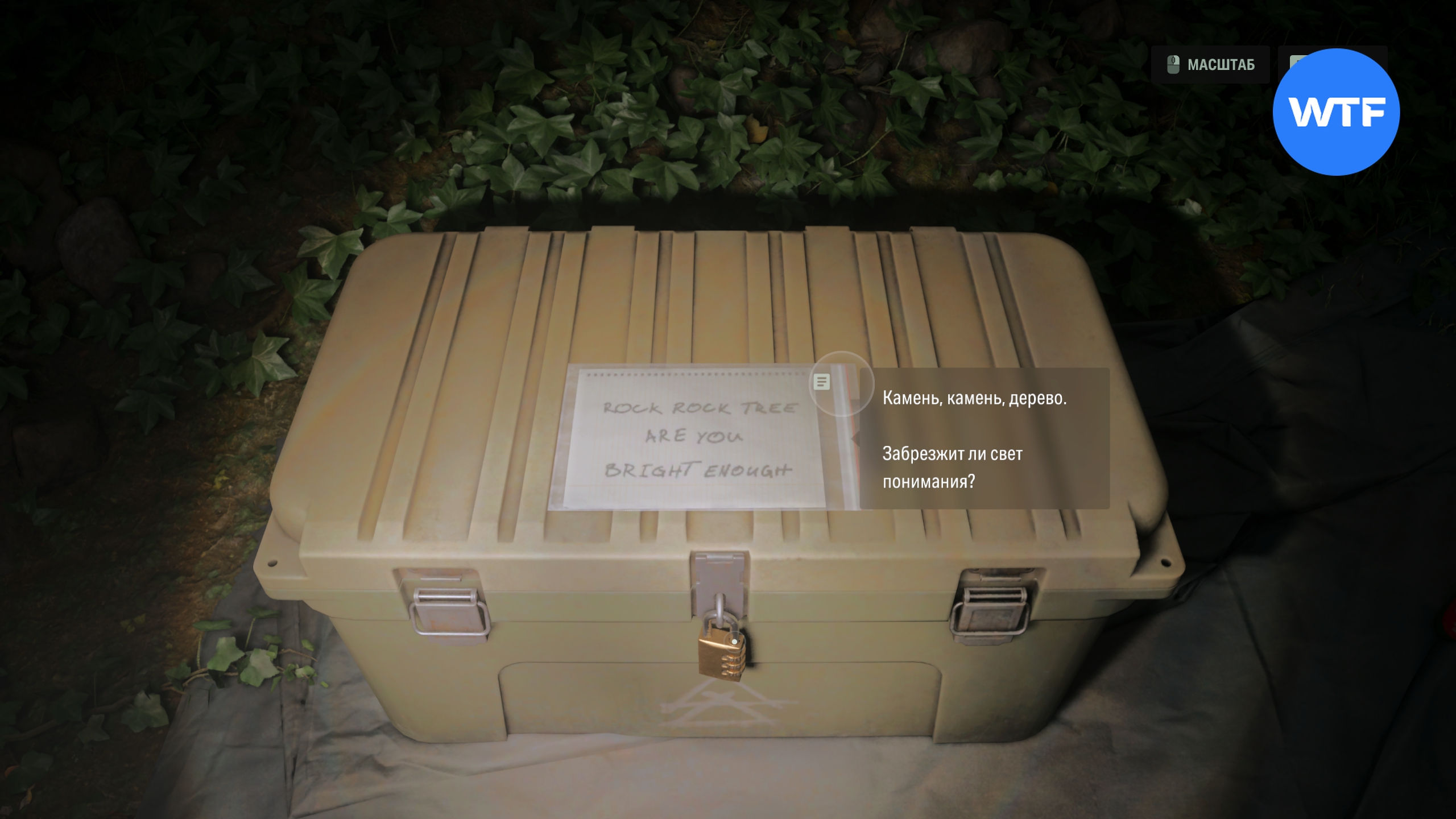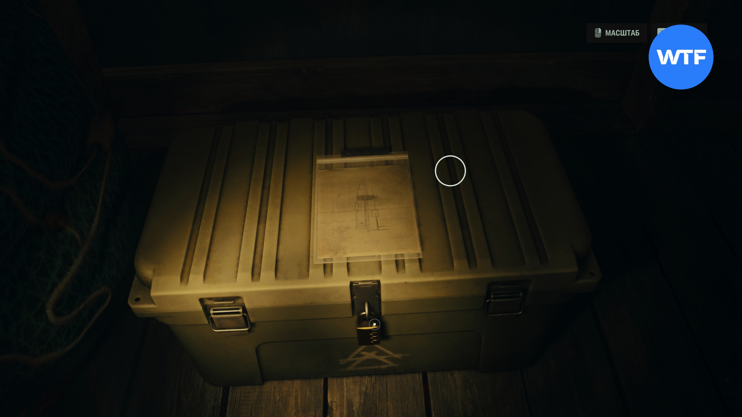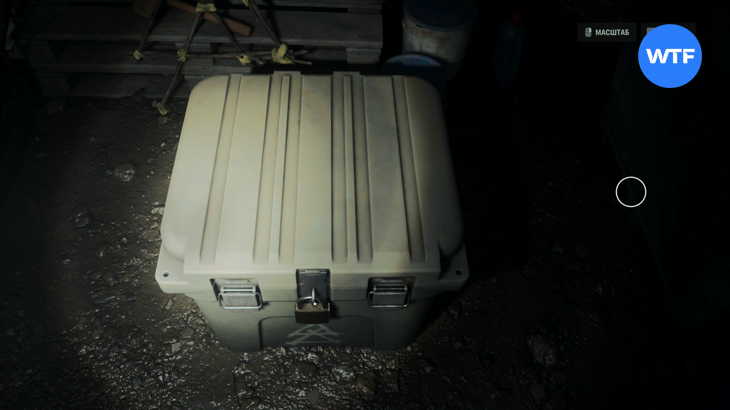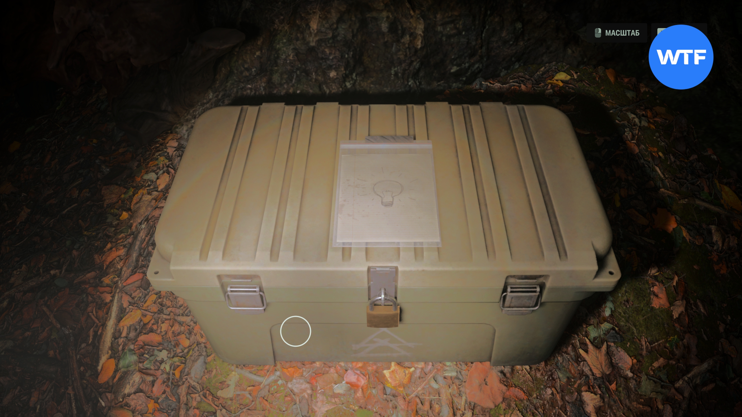 Записки с подсказкой на крышке нет, поэтому искать ключ от навесного замка придется самостоятельно.