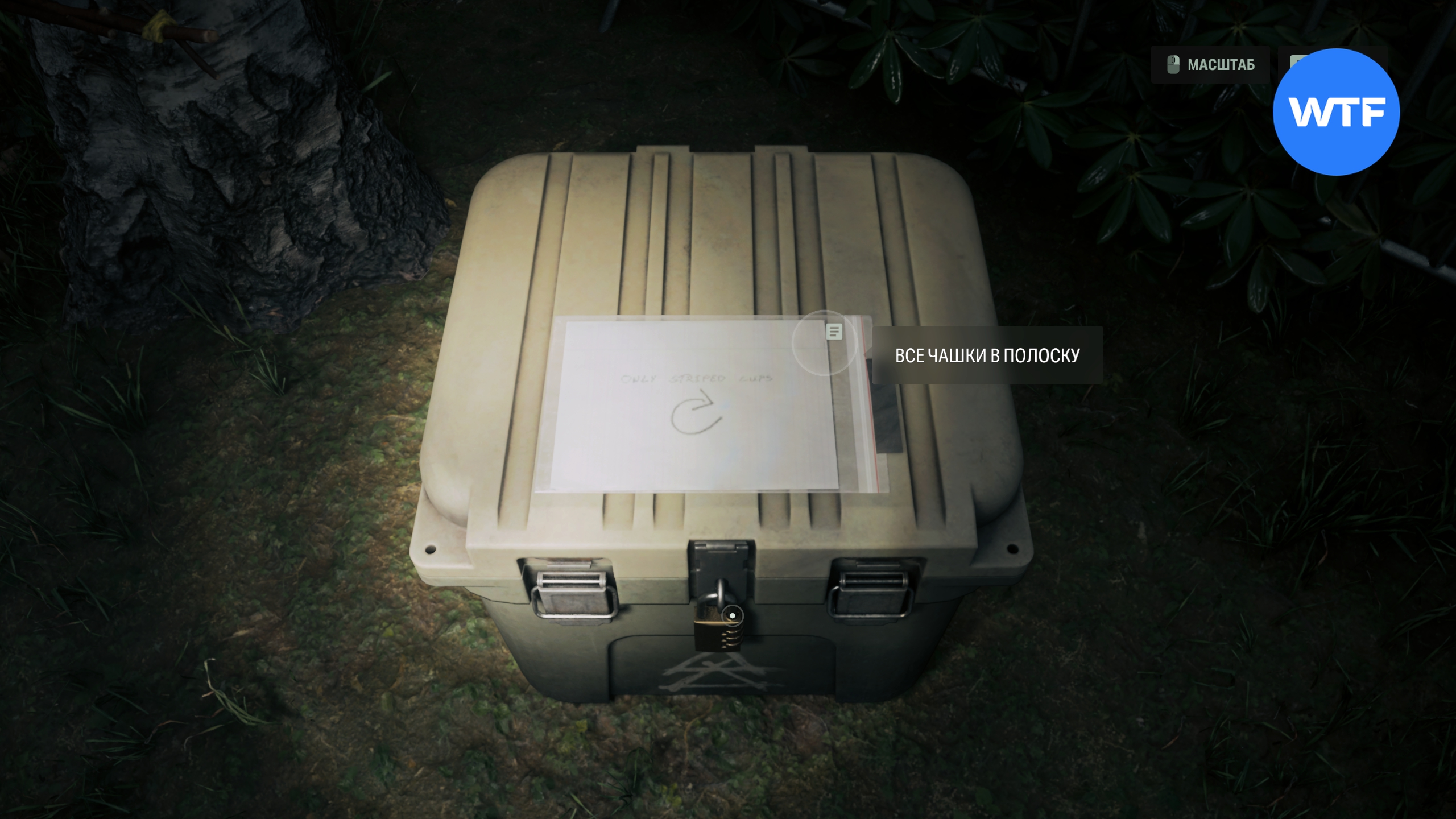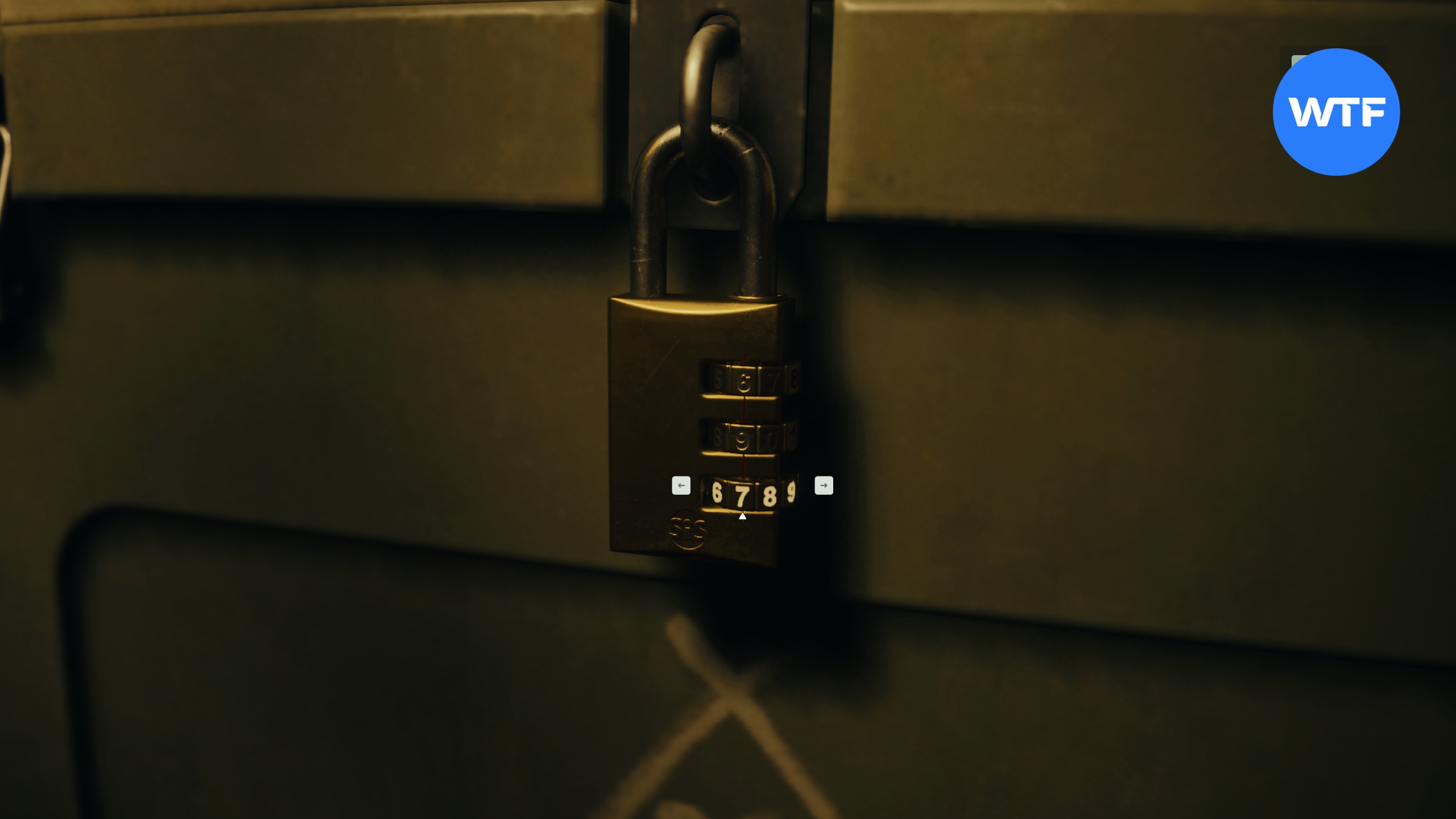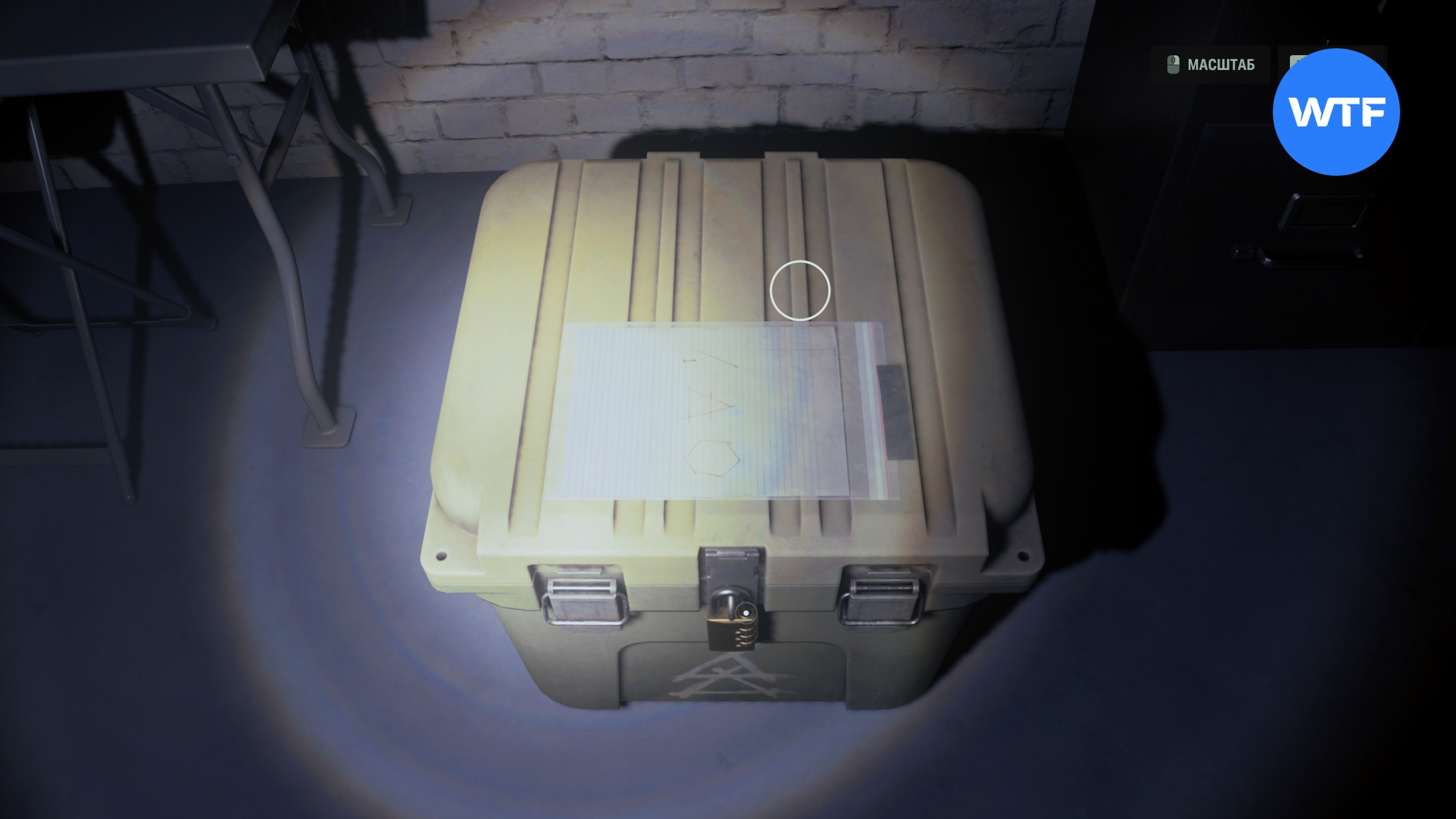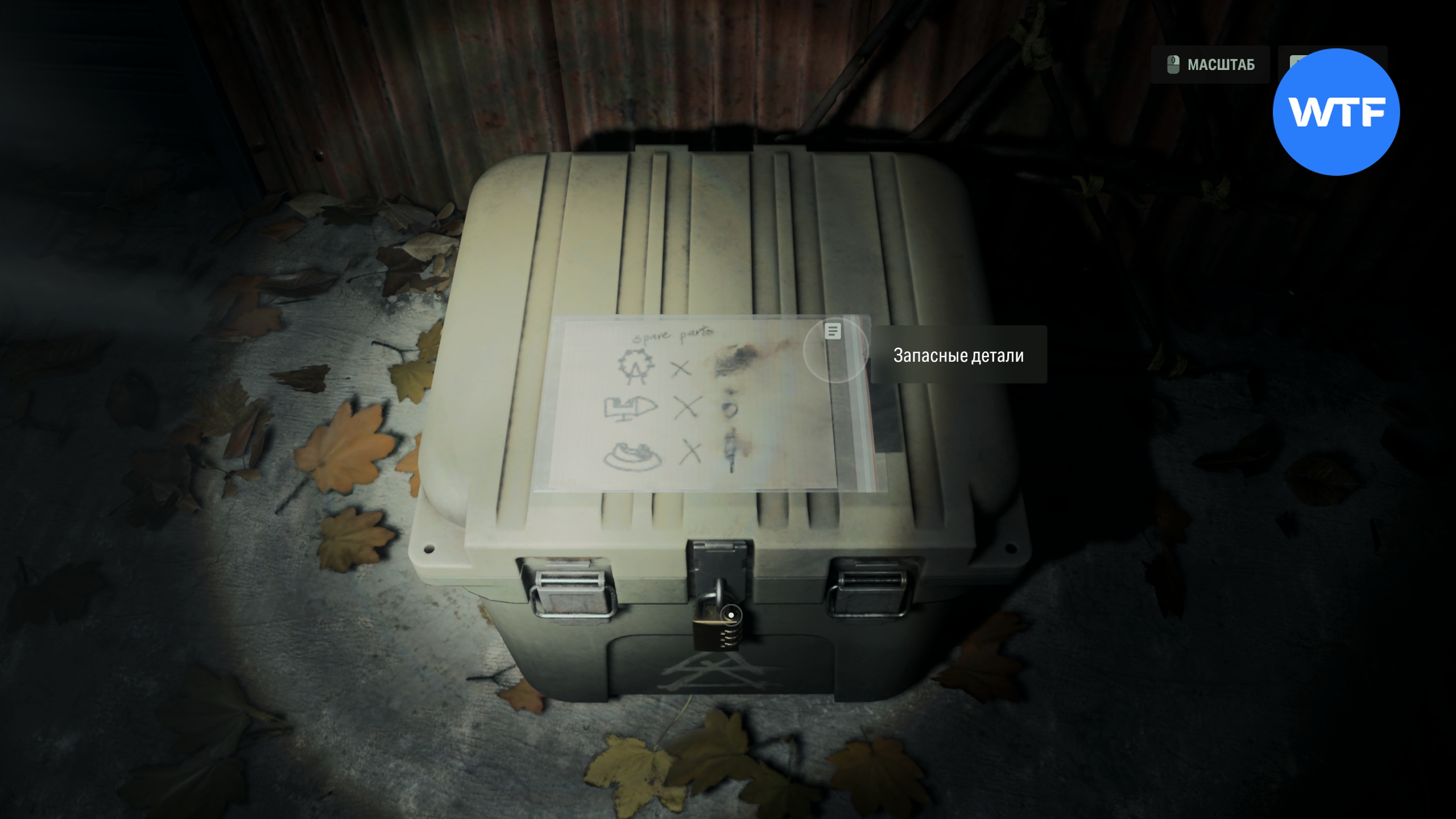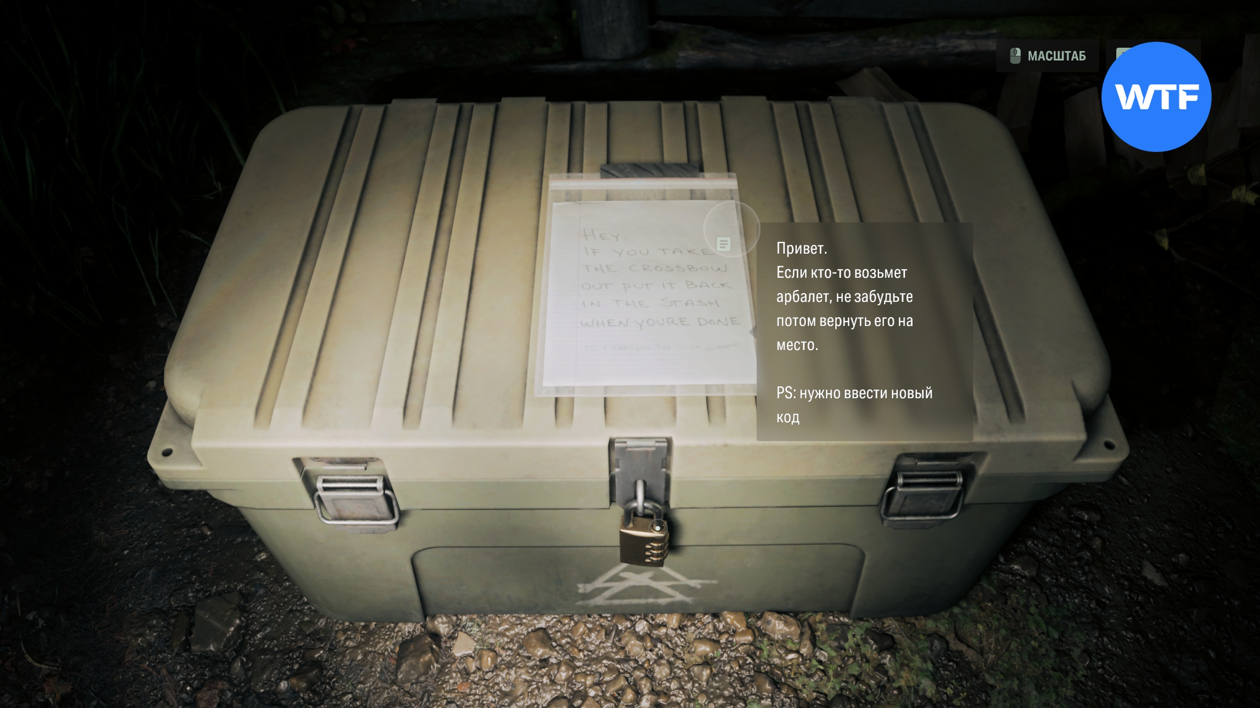 Записки с подсказкой на крышке нет, поэтому искать ключ от навесного замка придется самостоятельно.