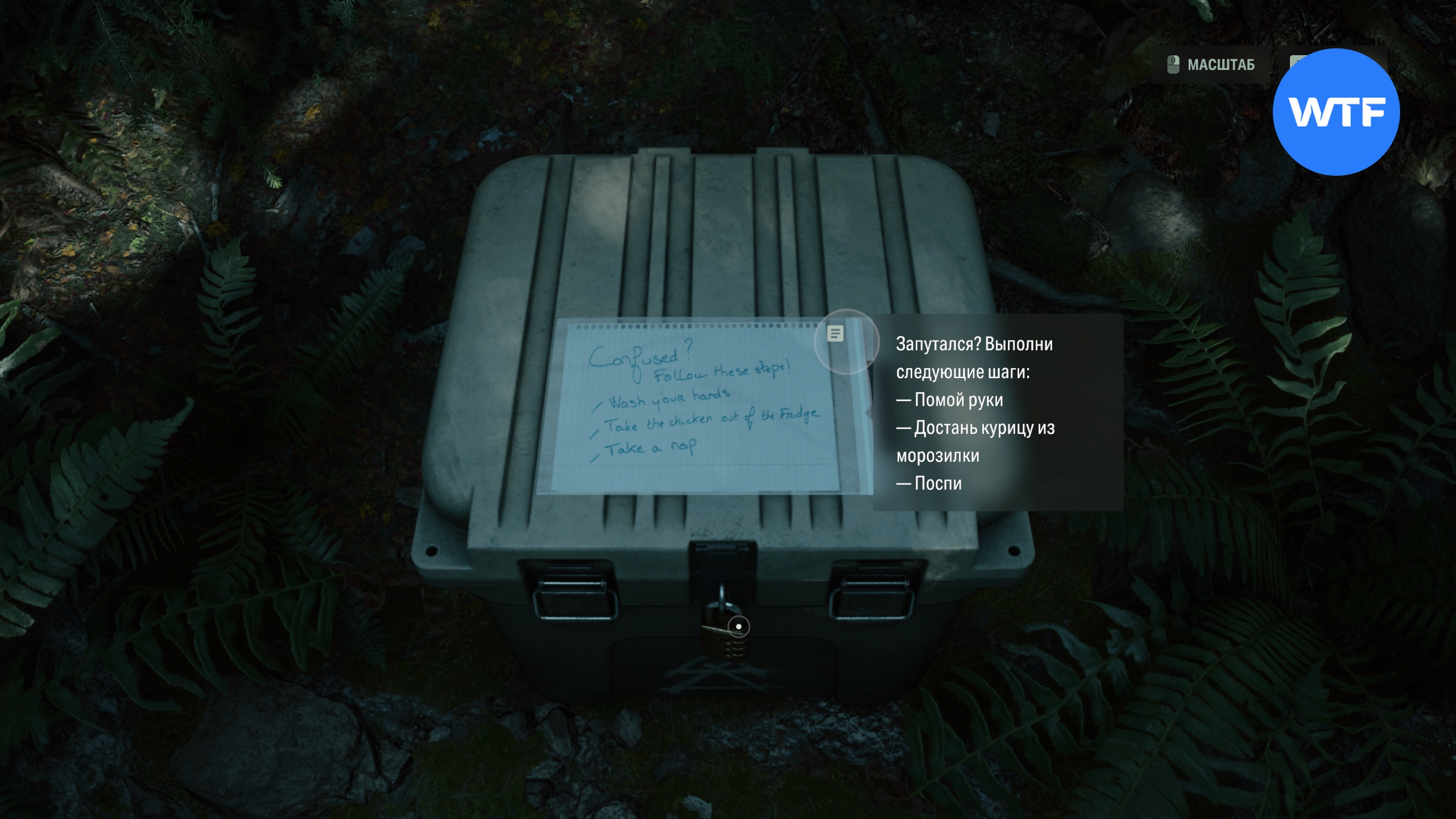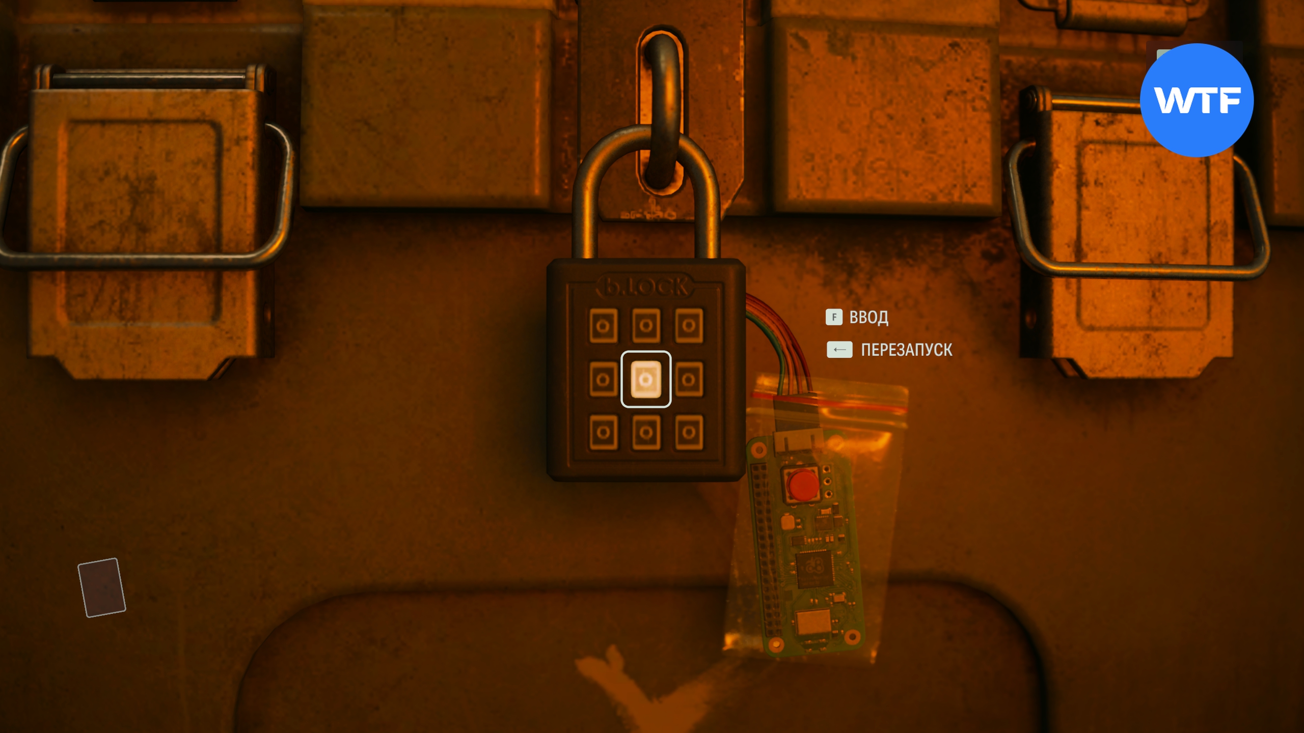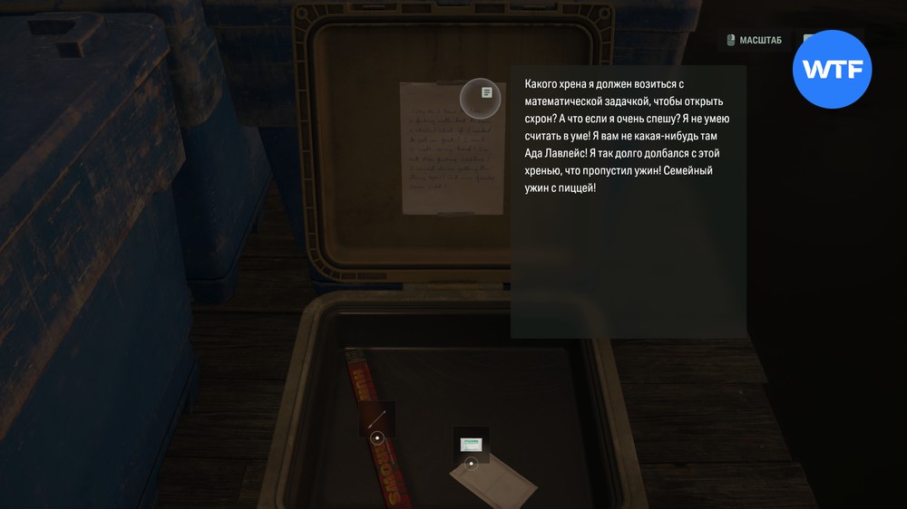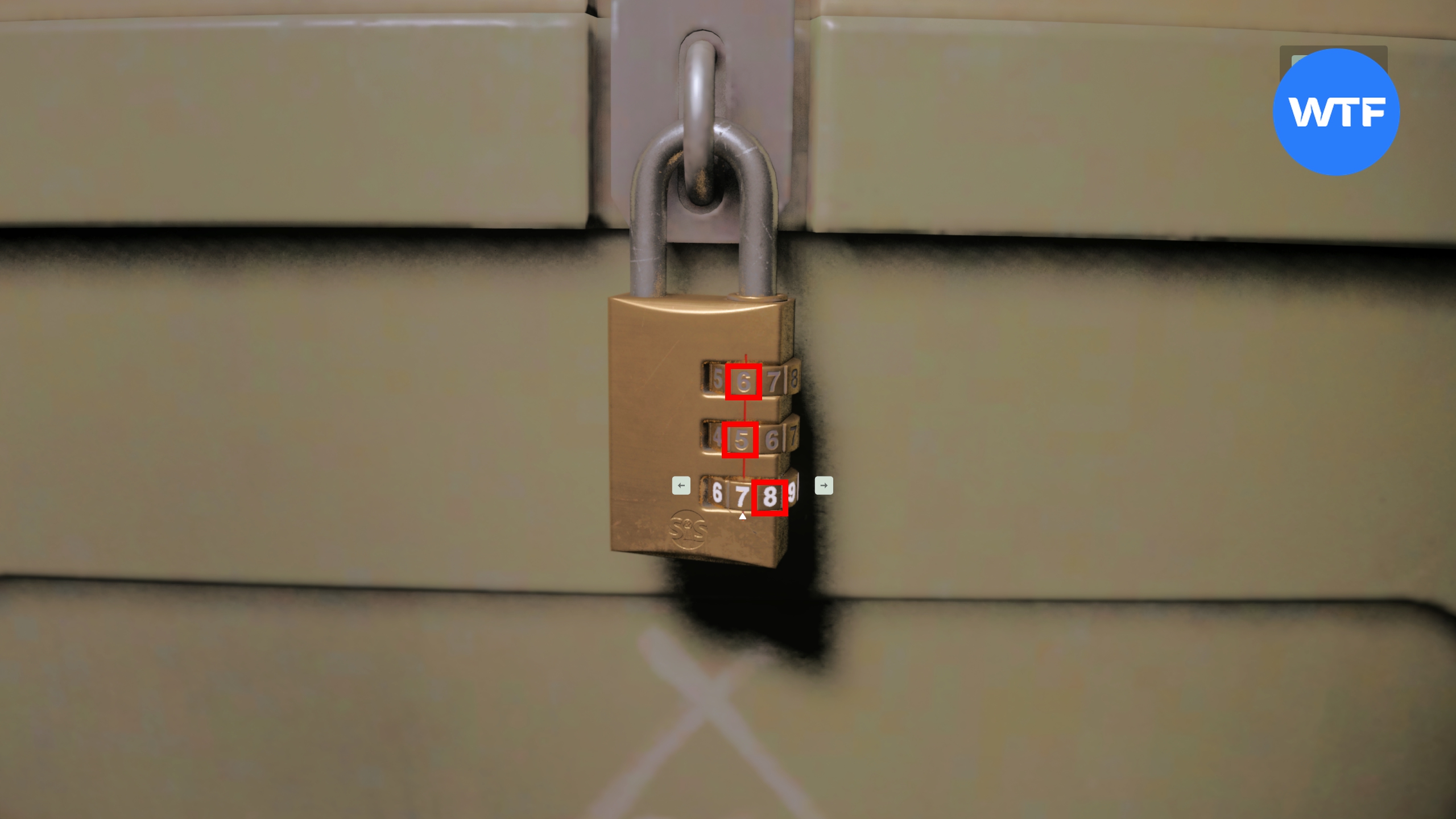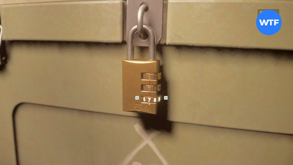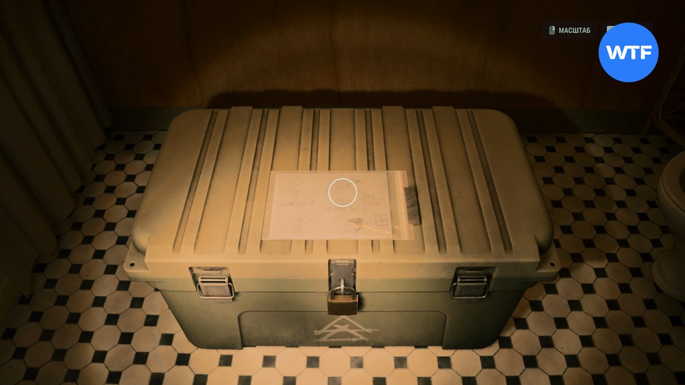 Записки с подсказкой на крышке нет, поэтому искать ключ от навесного замка придется самостоятельно.