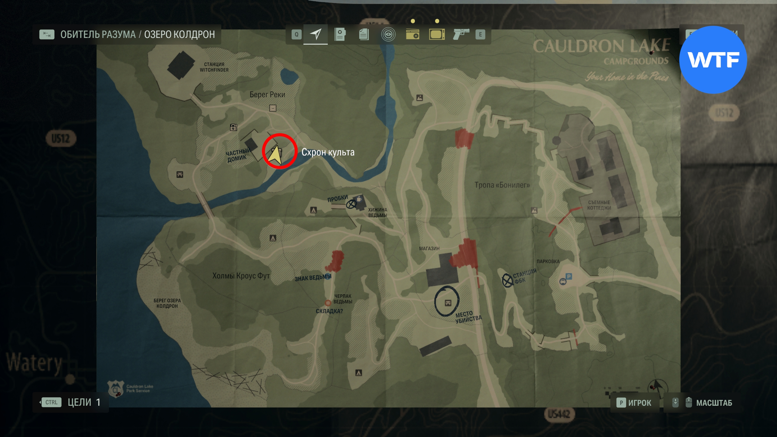 Схрон культа, найденный у домика рейнджера в лесу рядом с Брайт Фоллс