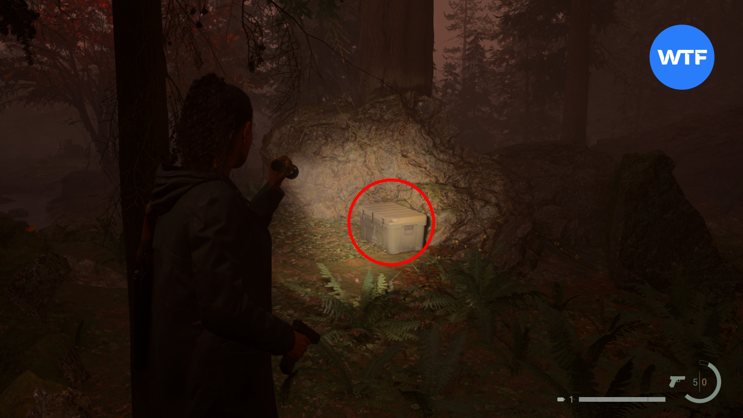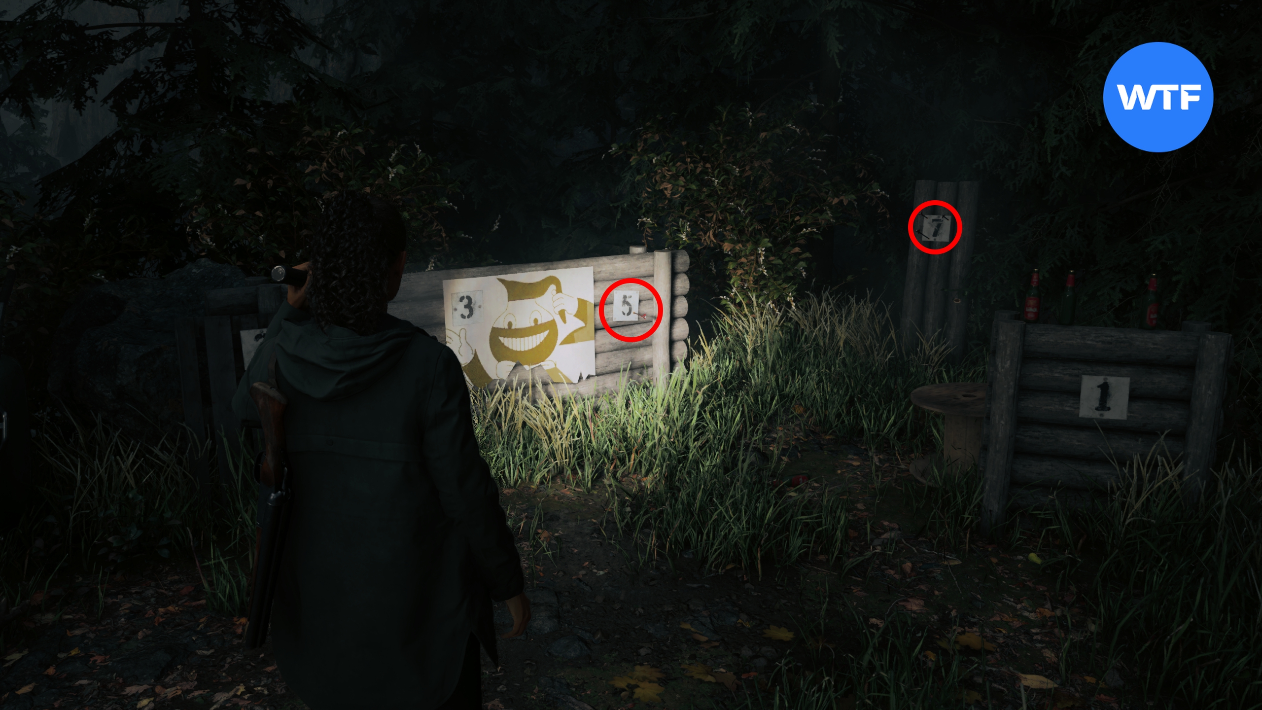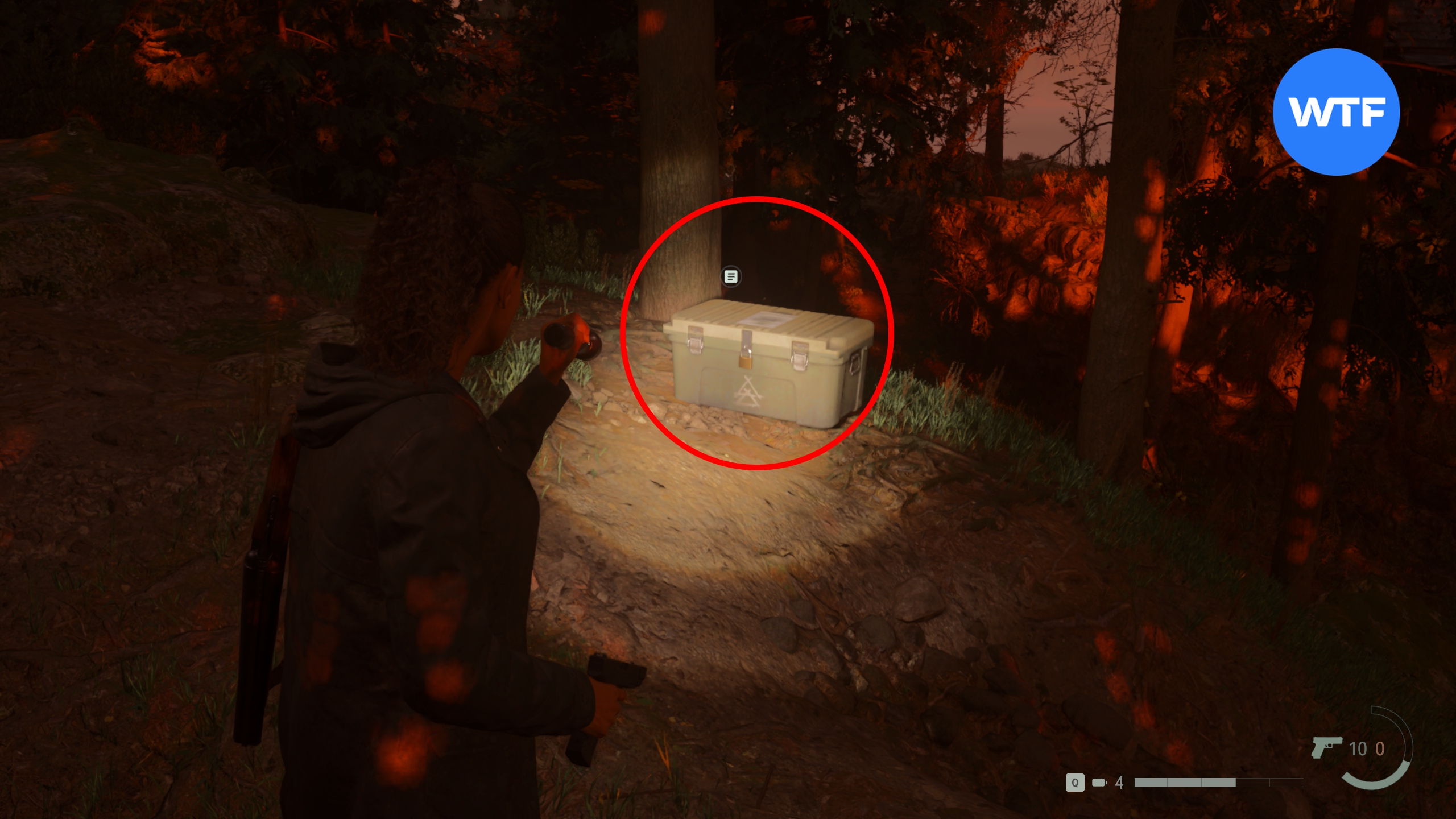 В начале пятой главы вы окажетесь в лесу, через который вам нужно двигаться на запад, чтобы добраться до Дома престарелых «Вальгалла». Примерно на середине пути, к на холме к северо-западу от комнаты отдыха, вы найдете очередной схрон. Чтобы его открыть, нажмите кнопки на замке в том же порядке, в котором они загораются.