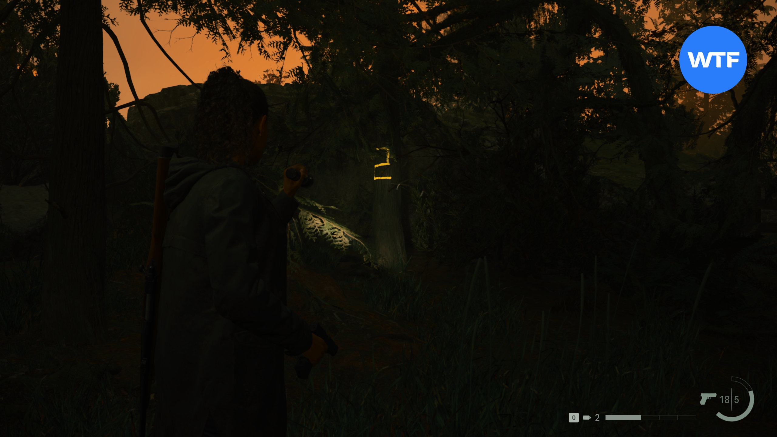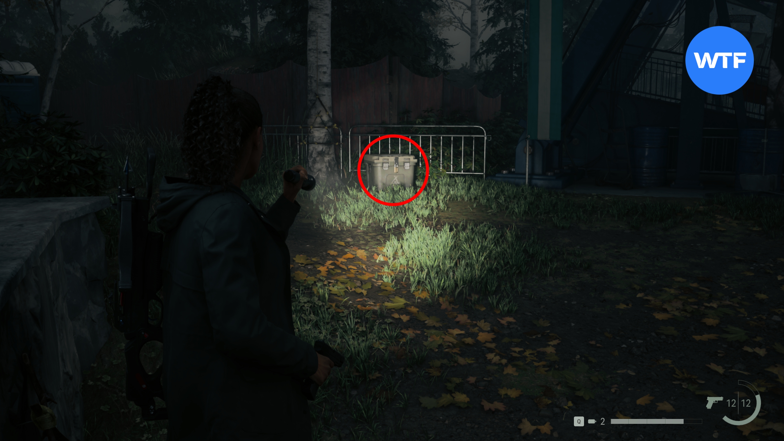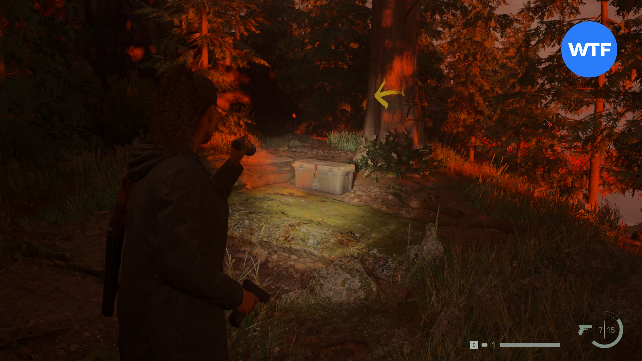 В начале пятой главы вы окажетесь в лесу, через который вам нужно двигаться на запад, чтобы добраться до Дома престарелых «Вальгалла». Примерно на середине пути, к на холме к северо-западу от комнаты отдыха, вы найдете очередной схрон. Чтобы его открыть, нажмите кнопки на замке в том же порядке, в котором они загораются.
