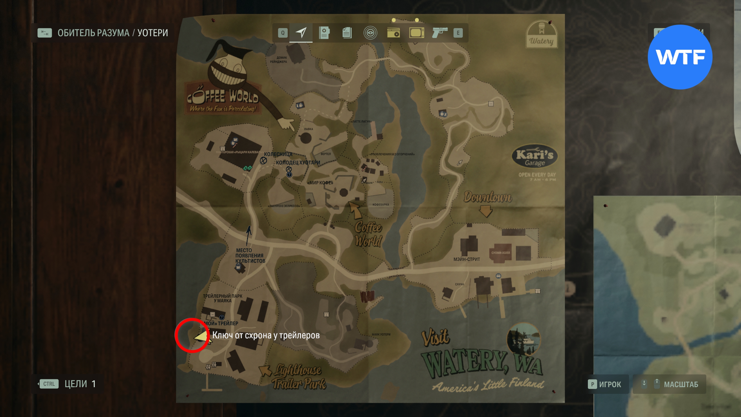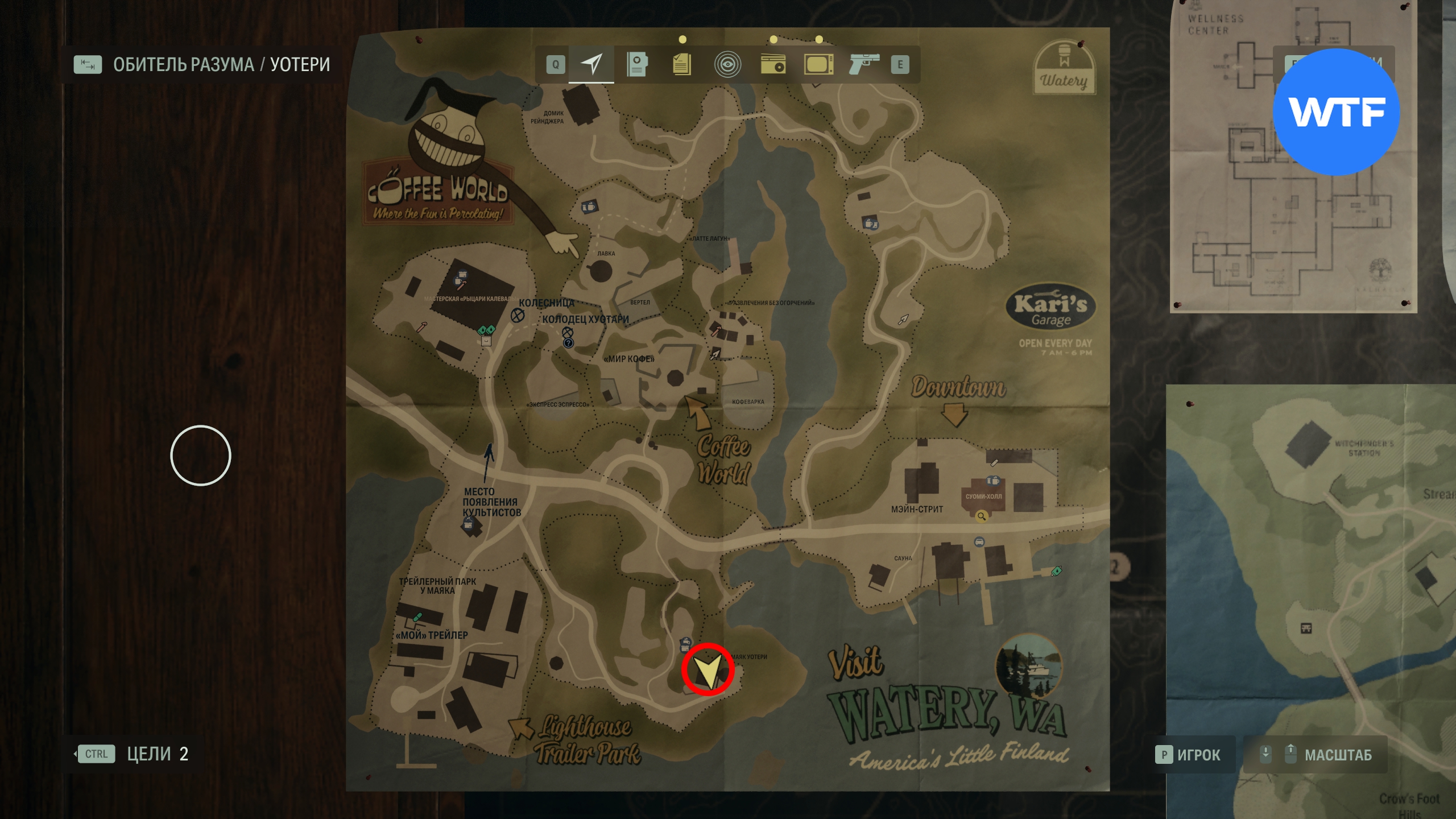 Чтобы воспользоваться ключом от маяка, найденном в последнем из схронов культа, отправляйтесь в Уотери. От парковки идите по главной дороге на запад и после того как перейдете через мост сворачивайте на юг.