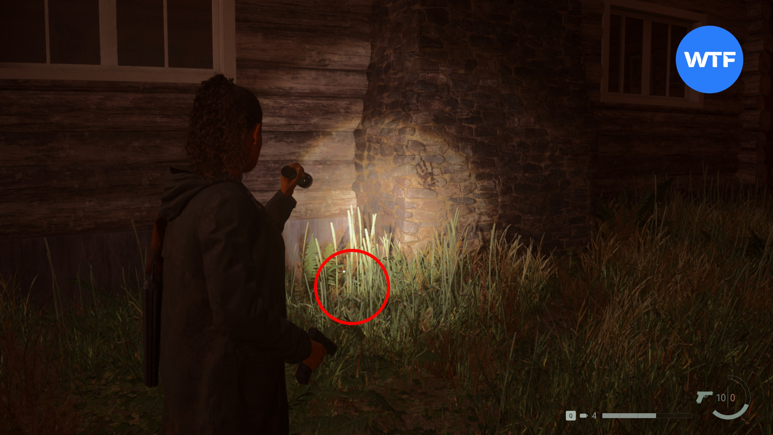 Чтобы найти этот ключ, подойдите к станции рейнджеров с северной стороны. Он лежит в траве прямо возле каменного дымохода. За ориентир можно взять отпечаток ладони на стене дома.