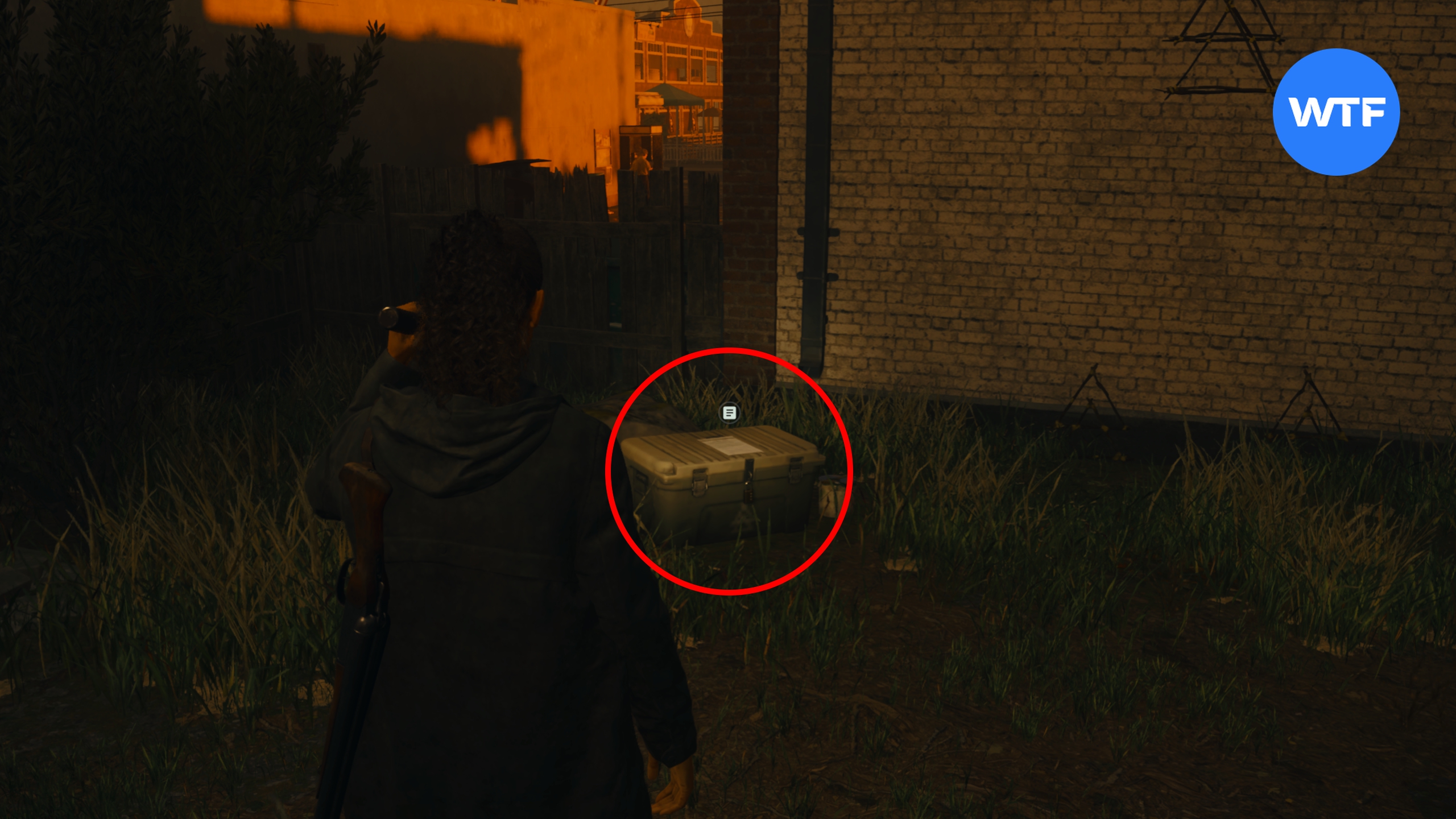 Используйте болторез, чтобы срезать замок на воротах, ведущих на задний двор. Ящик с припасами культа будет стоять под фонарем возле стены здания.