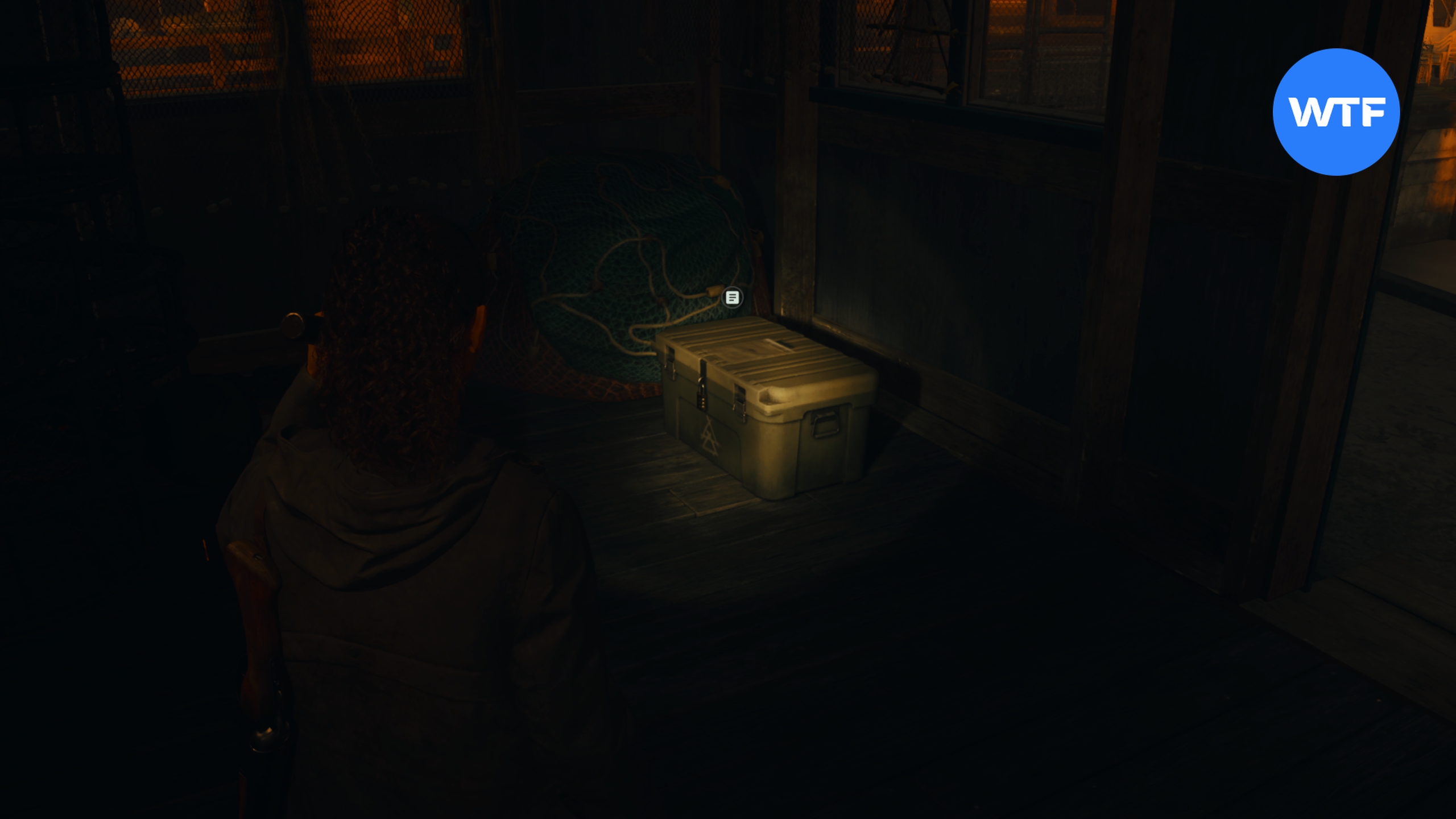 Этот схрон вы найдете в сарае на пристани Брайт Фоллс к югу от Харбор-стрит. Вам понадобится болторез, чтобы срезать замок на ведущих сюда воротах. Записка на крышке даст подсказку для поисков кода.