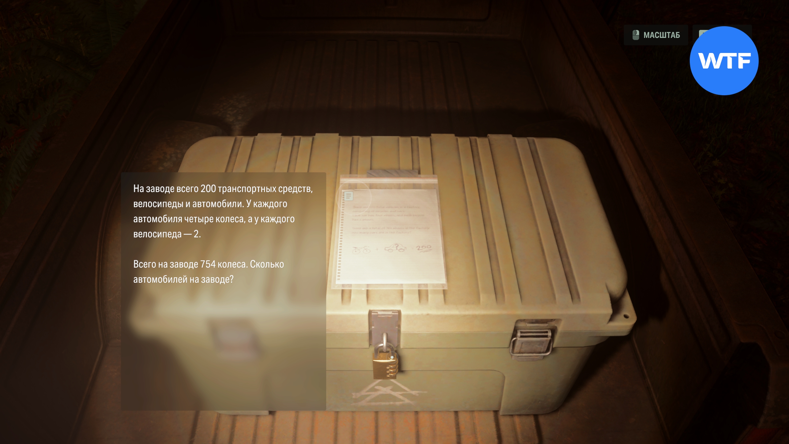 Чтобы решить задачу с автомобилями и велосипедами и получить доступ к содержимому схрона культа, придется снова вспомнить школу и засесть за уравнения. Впрочем, можете просто воспользоваться подсказкой ниже.