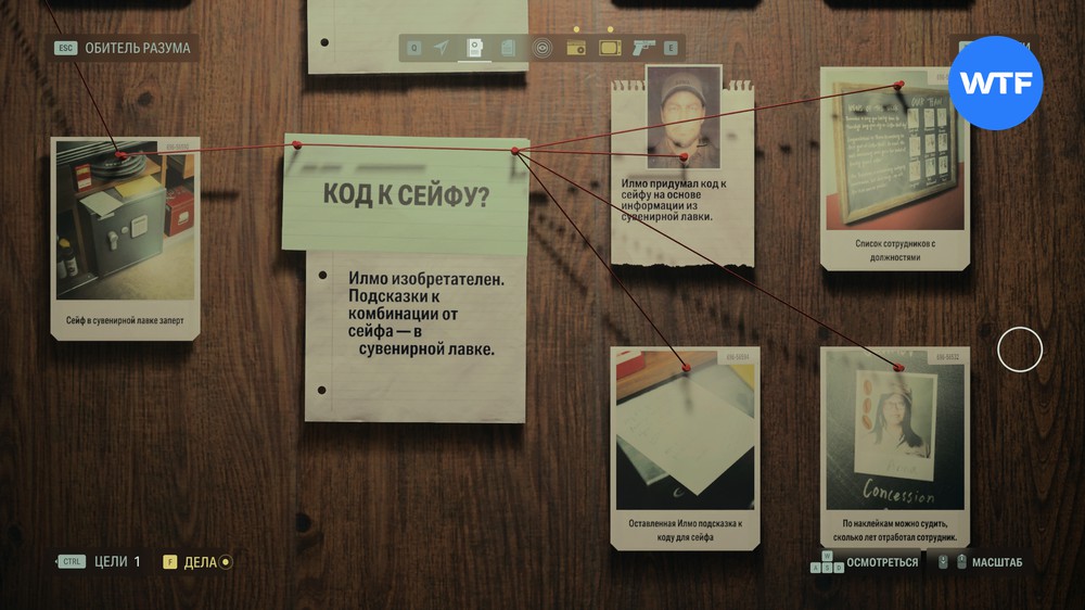 После размещения улик на доске с зацепками в обители разума Саги вам откроются дополнительные данные: выяснится что код от сейфа хранится где-то в сувенирной лавке: