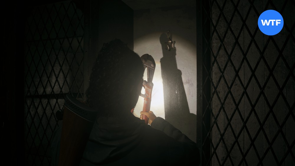 Забрав ключ, вернитесь в комнату, где должен быть шкаф, и снова воспользуйтесь переключателем: вам нужно выключить свет, чтобы шкаф с инструментом снова появился в реальности. Воспользовавшись ключом, вы сможете открыть шкаф, забрать свой болторез и продвинуться по сюжету дальше, а также использовать этот инструмент в других целях.