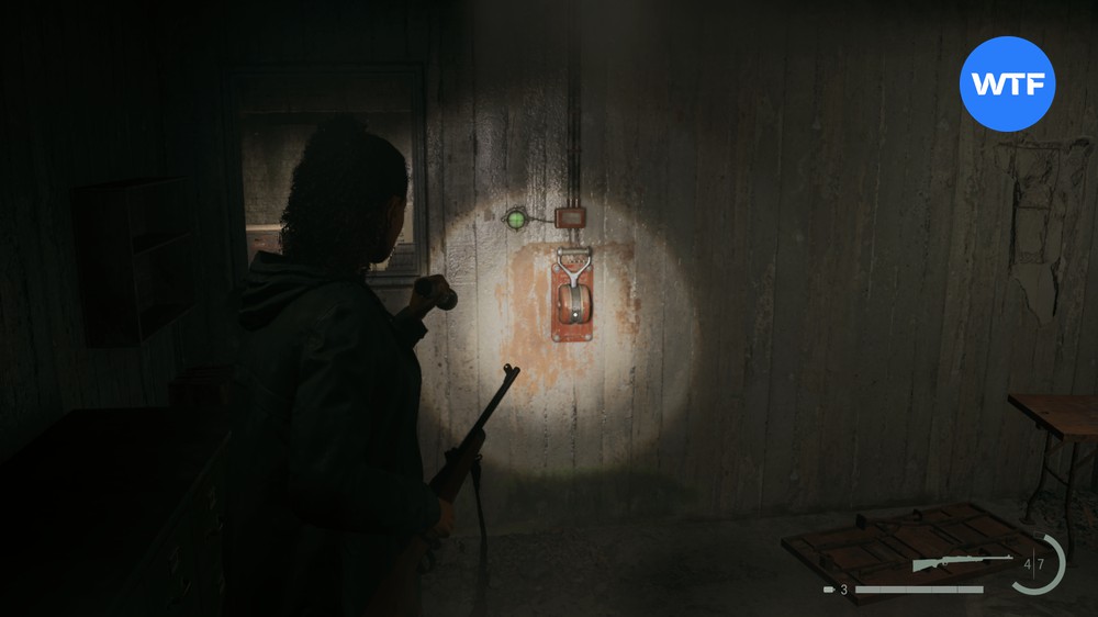 Спустившись вниз, вы окажетесь в локации с меняющейся реальностью, которую нужно исследовать. Механика со светом в этой области чем-то похожа на главы с Аланом Уэйком, только в роли лампы здесь выступают красные переключатели: они убирают стены и меняют содержимое комнат.