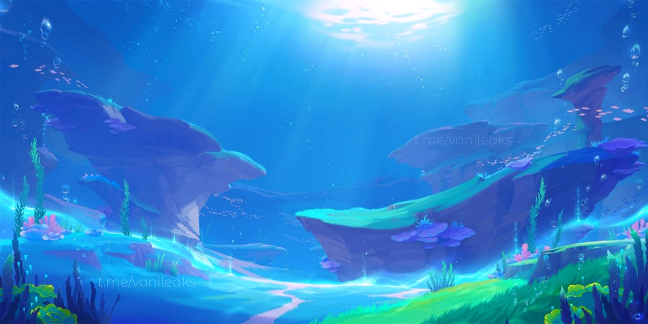 Важный момент: по всей видимости, в Чайнике безмятежности Фонтейна будет не только привычная наземная, но и подводная локация. Раньше такого не бывало.