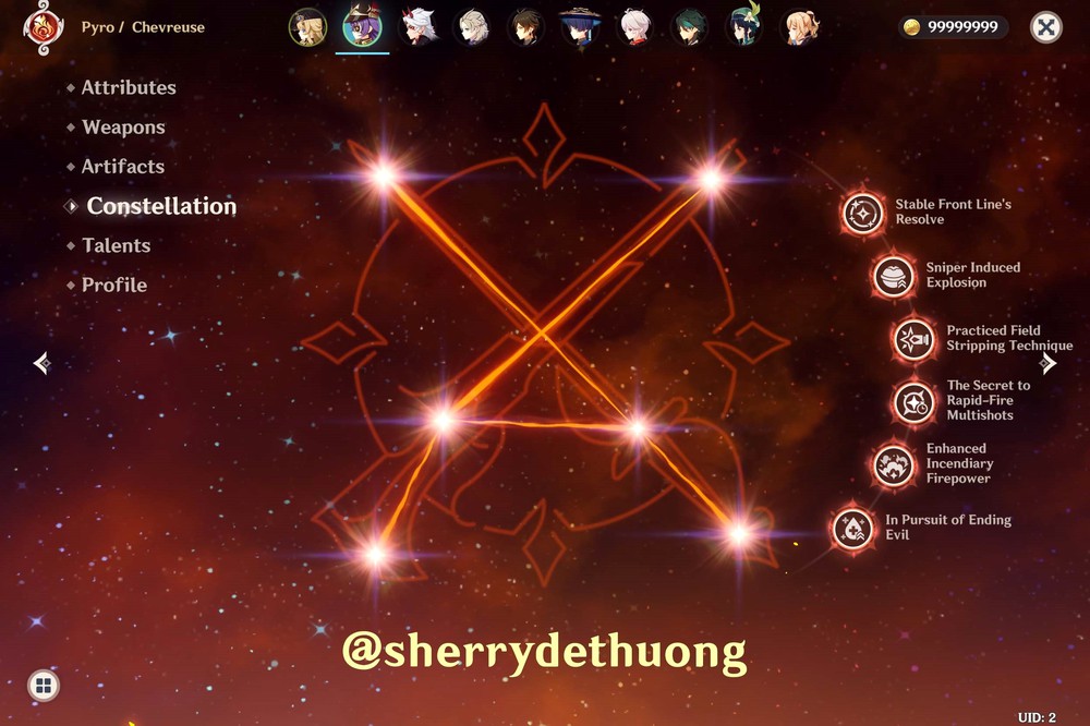 Второй бафф активируется после получения трех осколков благодаря реакции Кристалл. Когда это произойдет, персонаж испустит волну урона, наносящую урон всем ближайшим противникам, затем счетчик обнулится.