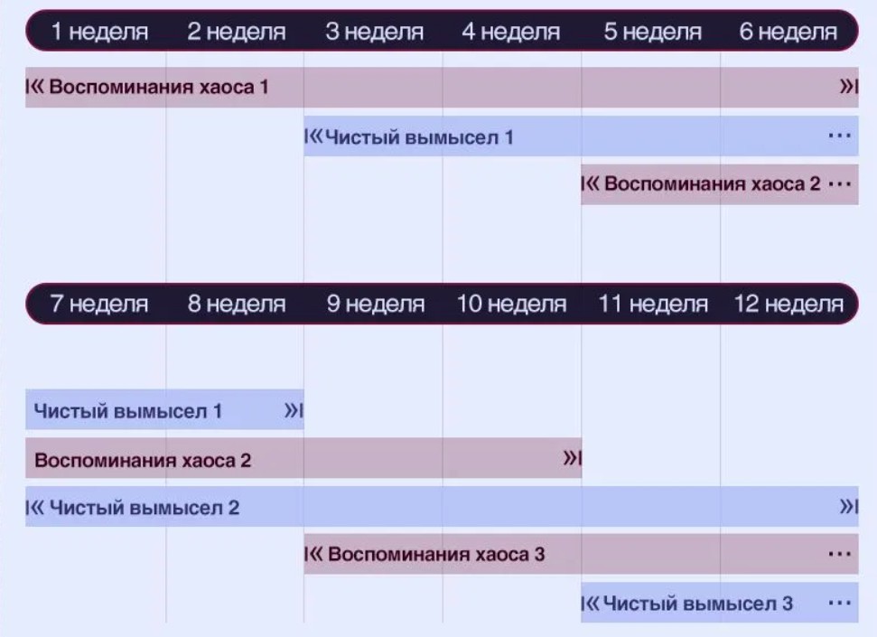 Длительность каждой фазы Воспоминаний хаоса вырастет до шести недель. На схеме это выглядит так.