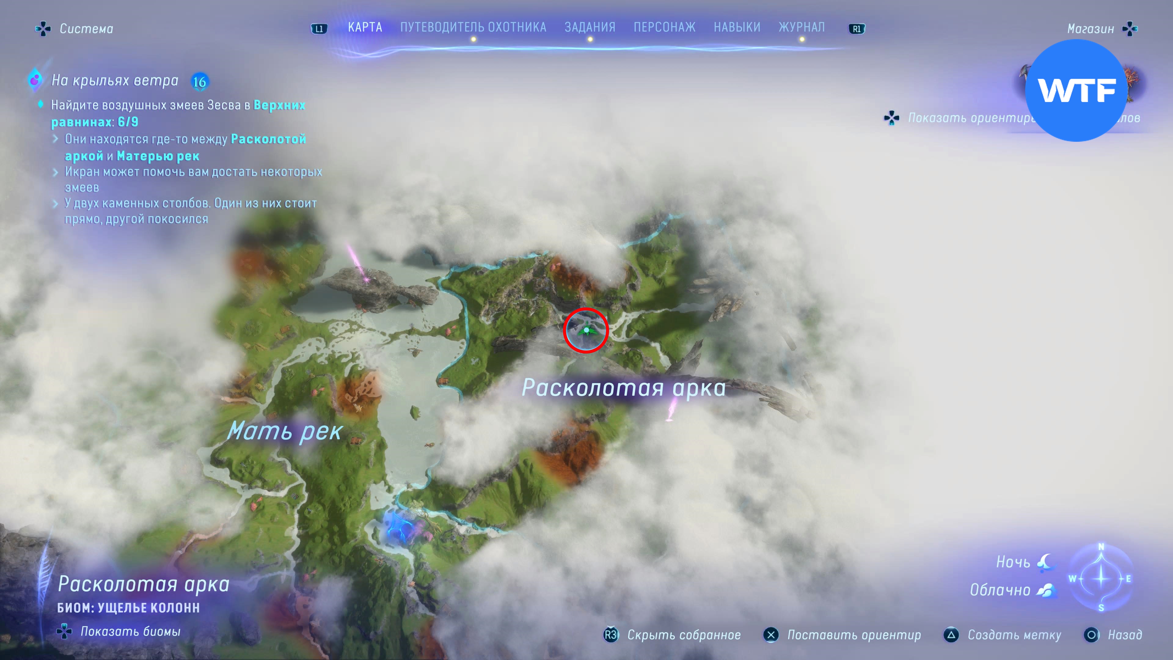 Все девять змеев привязаны на вершинах где-то между Расколотой аркой и Матерью рек. Чтобы до них добраться, используйте своего икрана. Их местоположение не отмечено на карте, но по мере приближения к цели в квестовом журнале будут всплывать дополнительные подсказки.