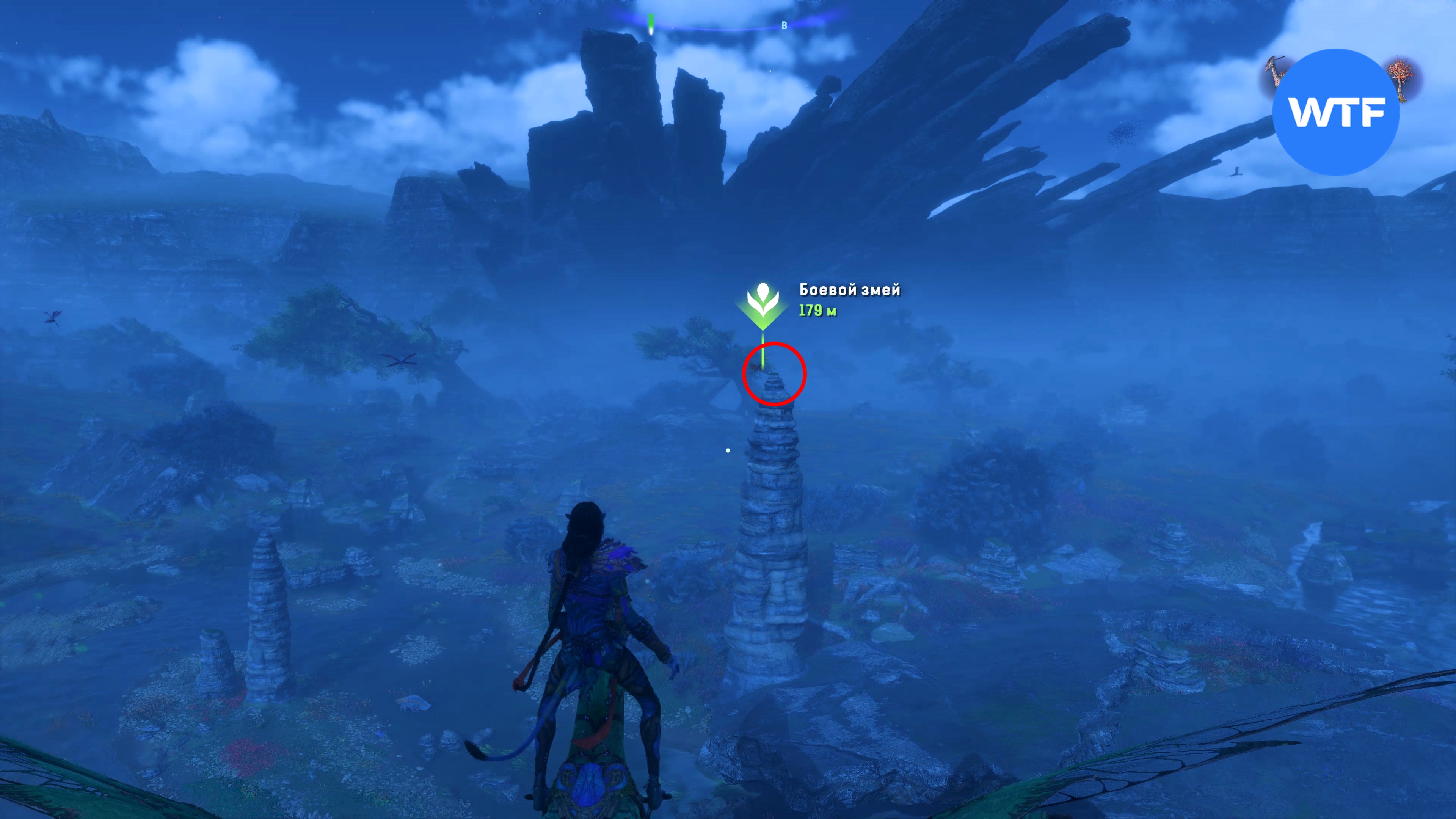 От поваленного дерева летите на юг и найдете предупреждающего змея на вершите разрушенной каменной арки. Чтобы было проще сориентироваться, посмотрите как выглядит ваша цель на скриншоте 3 в галерее ниже.