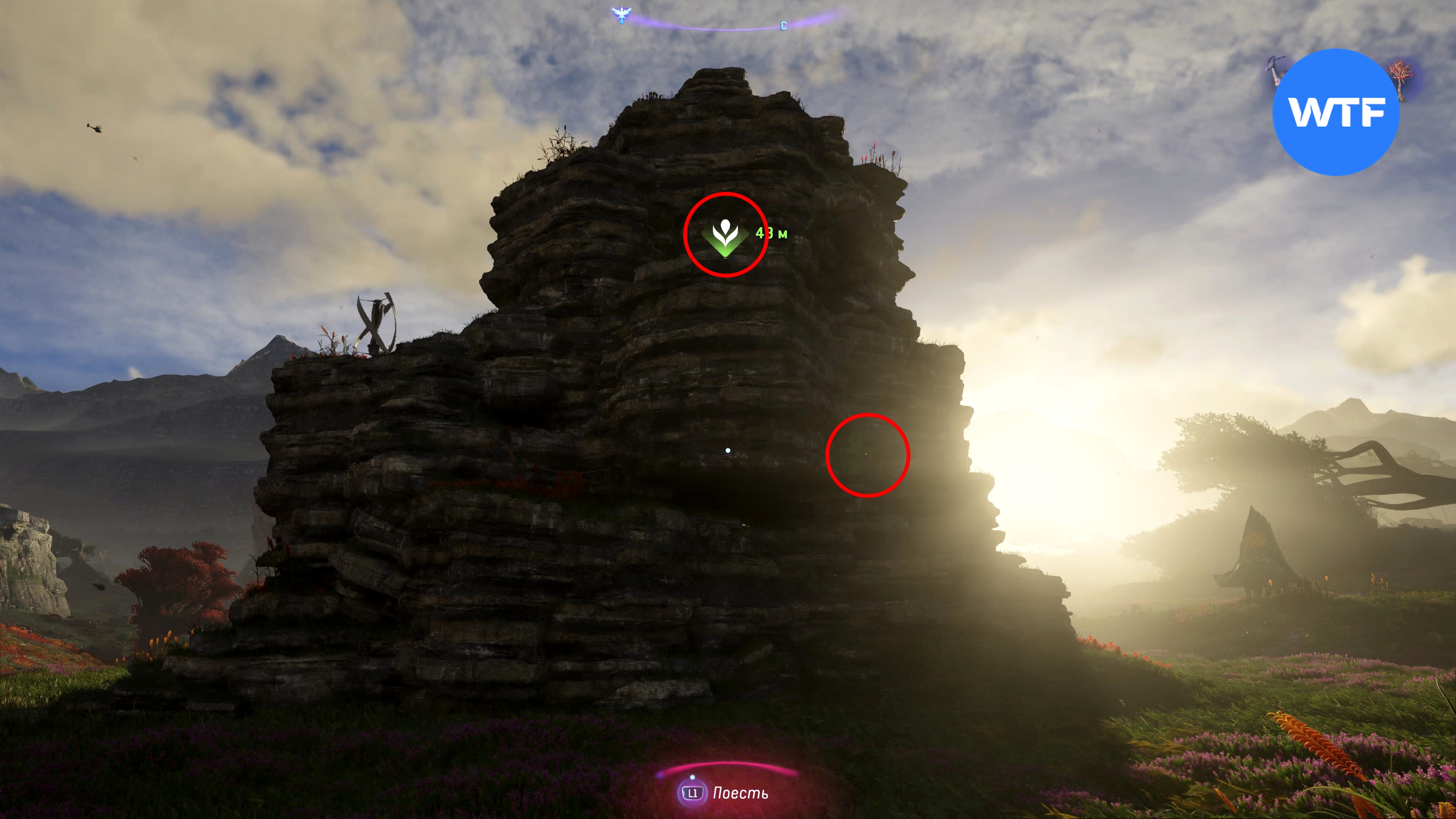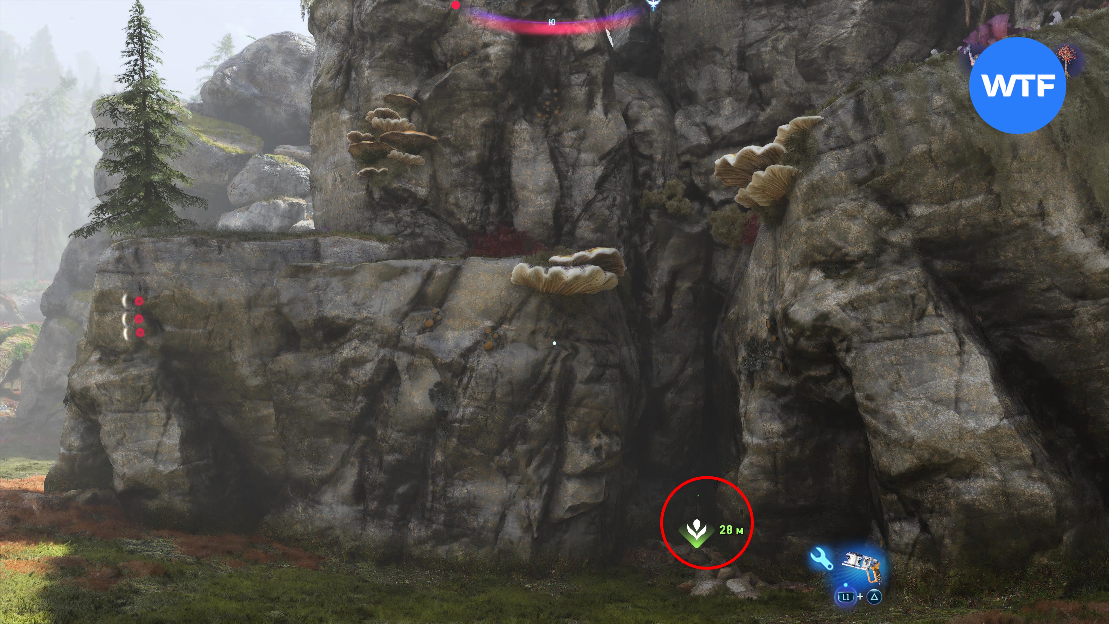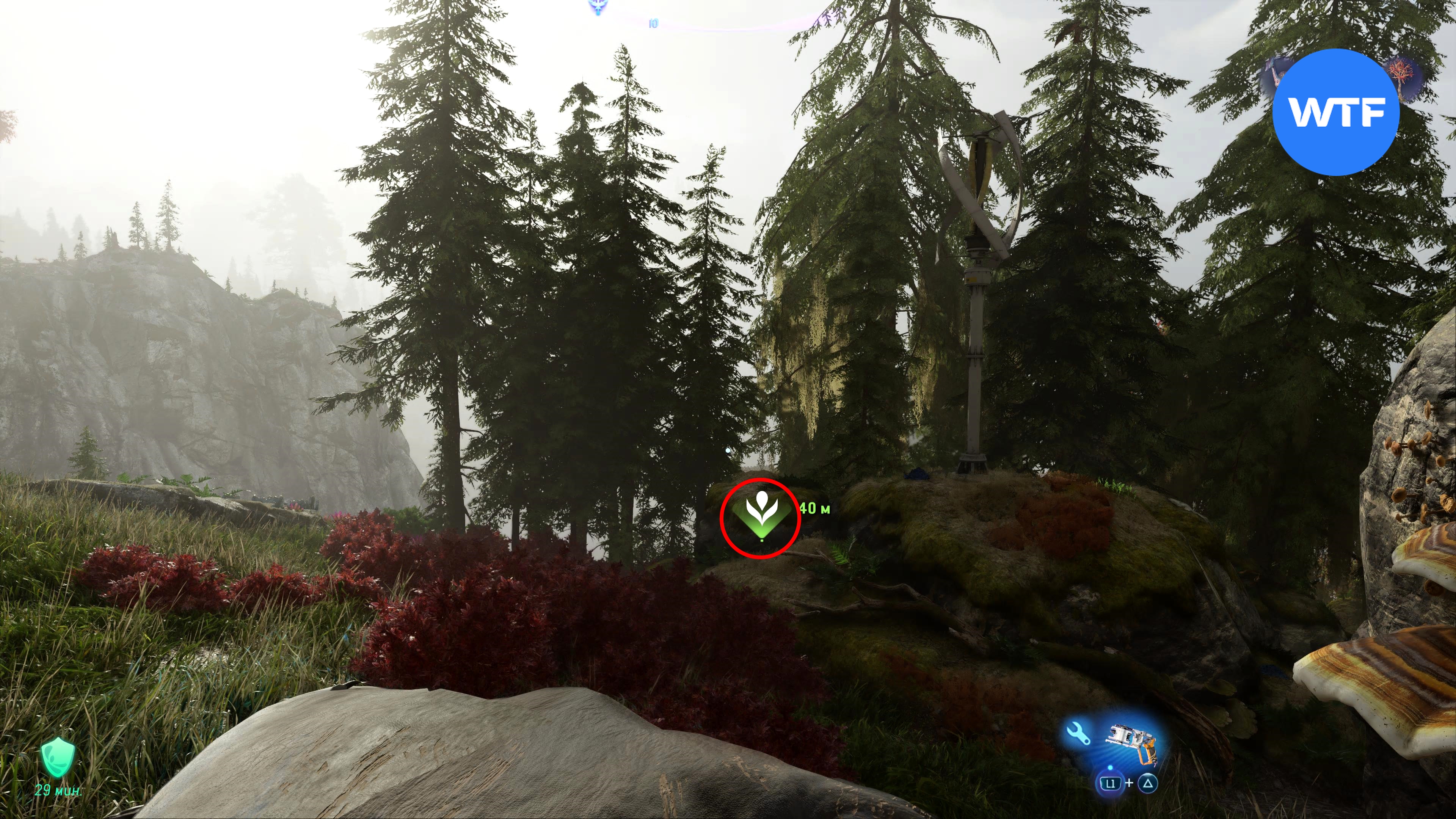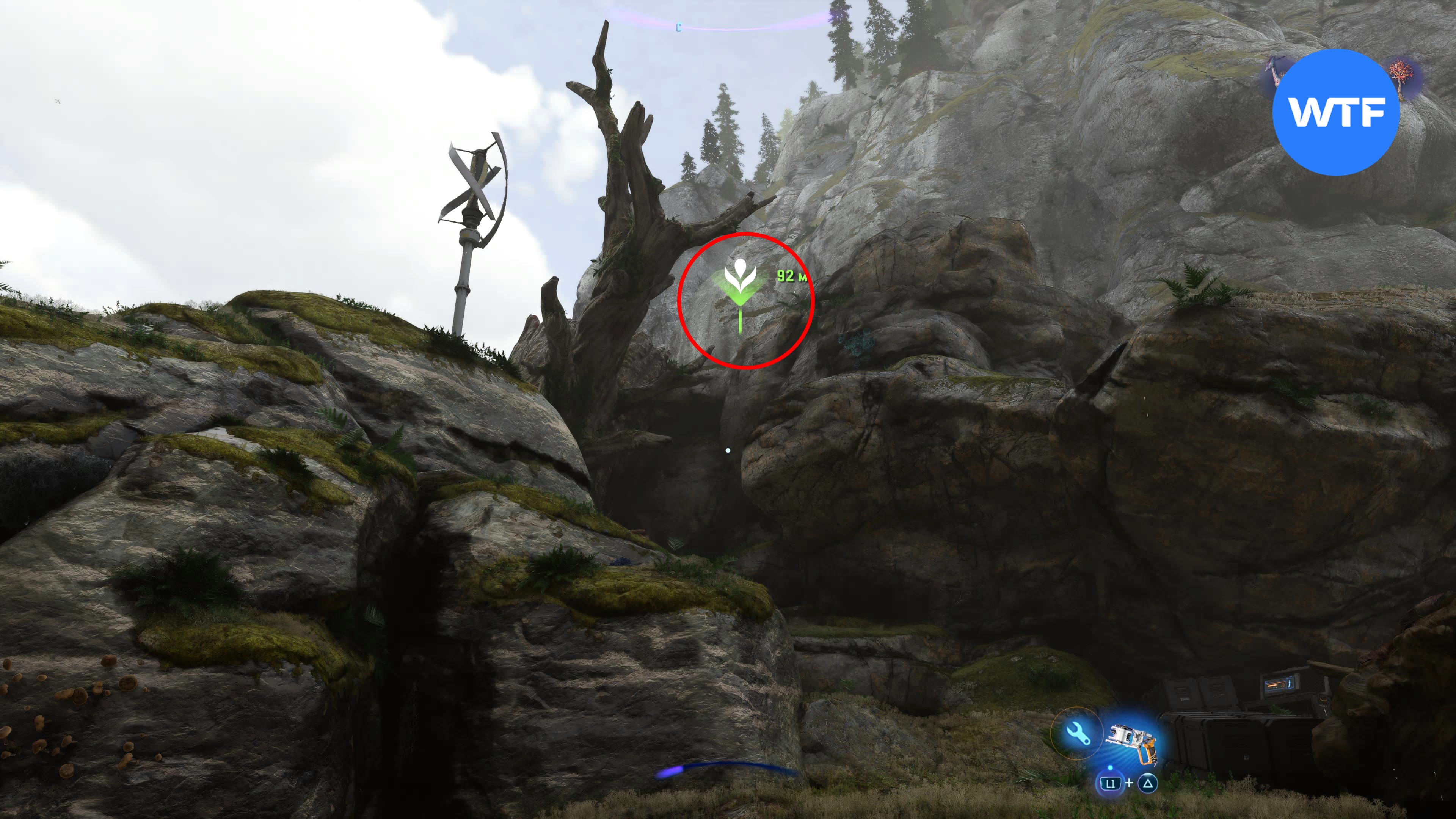 Чтобы найти первый датчик, станьте спиной к терминалу и бегите вперед. У ветряка поверните направо и увидите свою цель за высокой скалой. Продолжайте двигаться в этом направлении, чтобы дойти до следующей скалы, возле которой растет наклоненное дерево.
