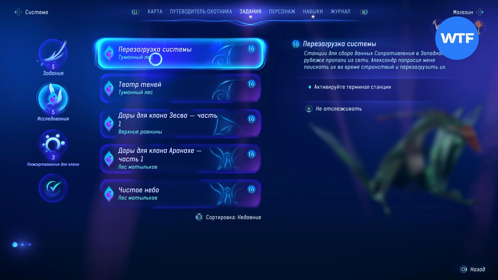 - «Перезагрузка системы» в Avatar Frontiers of Pandora