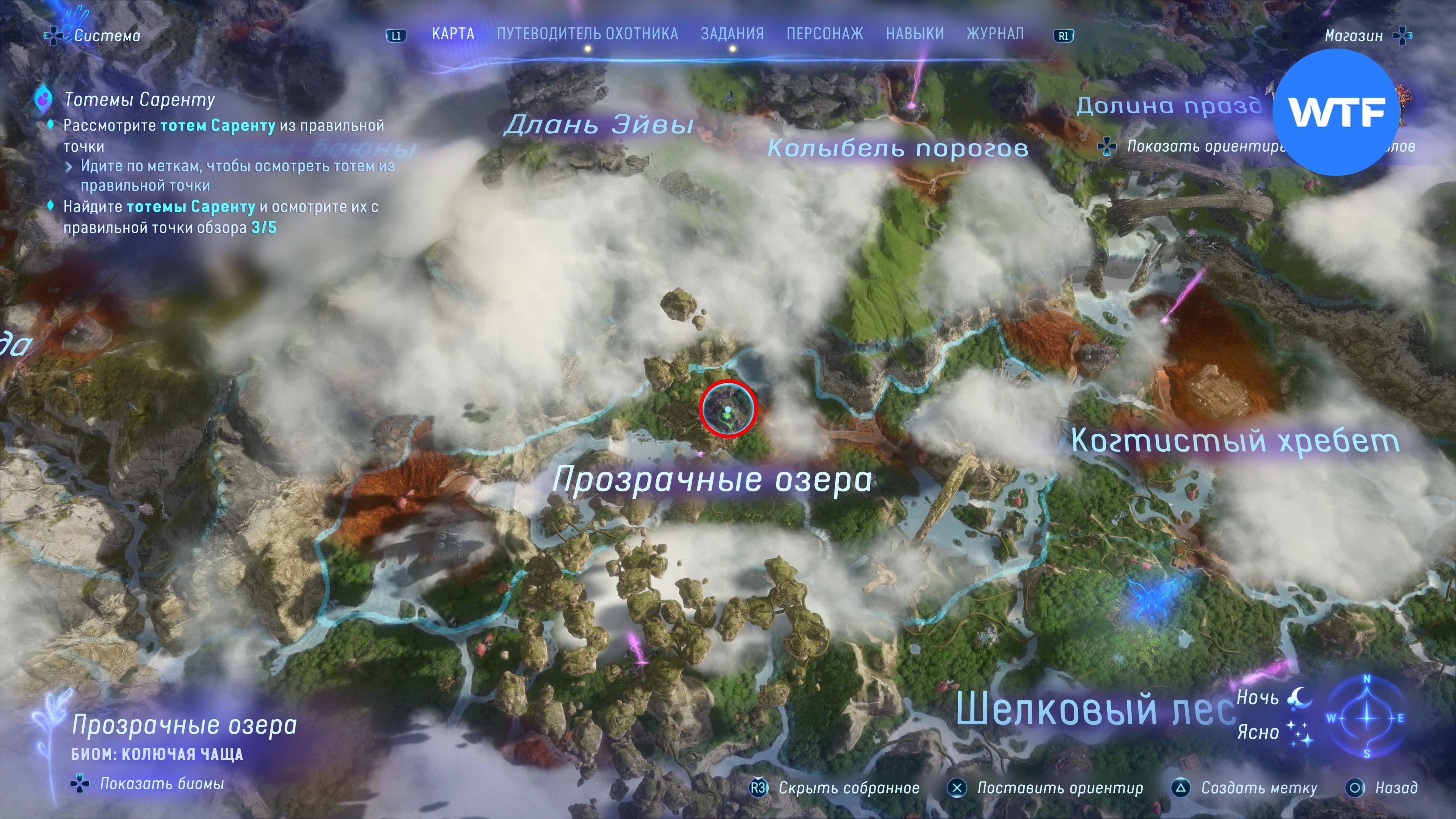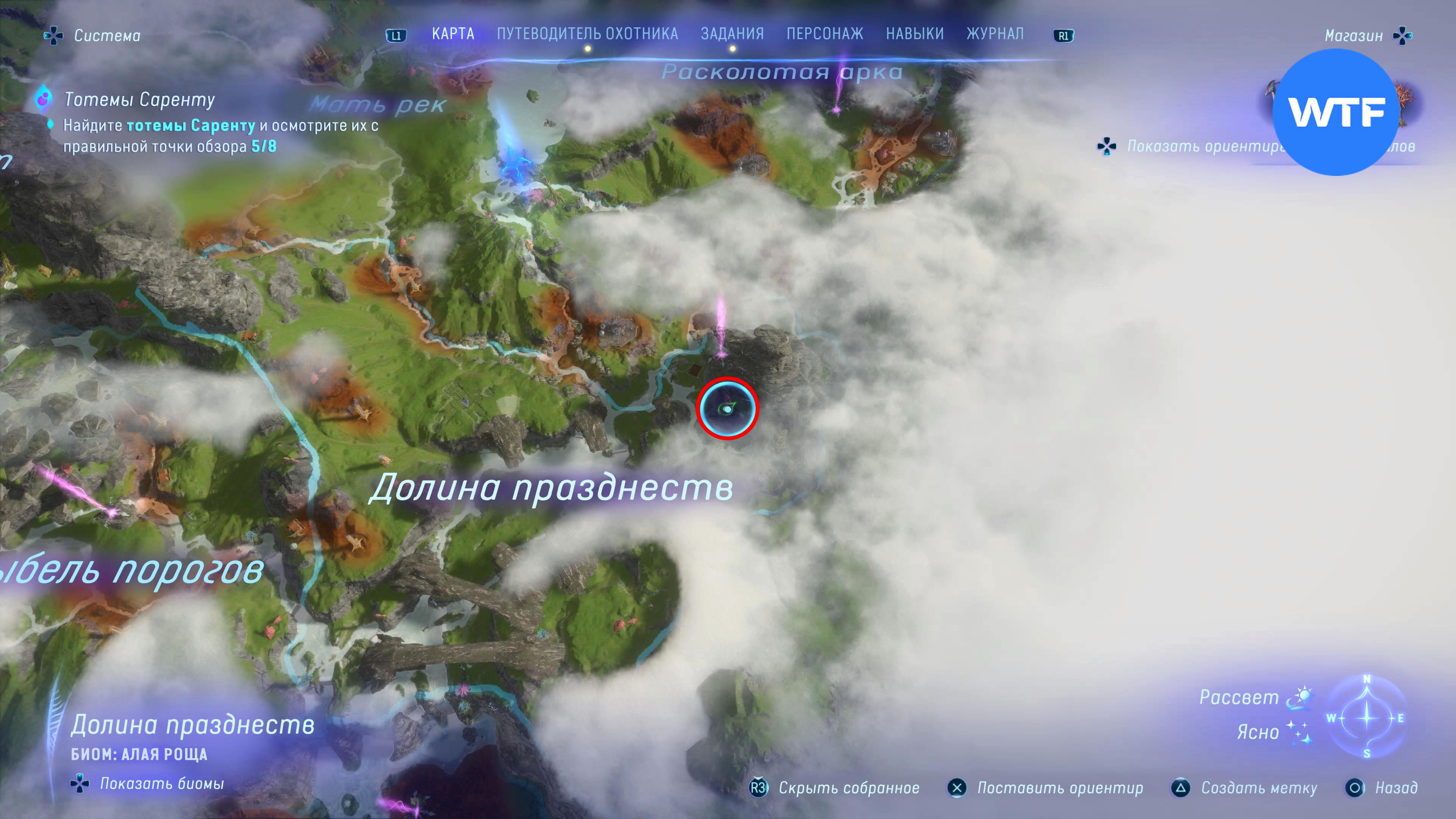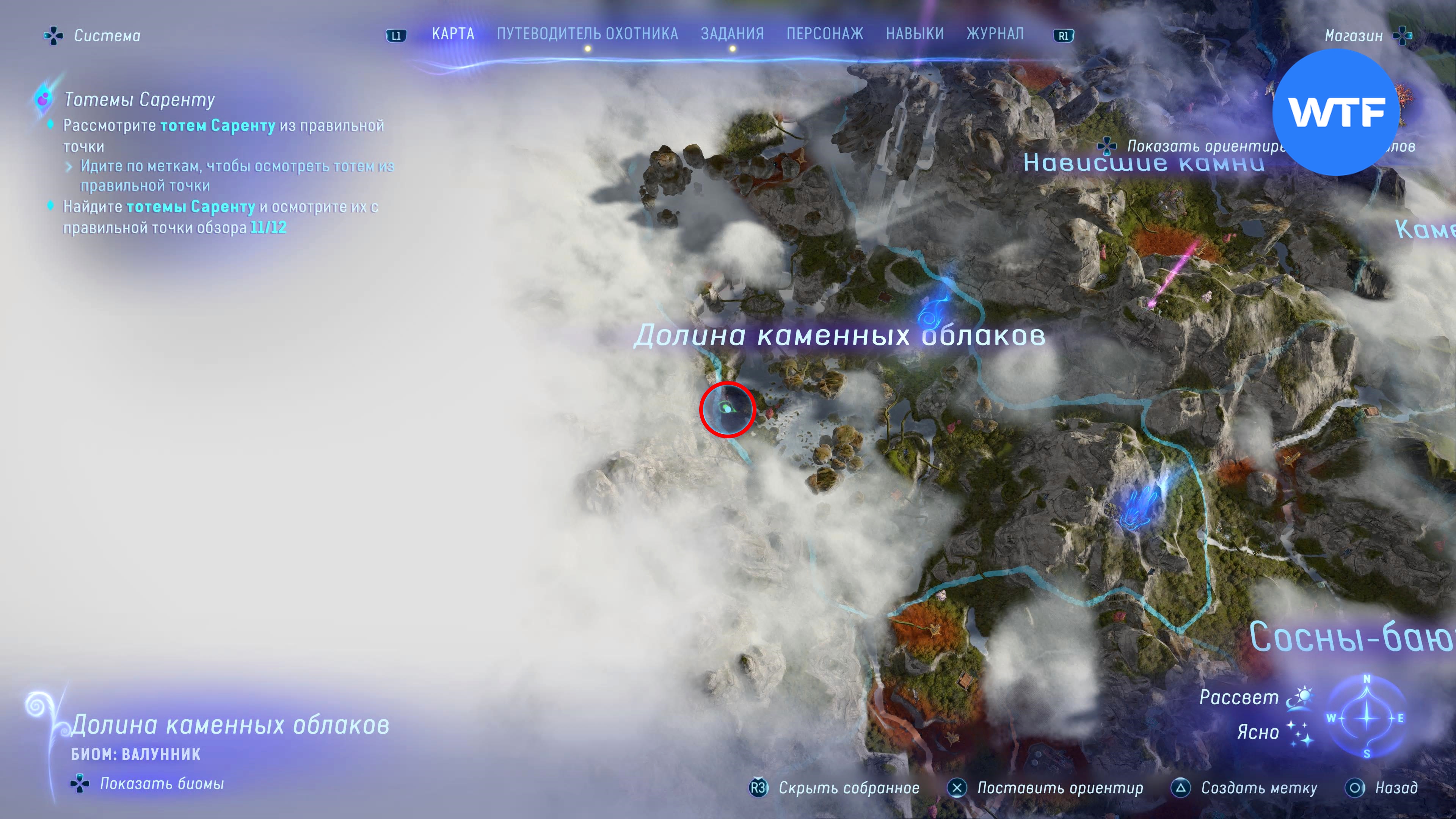 Тотемы Саренту отмечаются на вашей игровой карте, когда вы пролетаете достаточно близко. Для удобства ниже мы будем отдельно показывать, где найти сам тотем, а также точку обзора для него.