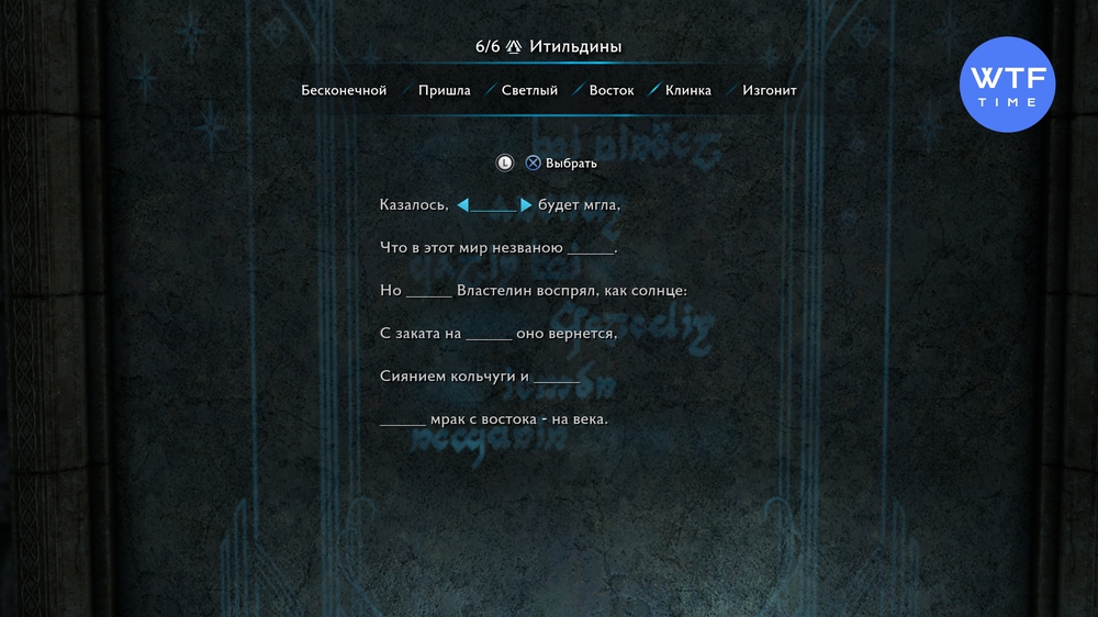 - Кирит-Унгол. Слова в этом стихе необходимо расставить в следующем порядке: Бесконечной / Пришла / Светлый / Восток / Клинка / Изгонит.