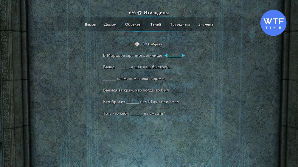 Первым делом захватите все Хэдиры. Отметьте расположение итильдинов и могильников, после чего приступайте к поискам. Каждая находка даст вам недостающие слова, которые нужно расставить в правильном порядке на двери. Если со стихами у вас отношения сложные, воспользуйтесь нашим гайдом. За каждую загадку вы получите легендарное снаряжение из комплекта Светлого Властелина.
