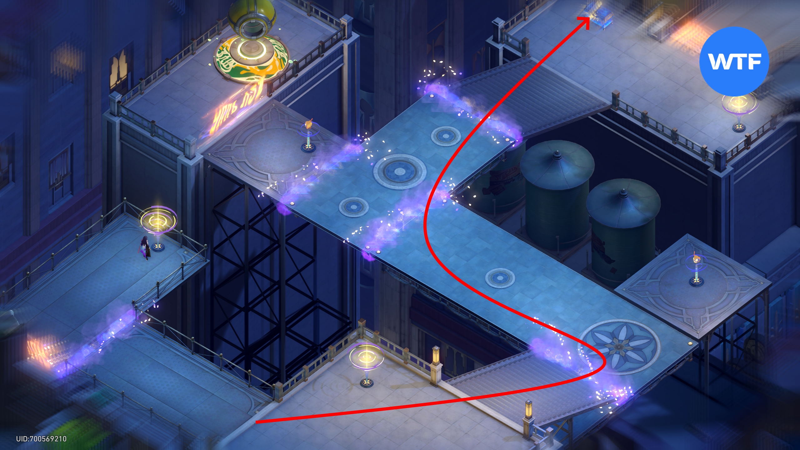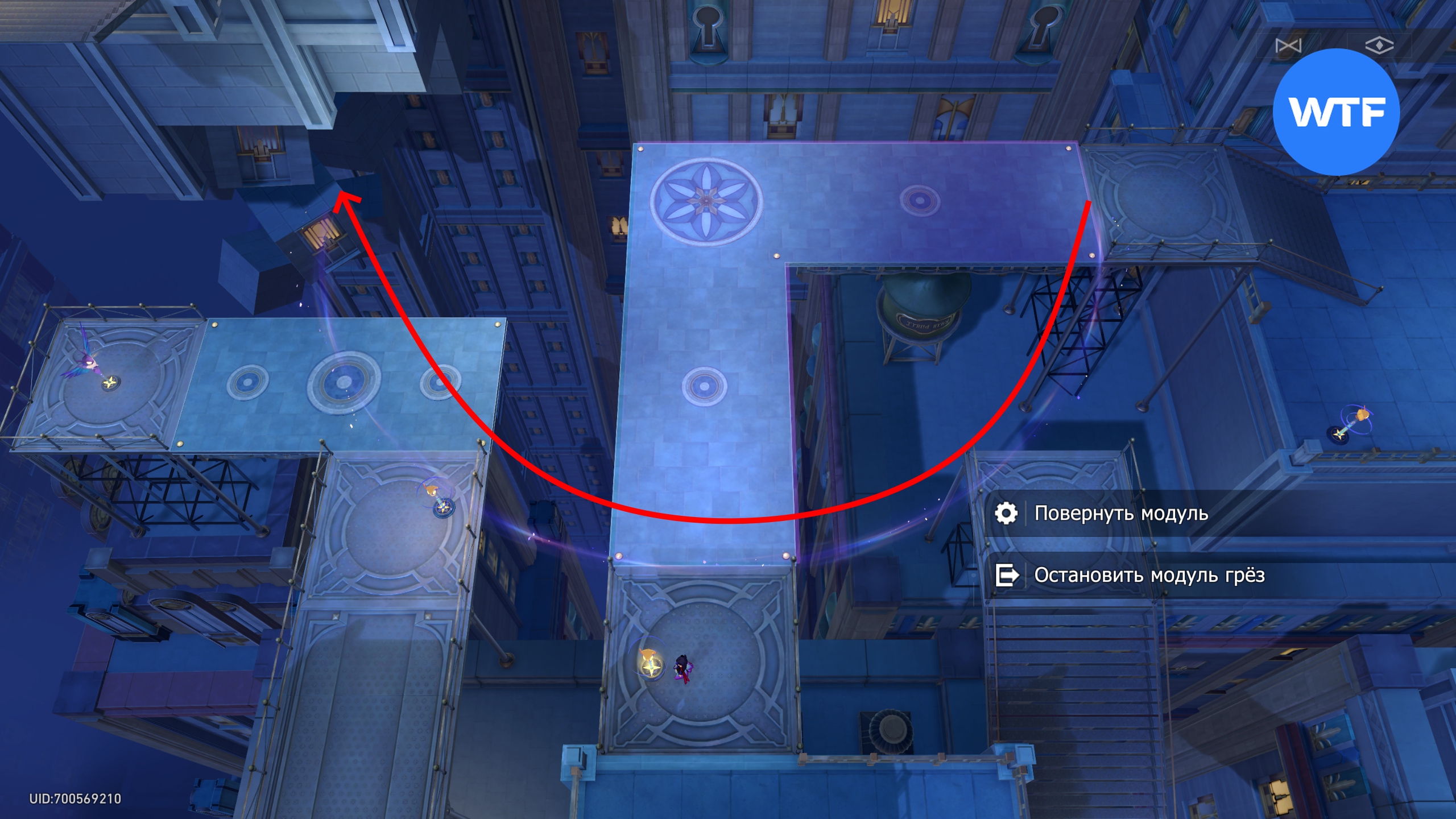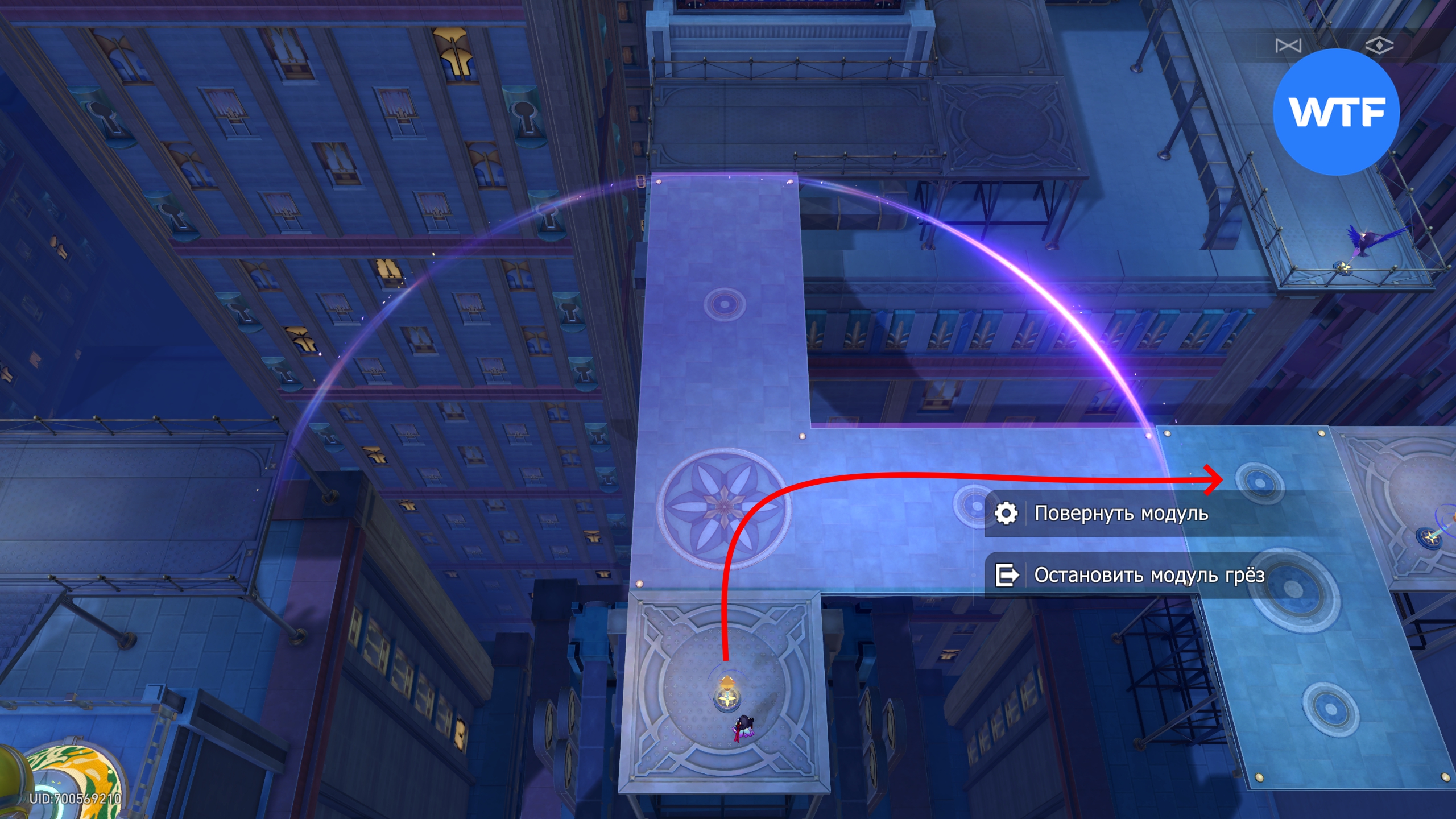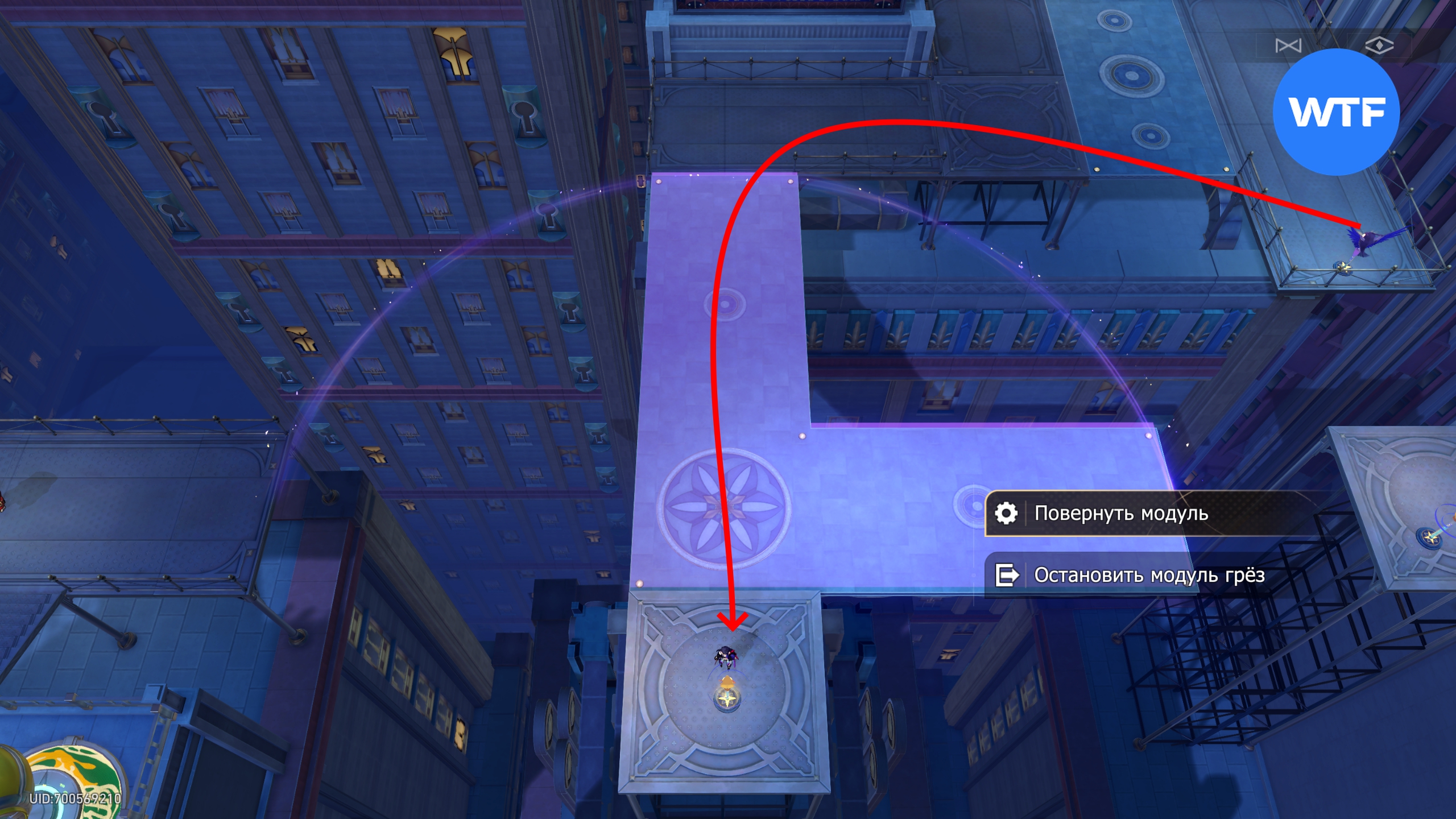 От предыдущего сундука бегите в модулю грез, показанному на втором скриншоте ниже и поверните г-образную платформу влево. Затем воспользуйтесь сферометом, чтобы добраться до следующего сундука. Верная траектория показана на третьем скриншоте.