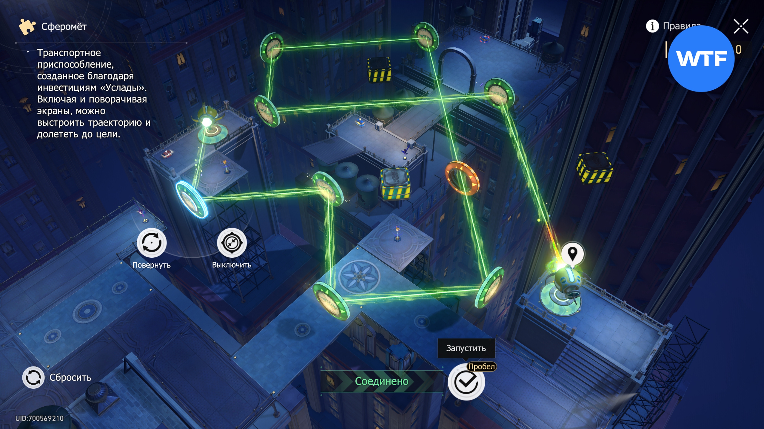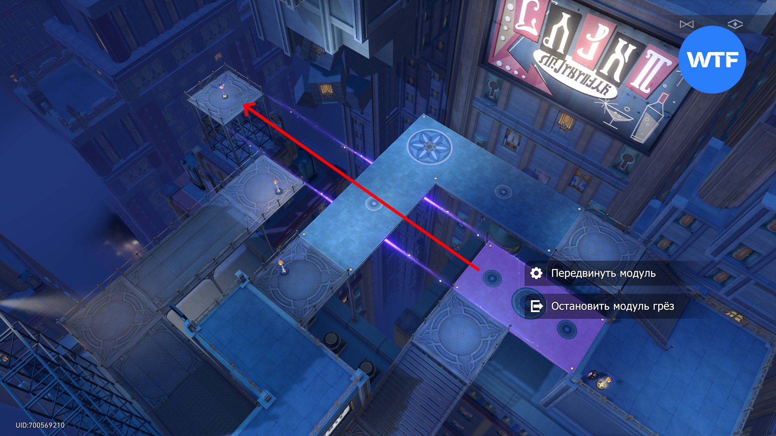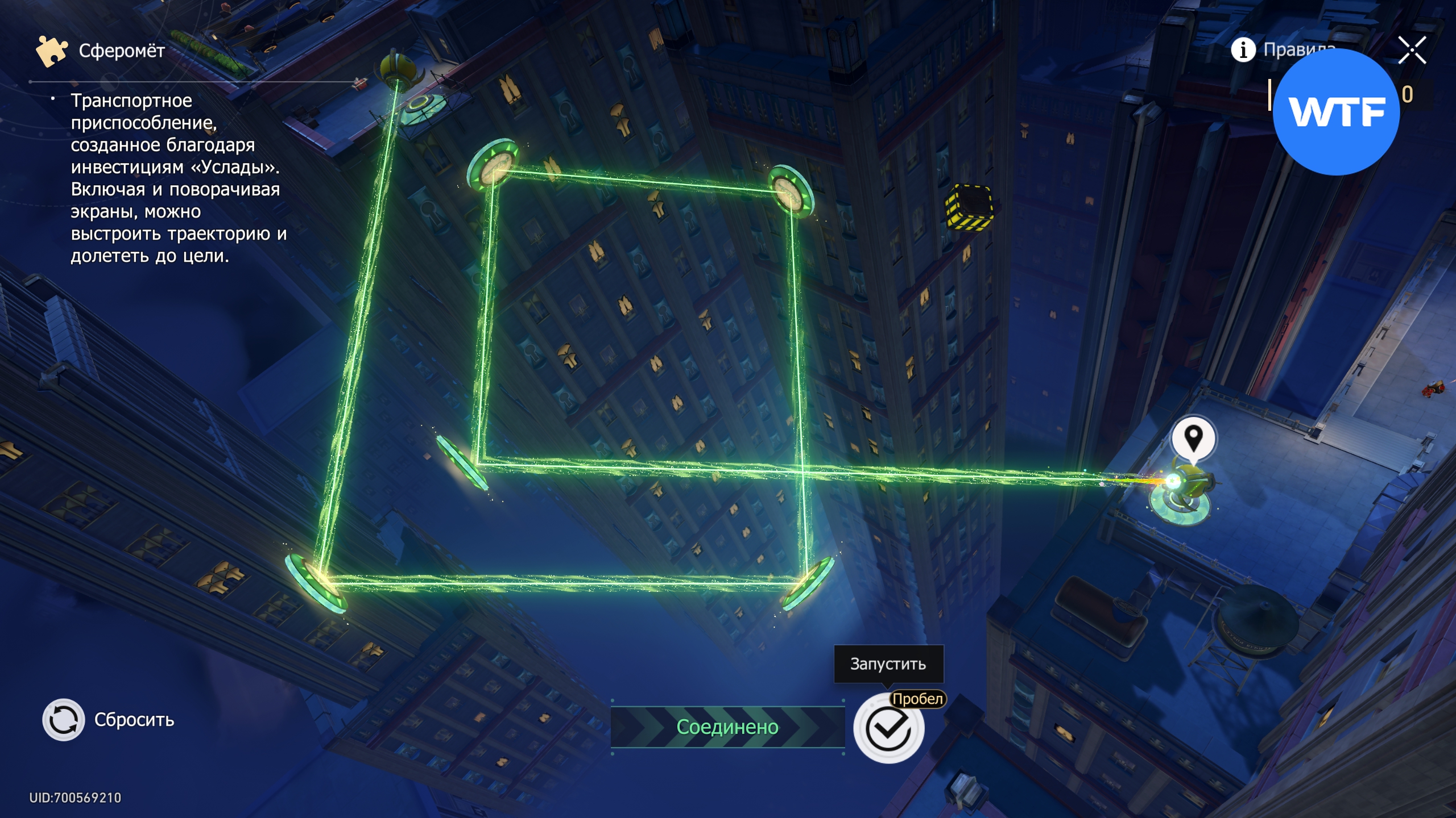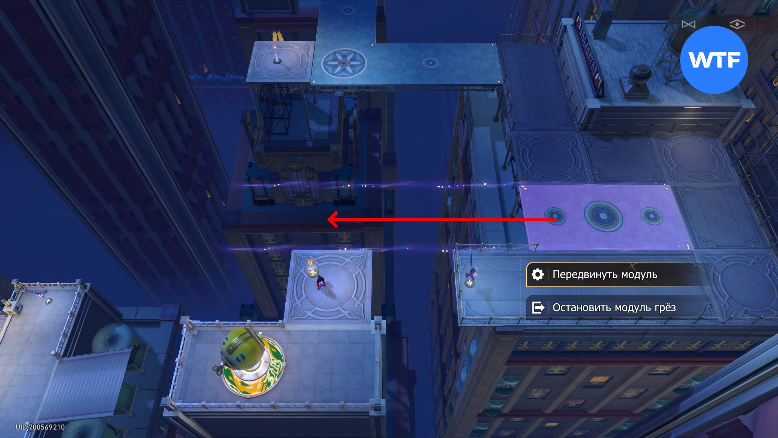 Используйте модуль грез возле сферомета, чтобы передвинуть платформу влево. Затем воспользуйтесь самим сферометом, чтобы вернуться назад. Используйте следующий модуль грез и поверните г-образную платформу вправо.