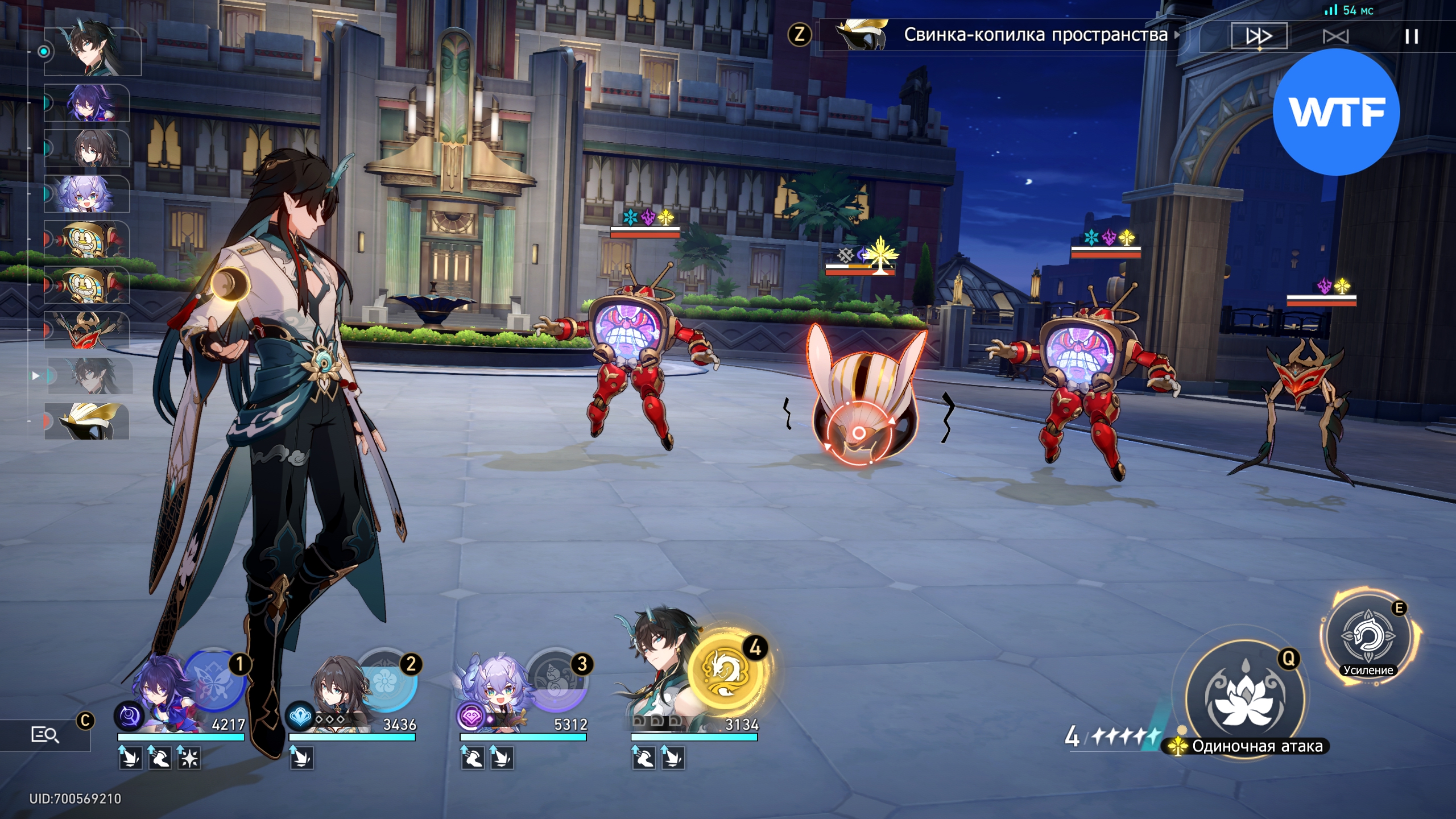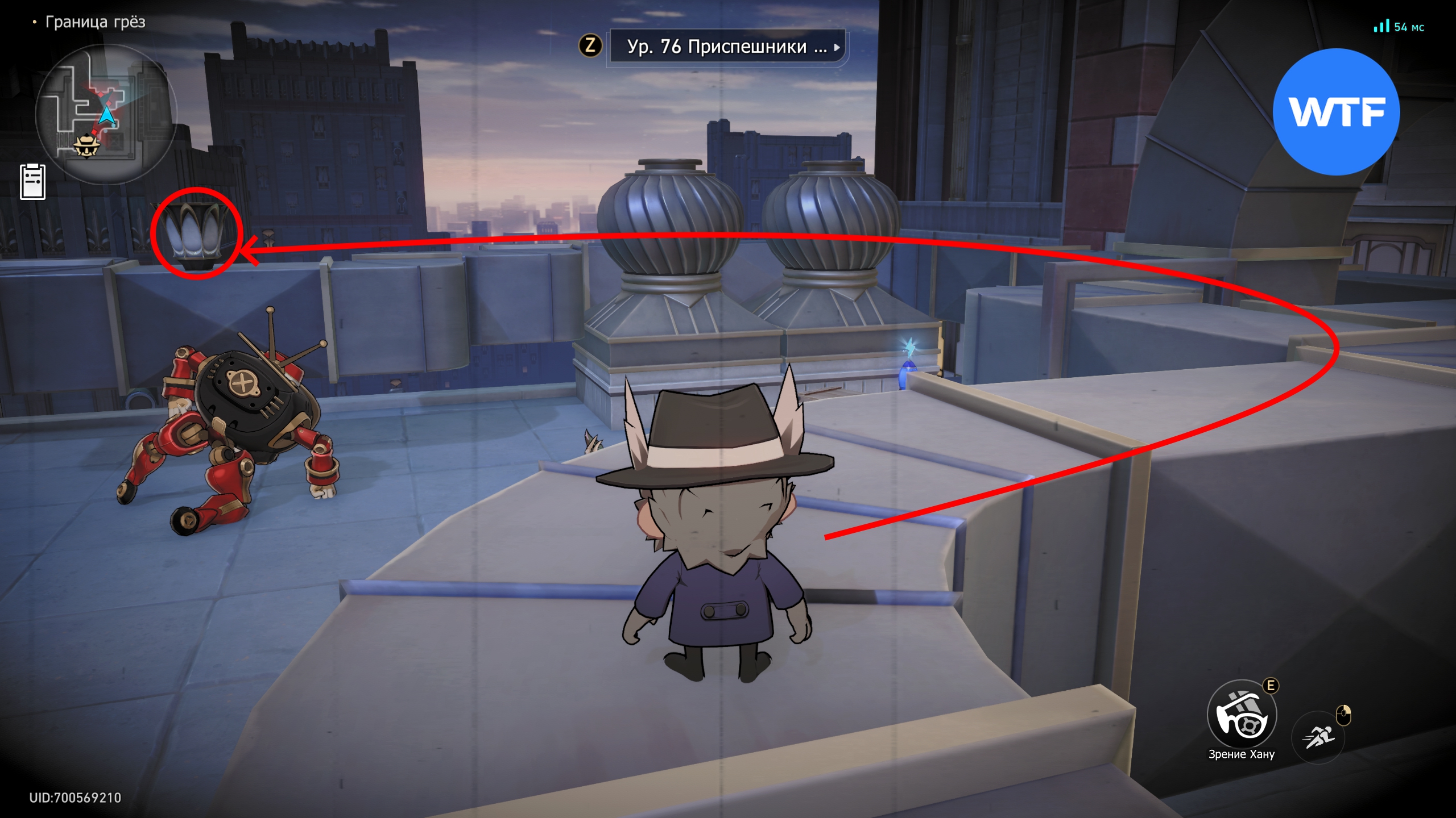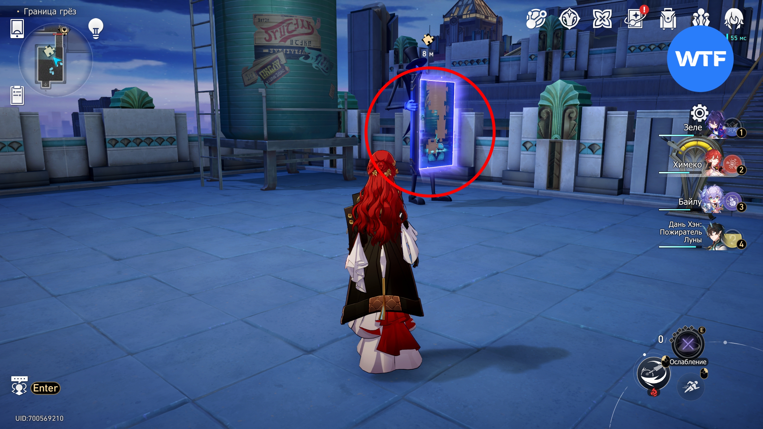 Если подняться по лестнице чуть западнее предыдущего бака и ходиков, то можно найти там свинку-копилку пространства. Она уязвима к физическому, ментальному и квантовому урону, так что берите в отряд соответствующих персонажей.