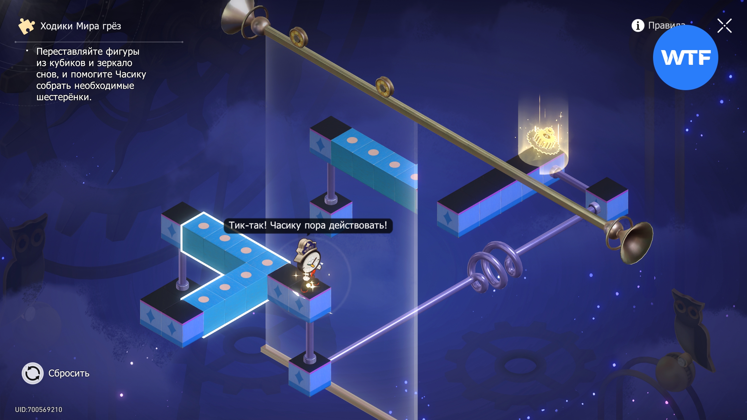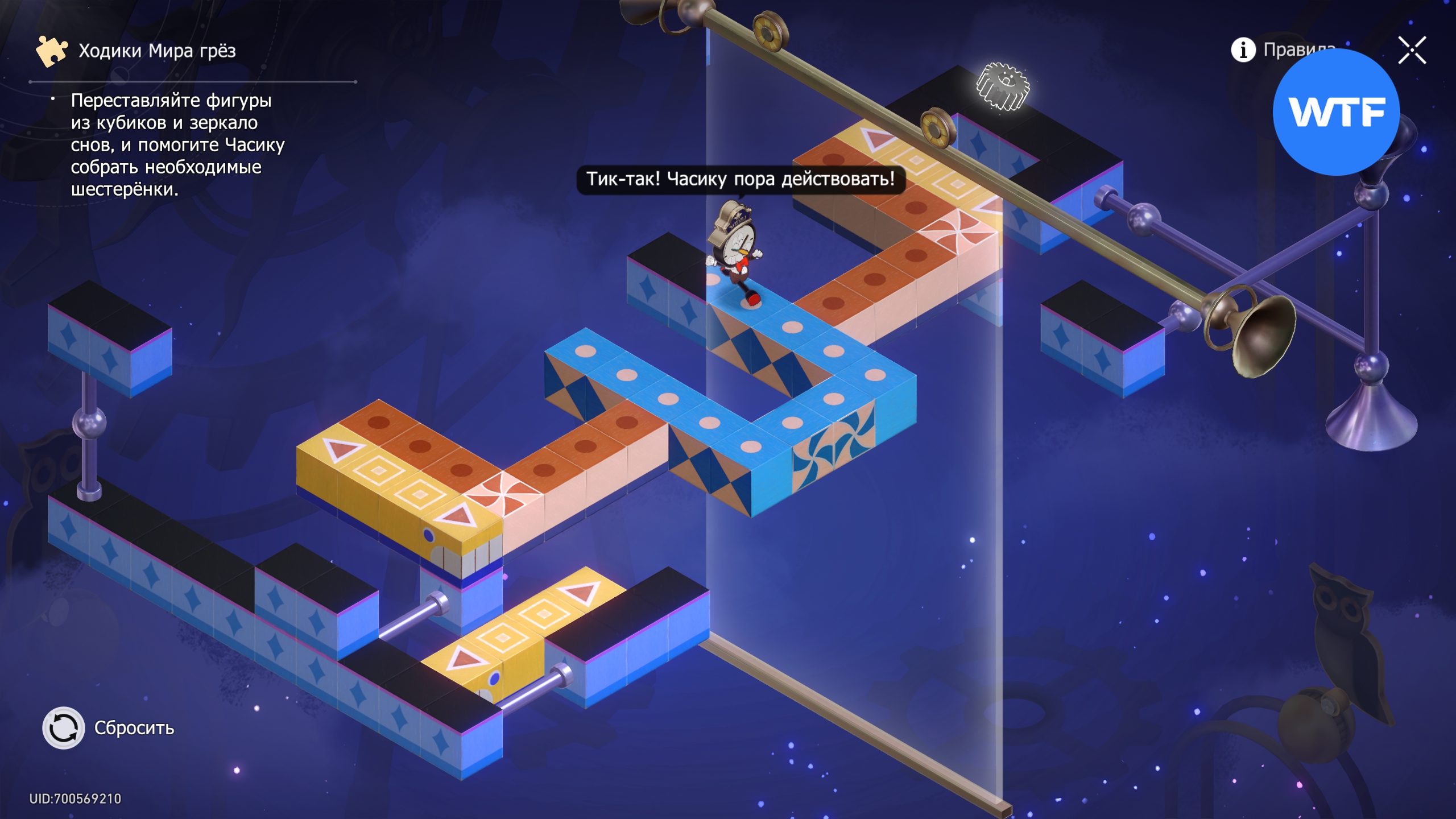 Воспользуйтесь модулем грез возле предыдущего сундука, чтобы передвинуть платформу и добраться до Ходиков Мира Грёз, которые необходимо отремонтировать (см. скриншот 2).