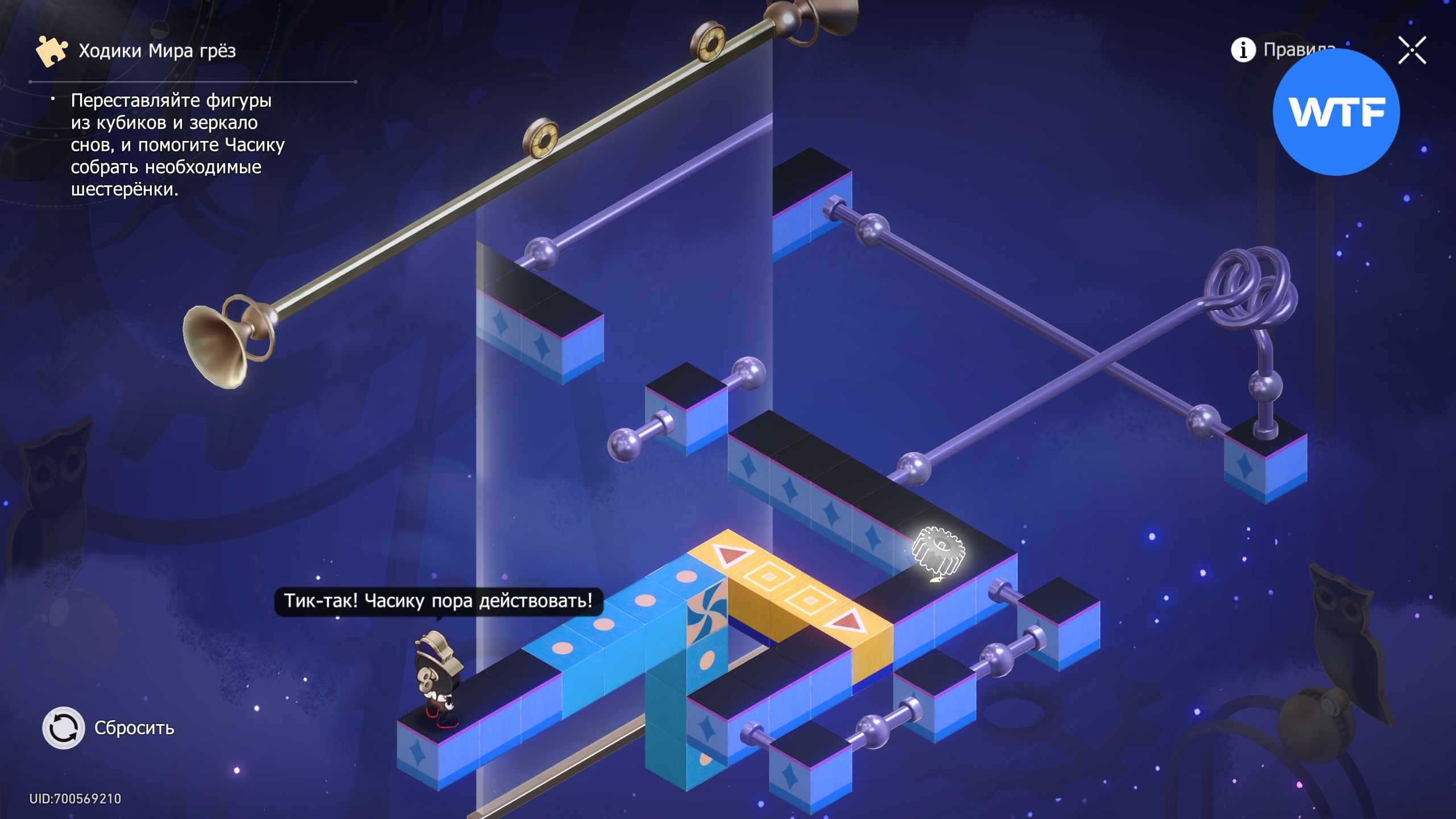 От предыдущих Ходиков вернитесь назад, использовав по пути два модуля грез, чтобы передвинуть прямоугольную и г-образную платформы (скриншоты 2-3). После этого откройте око грез и сможете добраться до ценного сундука на другой стороне.