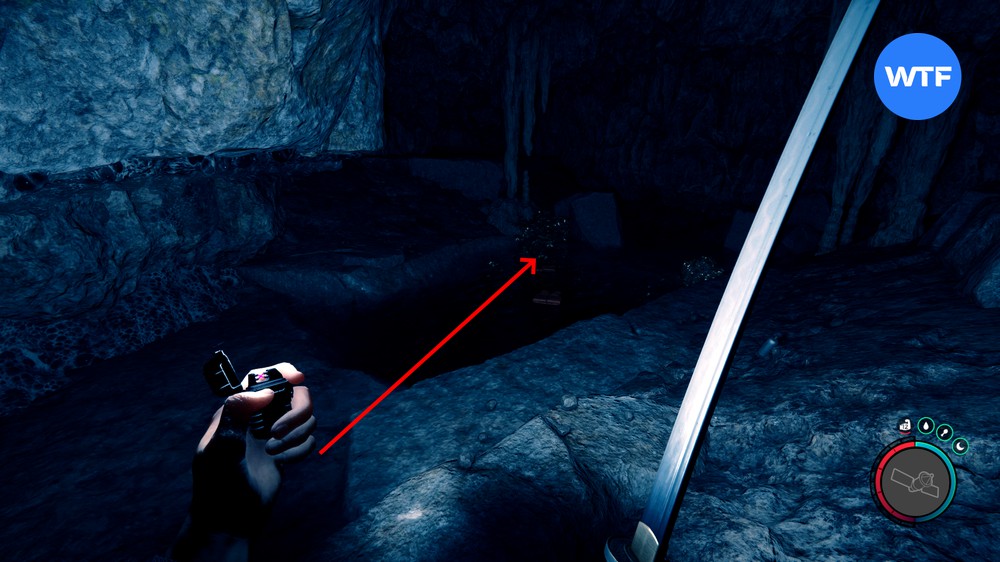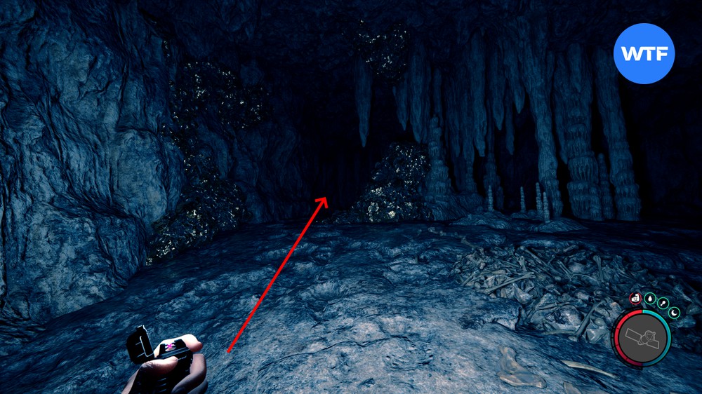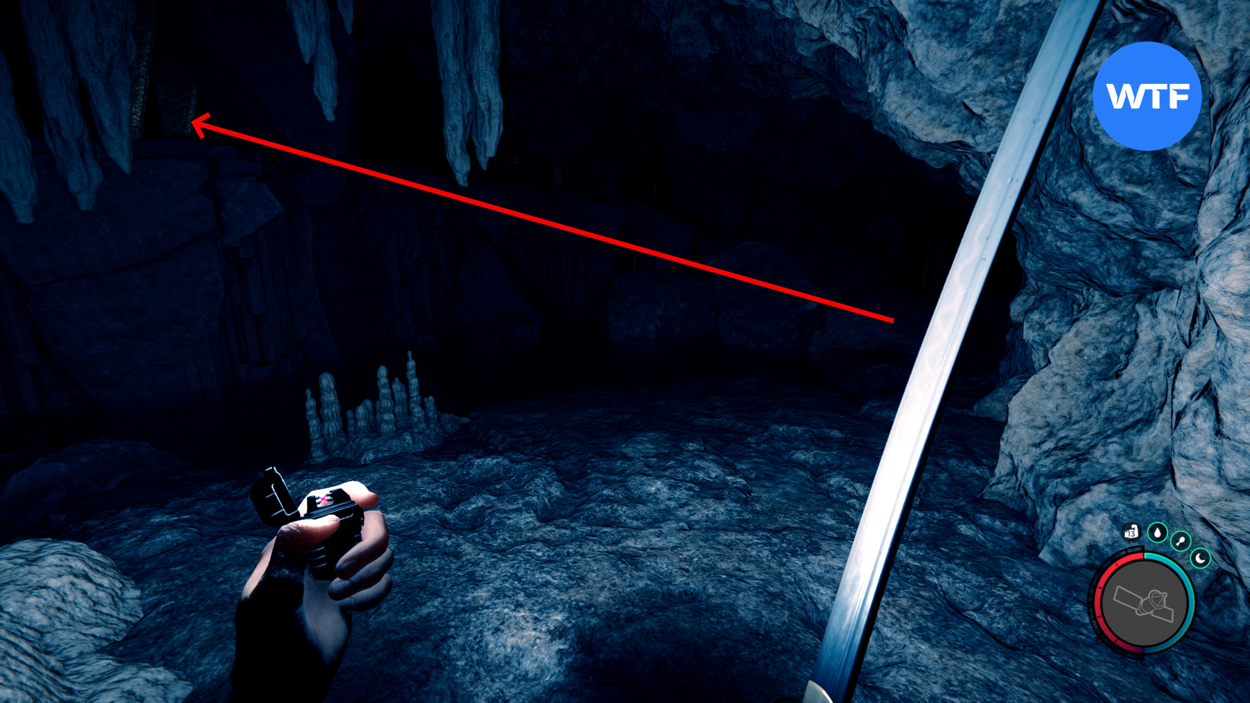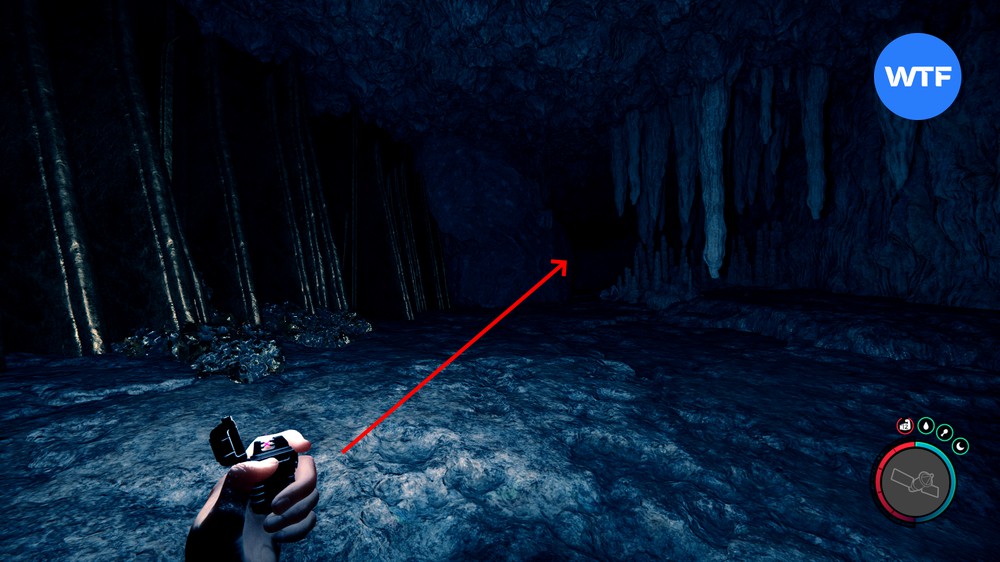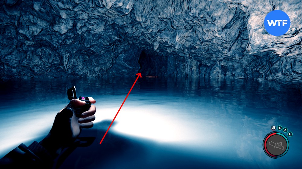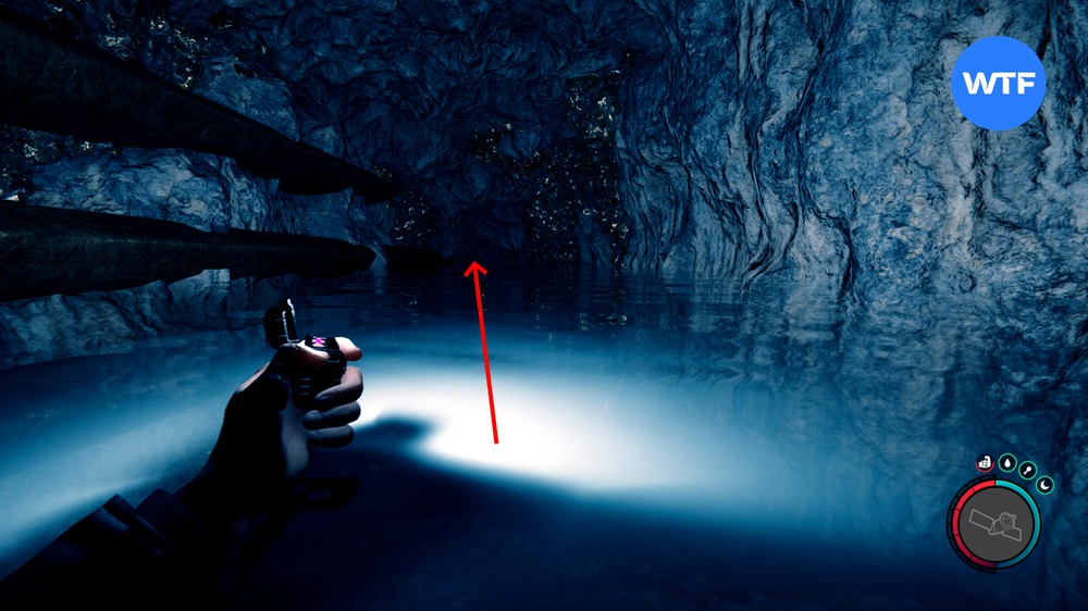 Зайдя в пещеру, ныряйте и плывите вперед по единственно возможному пути, чтобы попасть в скрытую часть локации.
