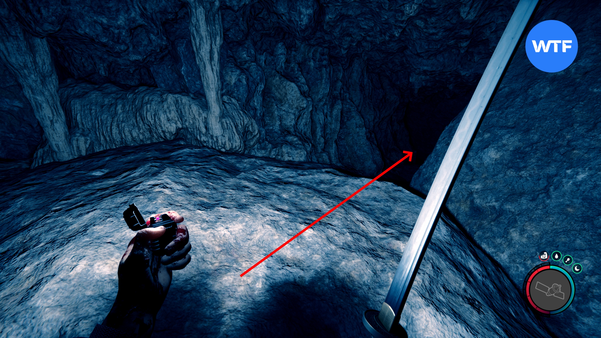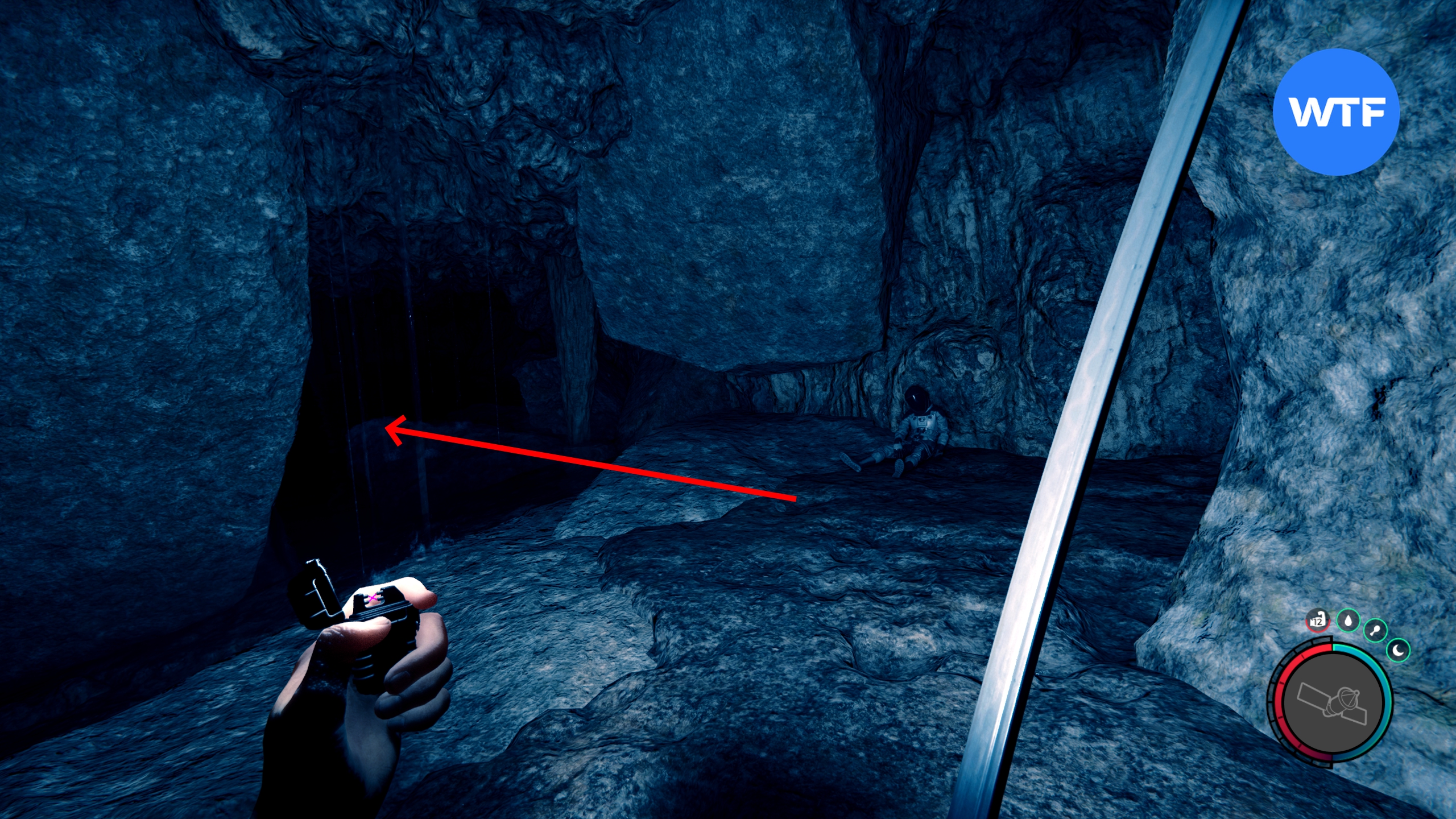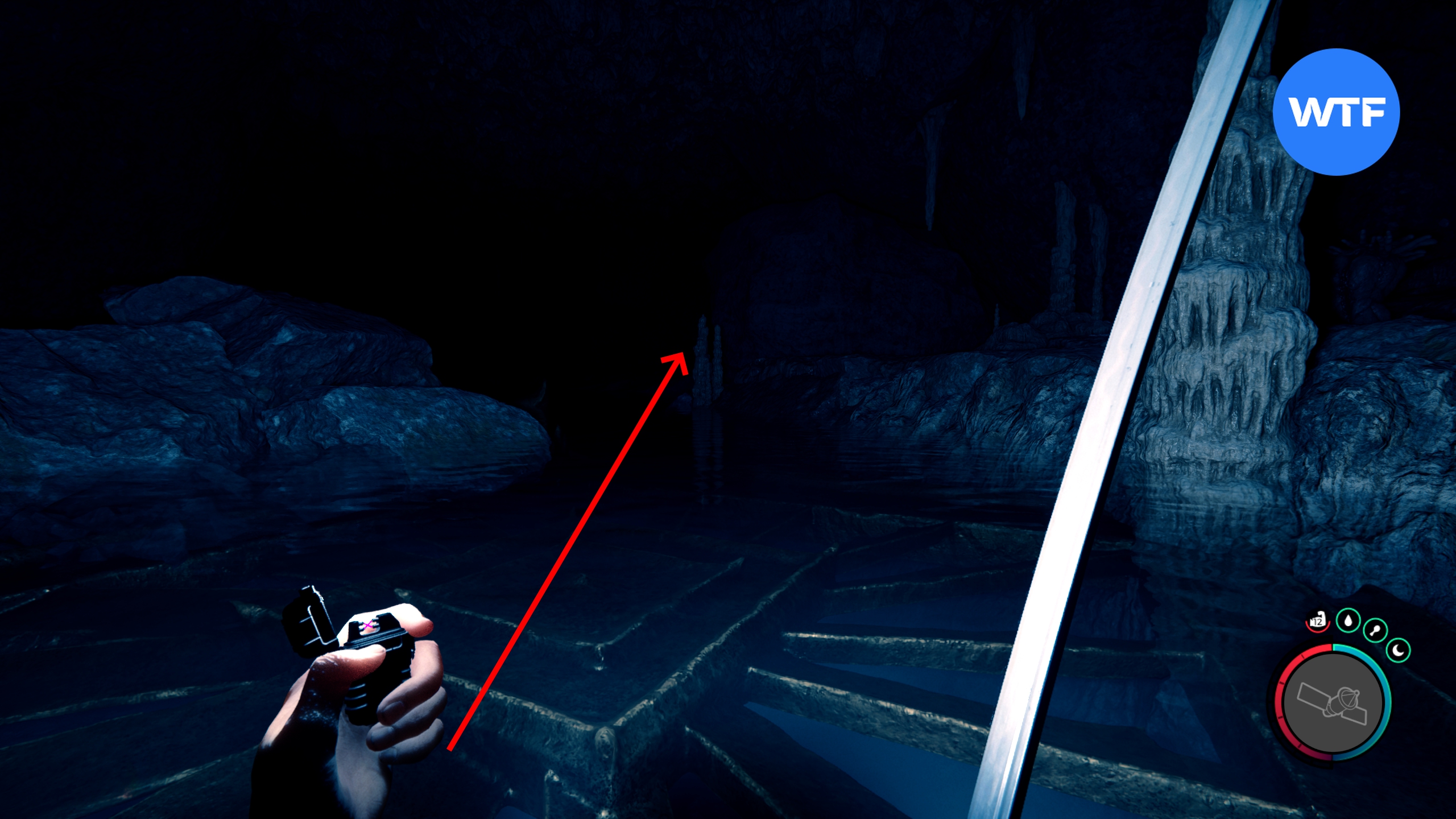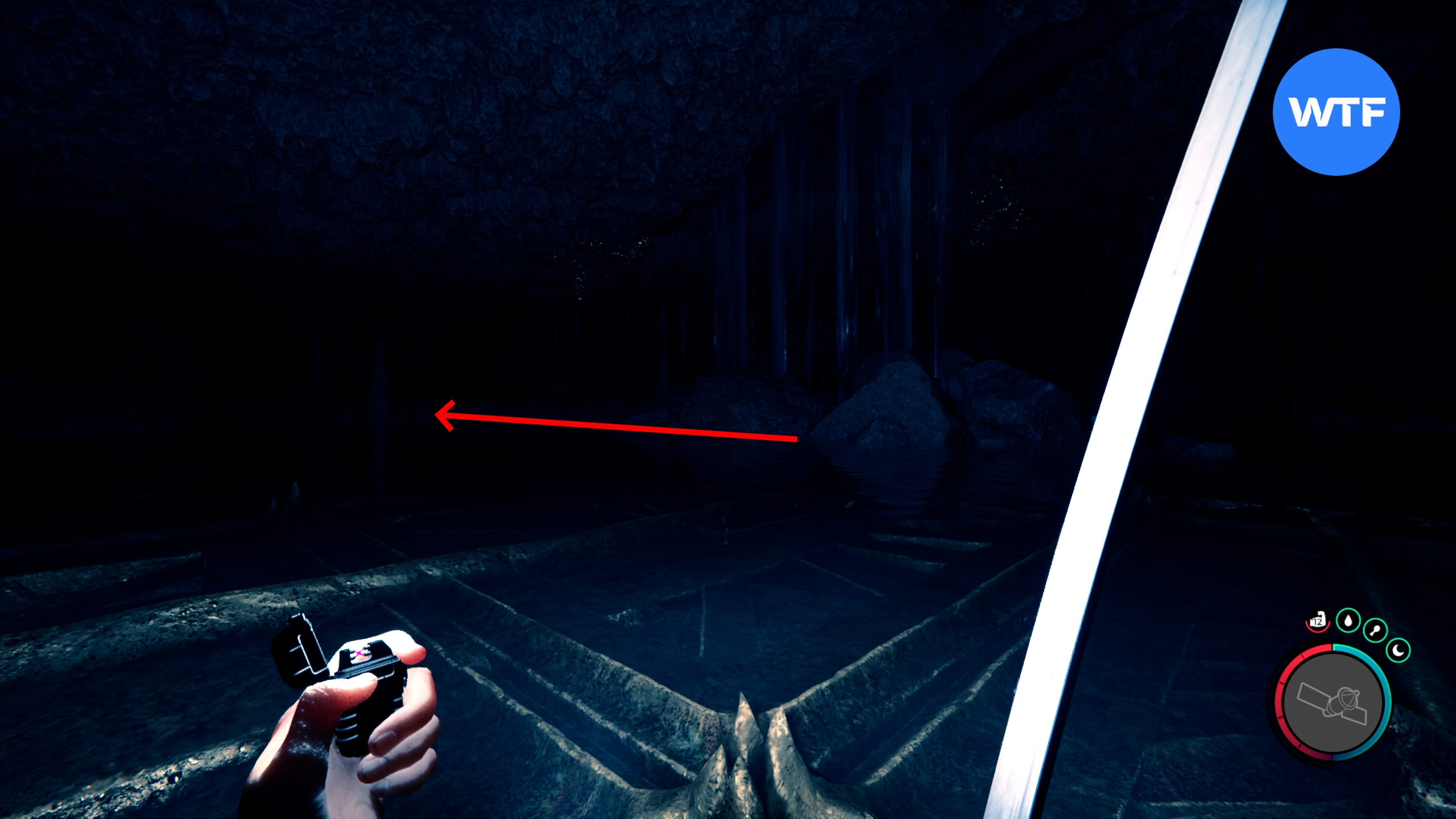 Зайдя в пещеру, ныряйте и плывите вперед по единственно возможному пути, чтобы попасть в скрытую часть локации.