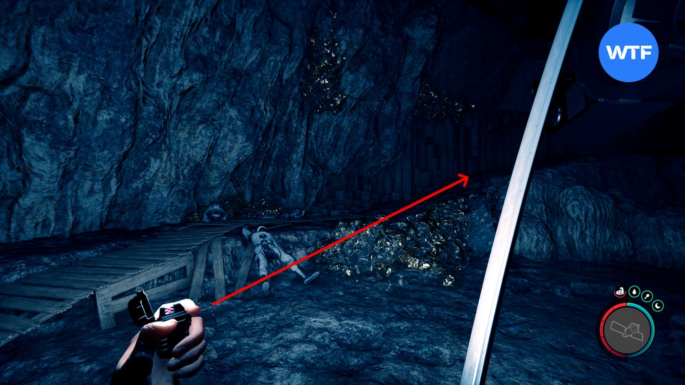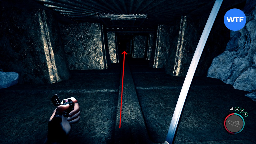 Сломайте доски и идите вперед по тоннелю с крестами. Затем на развилке поверните направо и поднимитесь вверх по камням. Там вы сможете забрать еще один артефакт.