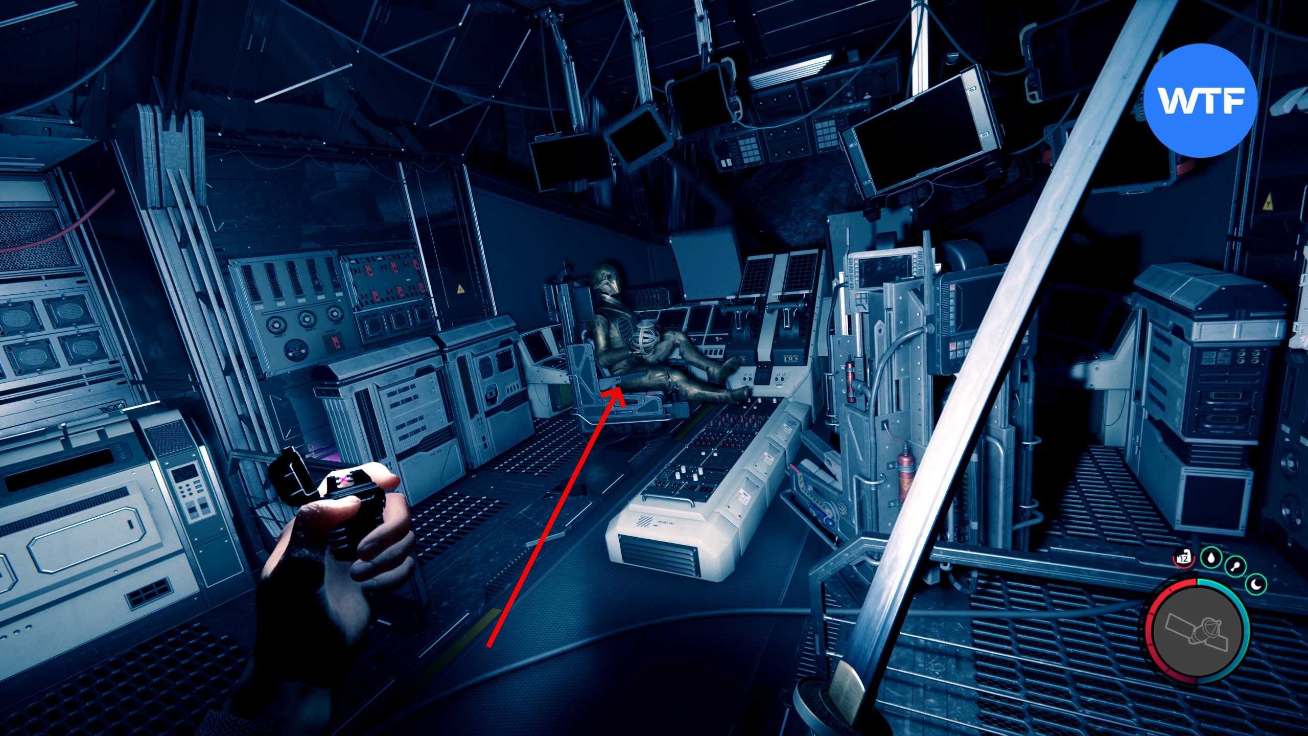 После выхода из тоннеля на развилке вам нужно пойти направо, а затем у тела мертвого космонавта спуститься в воду и плыть вперед.