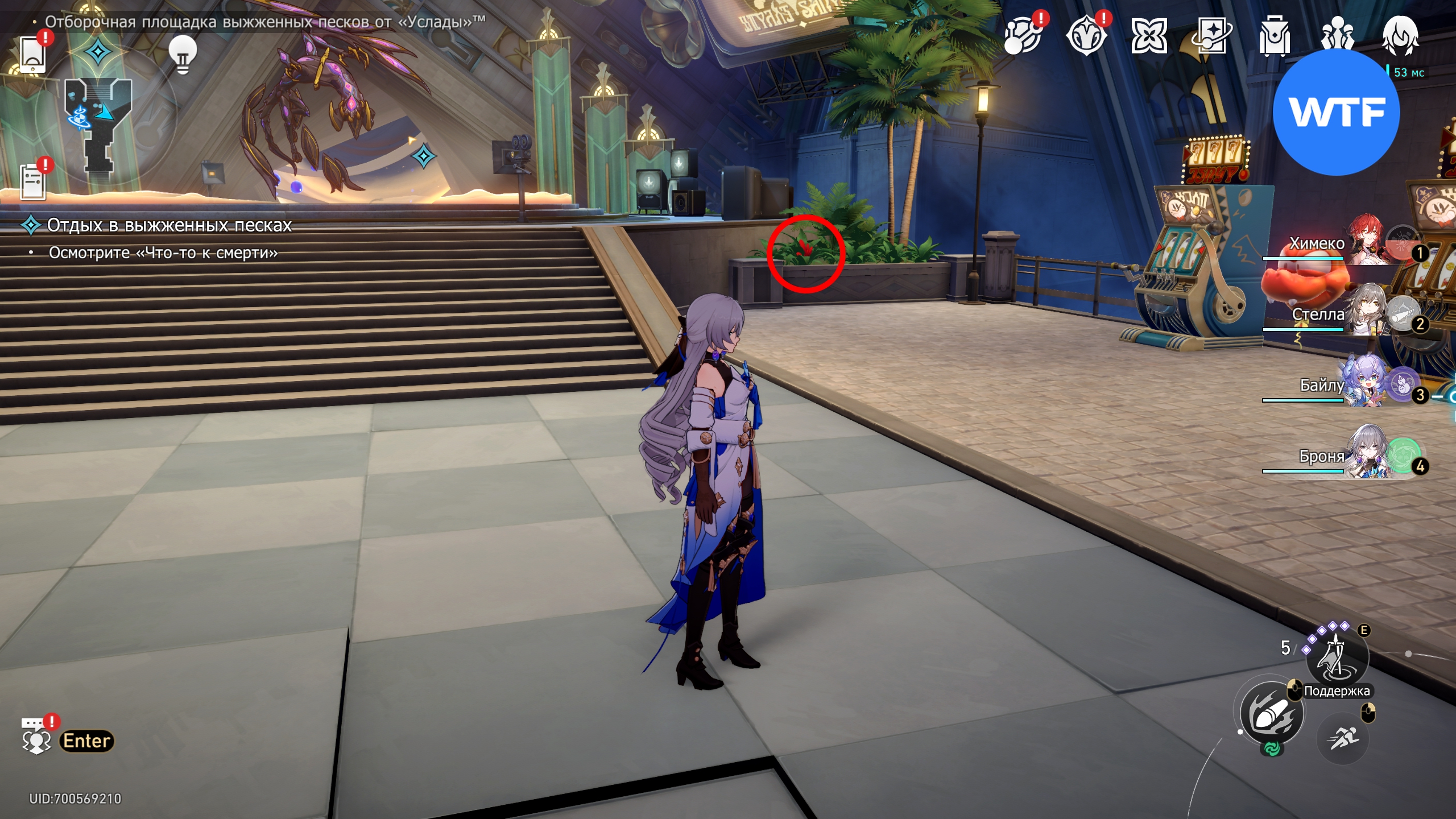 Про сбор всех сундуков, королевских баков и решение загадок Ходиков Мира грёз на Отборочной площадке выжженных песков от «Услады» мы писали в этом гайде.